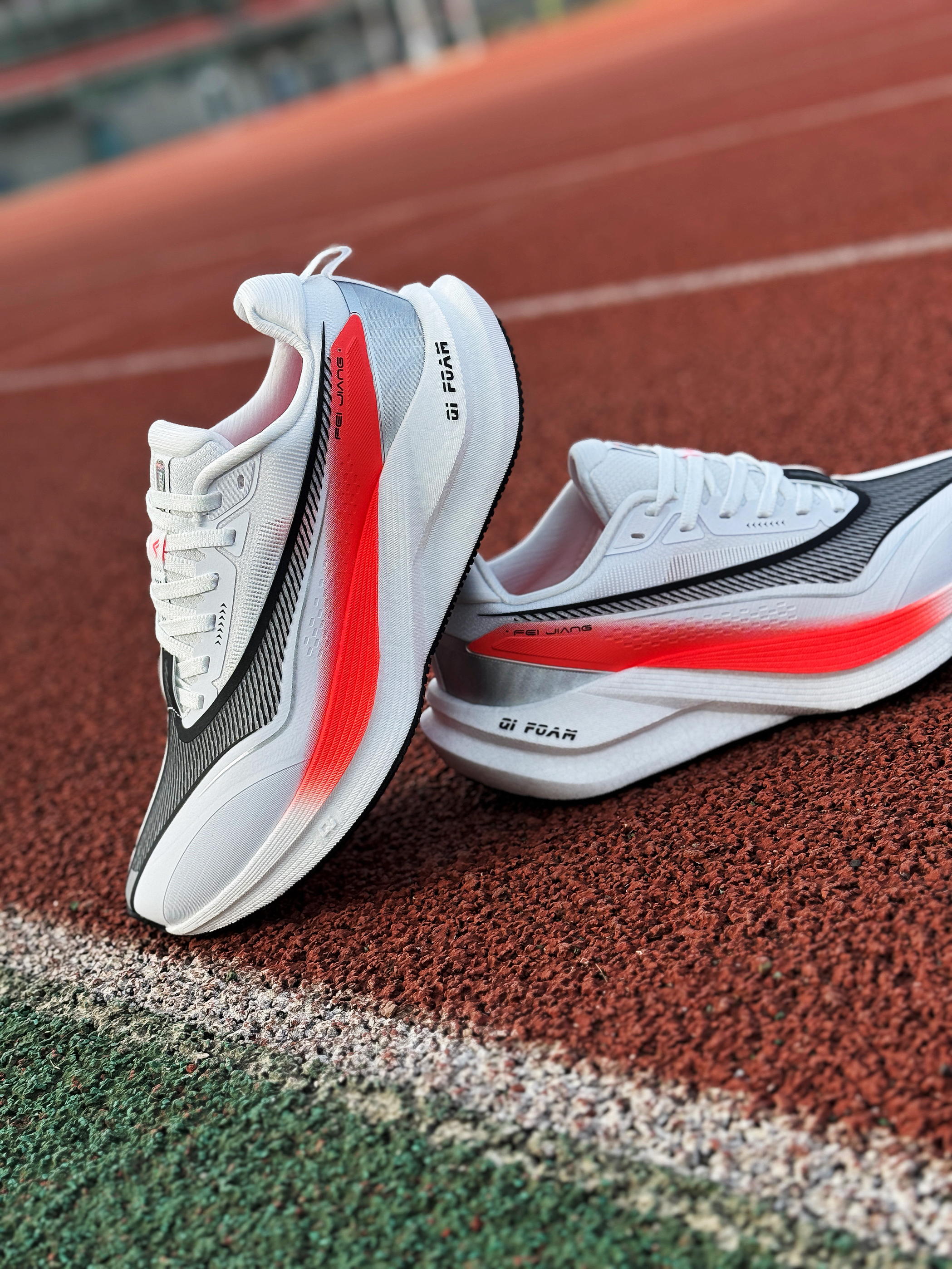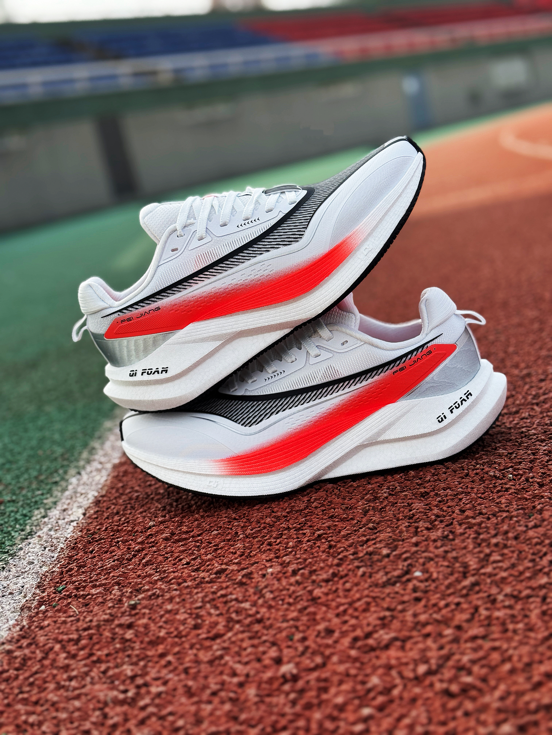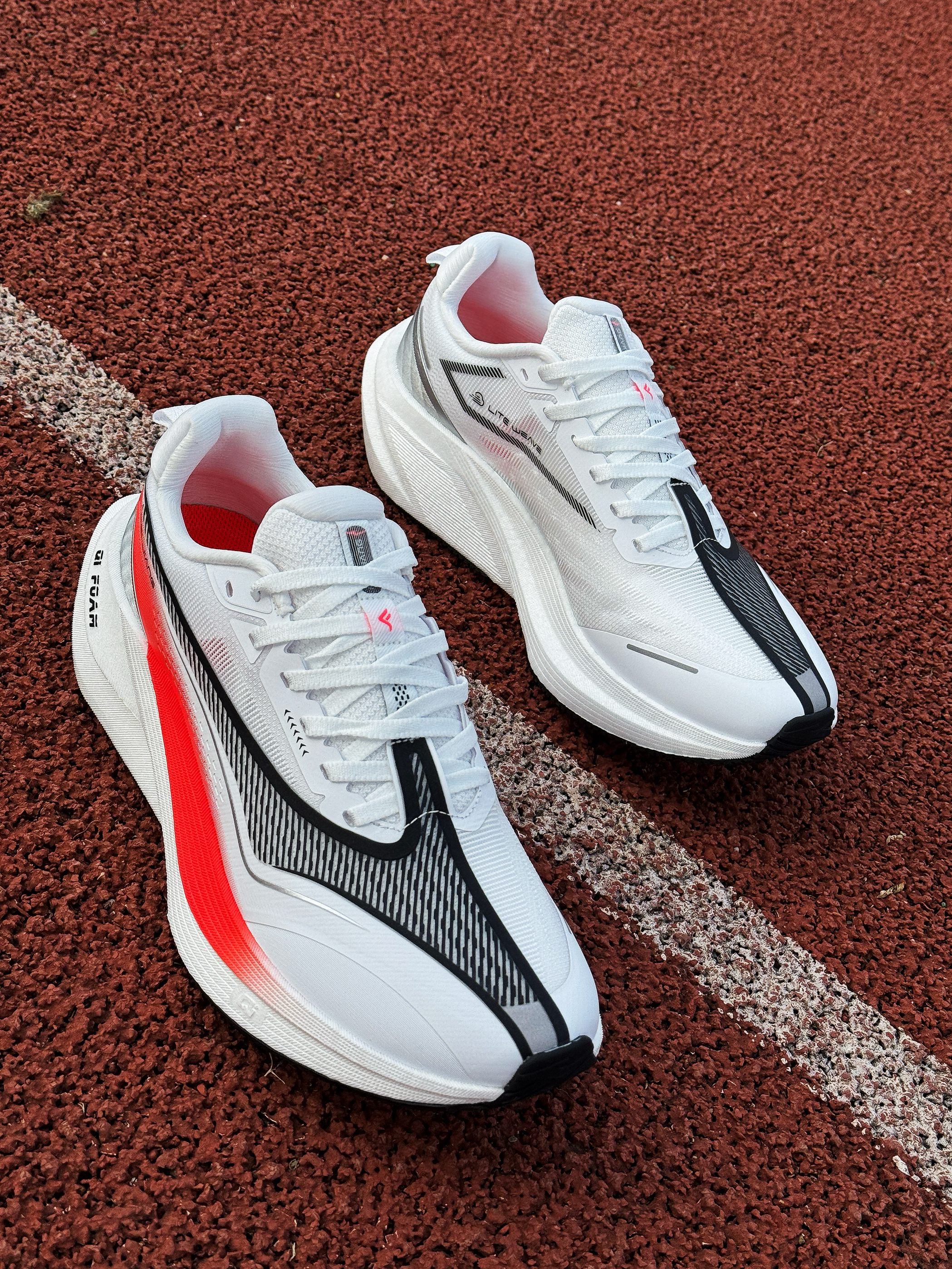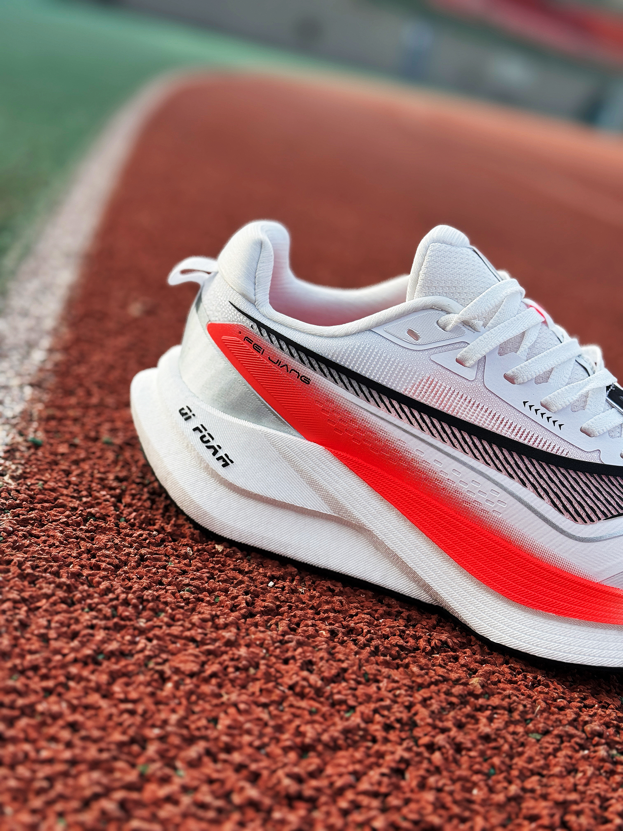 接近年末 尔克带来了这双全新的稳定型无板训练跑鞋~~飞将!是一双很适合大众穿着的入门鞋款! 白红的颜色搭配非常耐看 绞综鞋面轻薄透气 整体舒适度还不错!作为入门级鞋款 日常慢跑训练或是通勤出门都是可以穿着的 尺码正常!