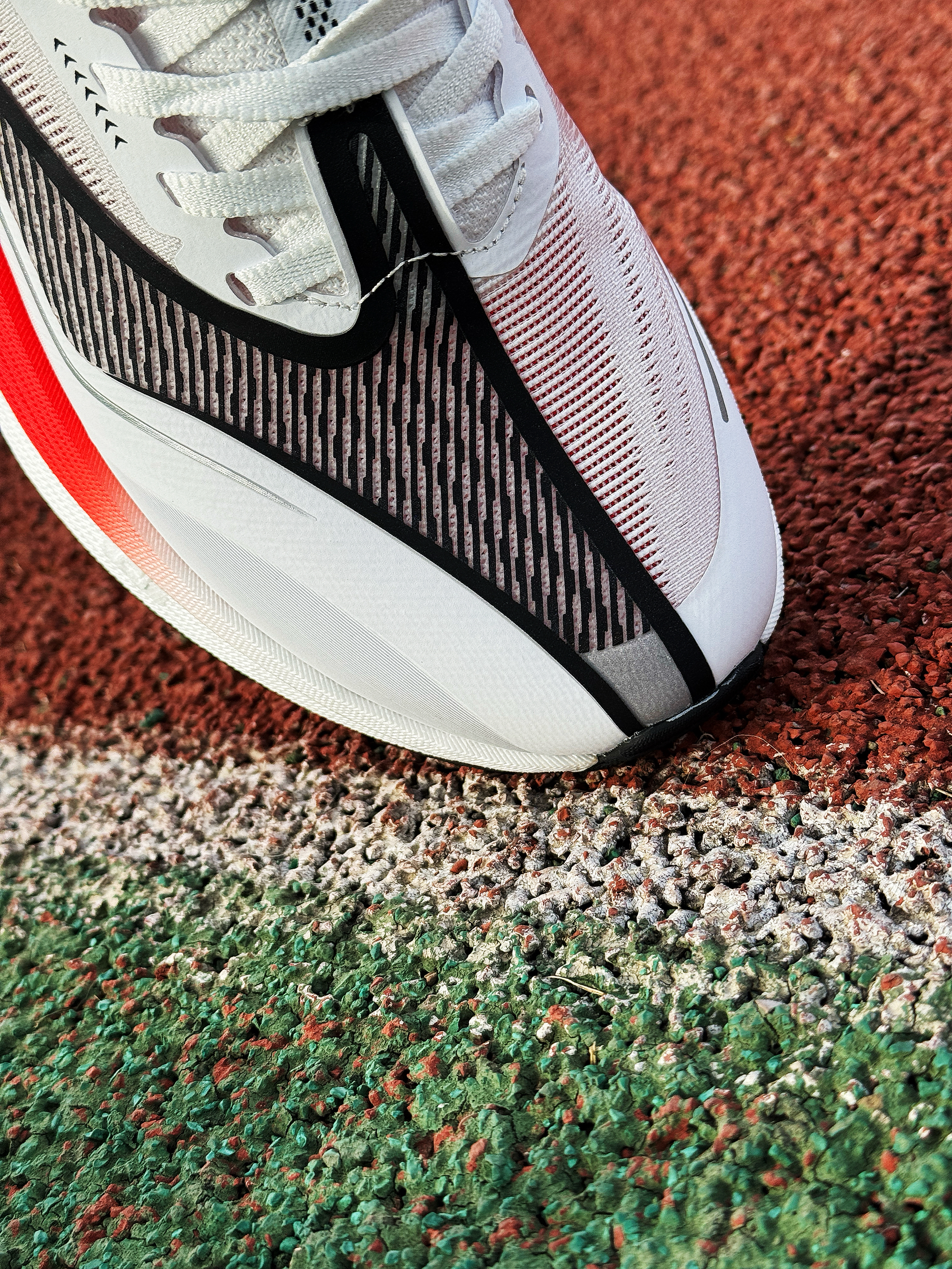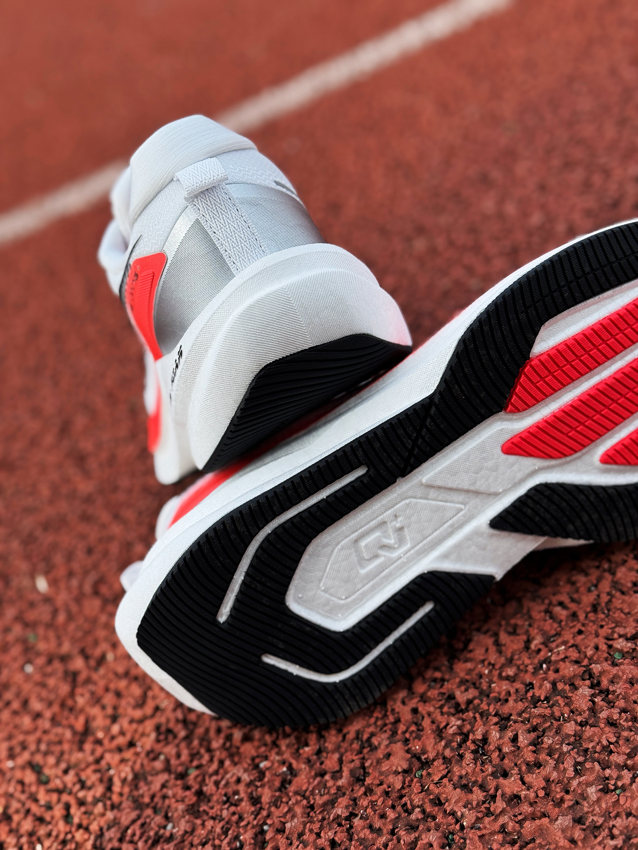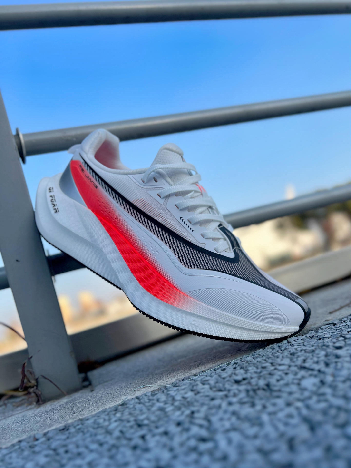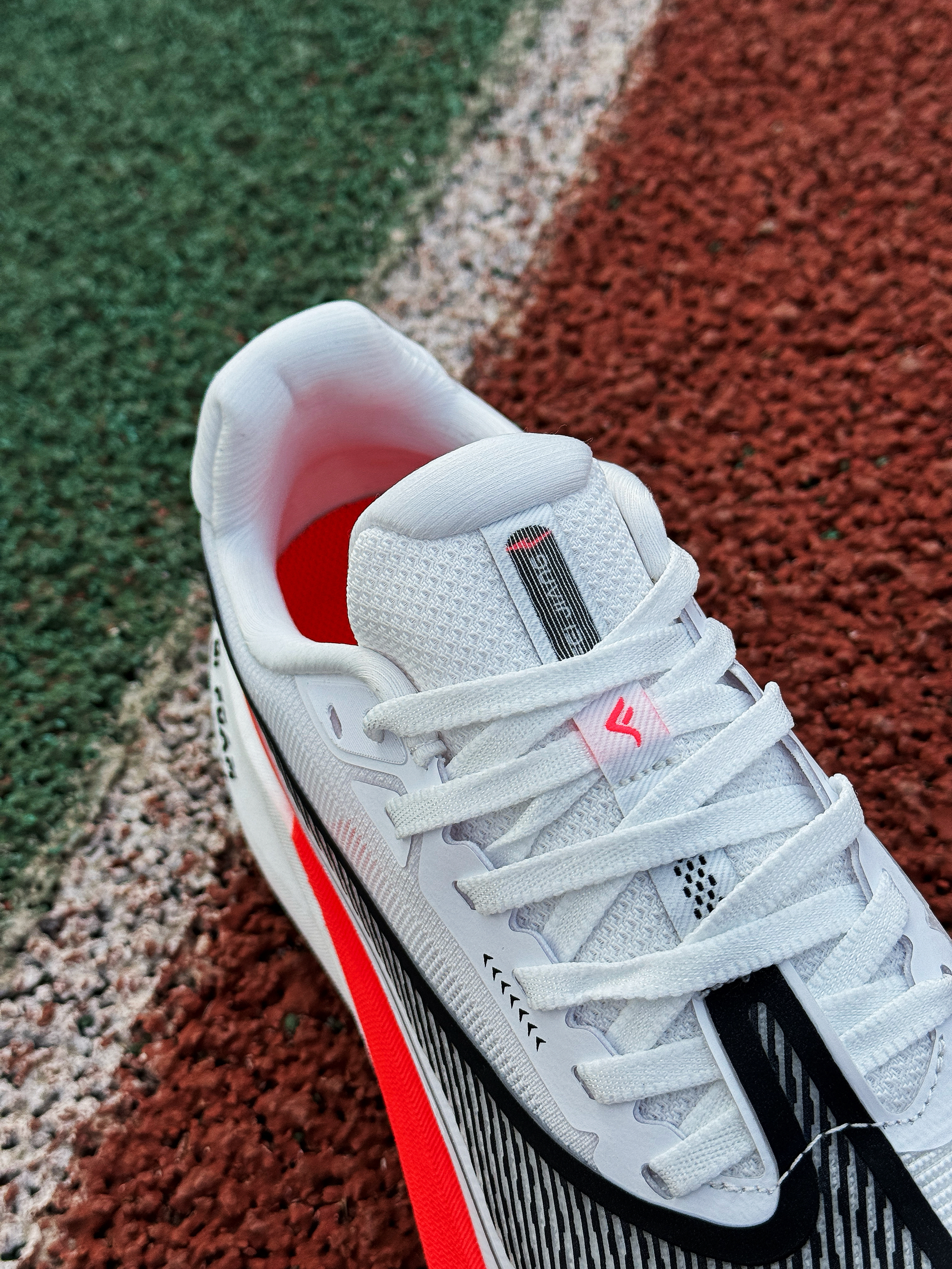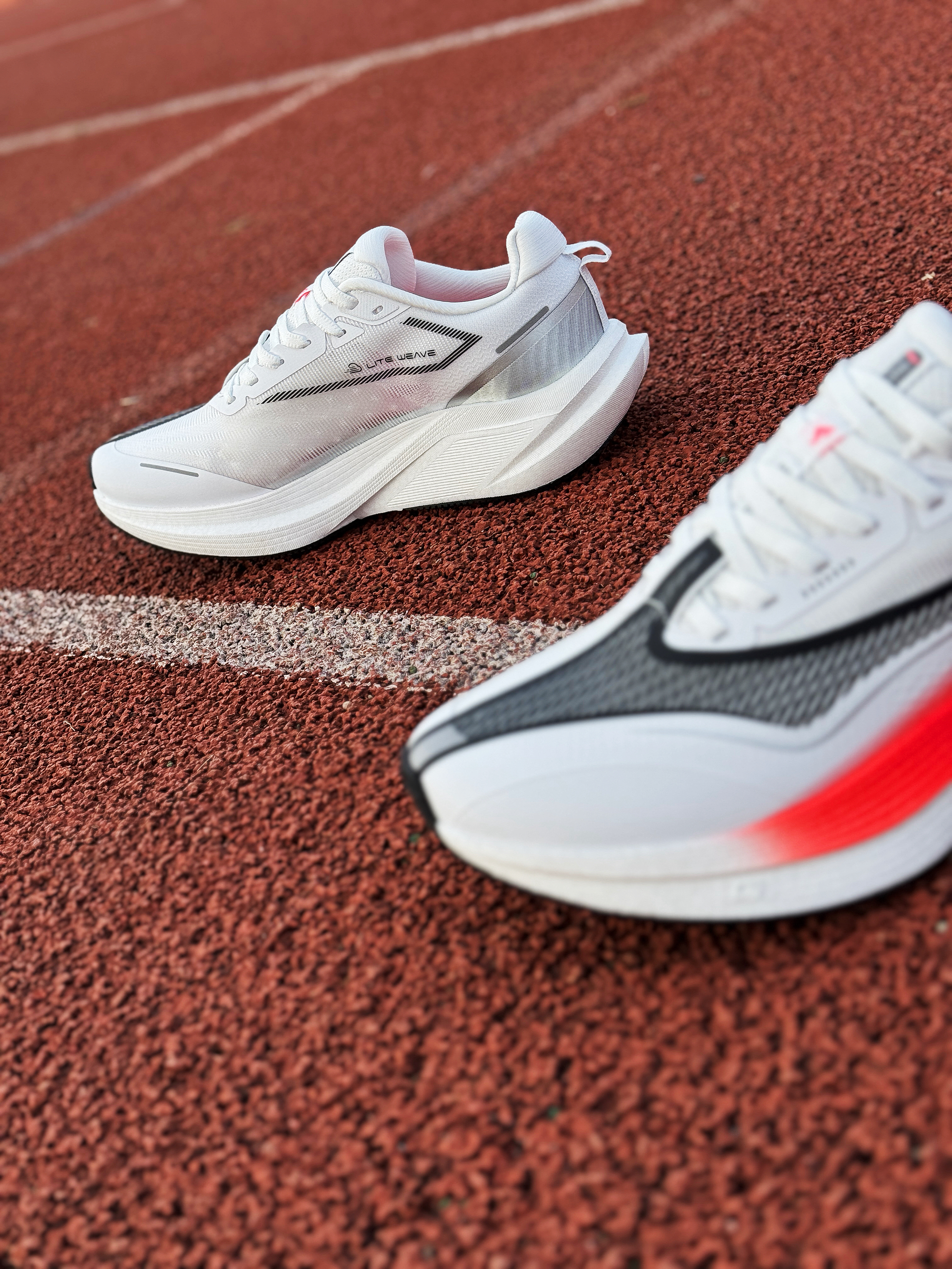 接近年末 尔克带来了这双全新的稳定型无板训练跑鞋~~飞将!是一双很适合大众穿着的入门鞋款! 白红的颜色搭配非常耐看 绞综鞋面轻薄透气 整体舒适度还不错!作为入门级鞋款 日常慢跑训练或是通勤出门都是可以穿着的 尺码正常!