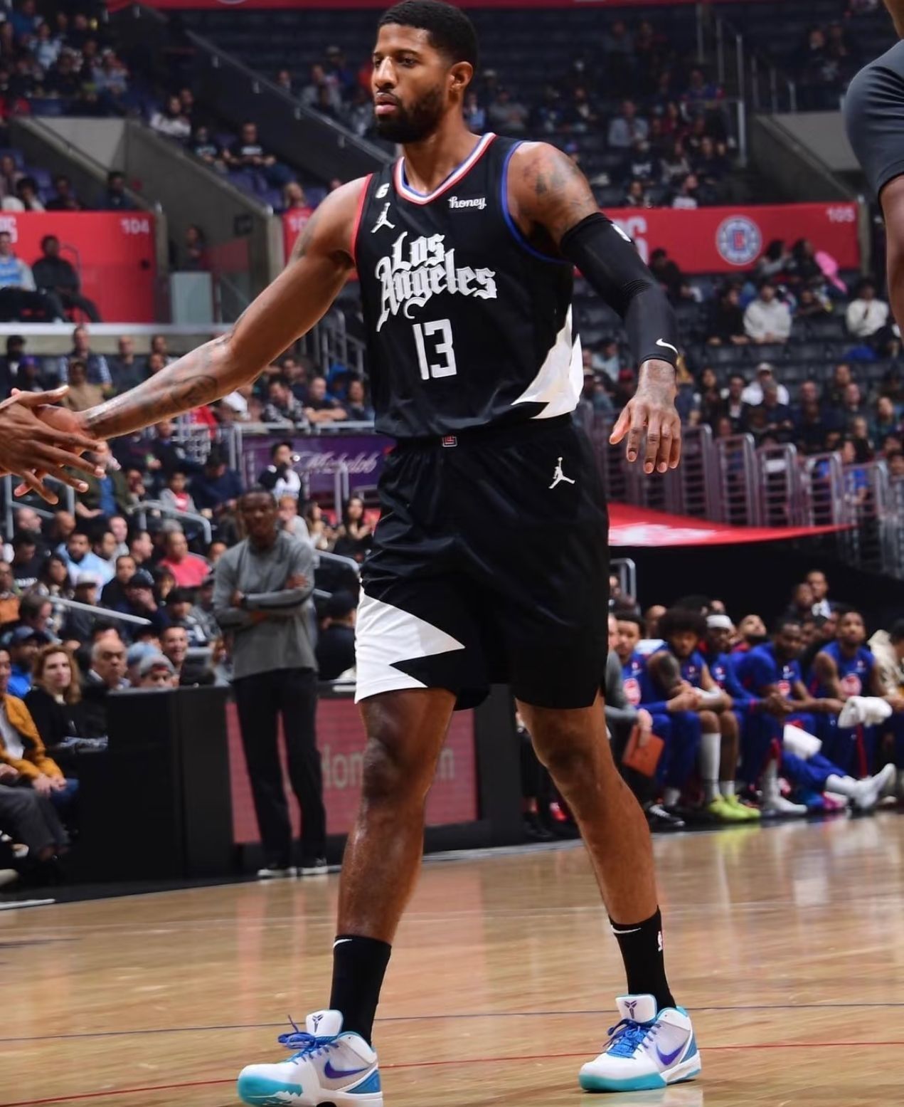 保罗乔治作为NBA现役顶尖锋线球员之一,他的中距离投篮一直是其进攻体系中的关键组成部分,二段式投篮动作,起球点高,出手快无球跑动后接球即投,命中率高,无论是在快船队还是此前的雷霆队,他都凭借这一技术在关键时刻屡屡建功。