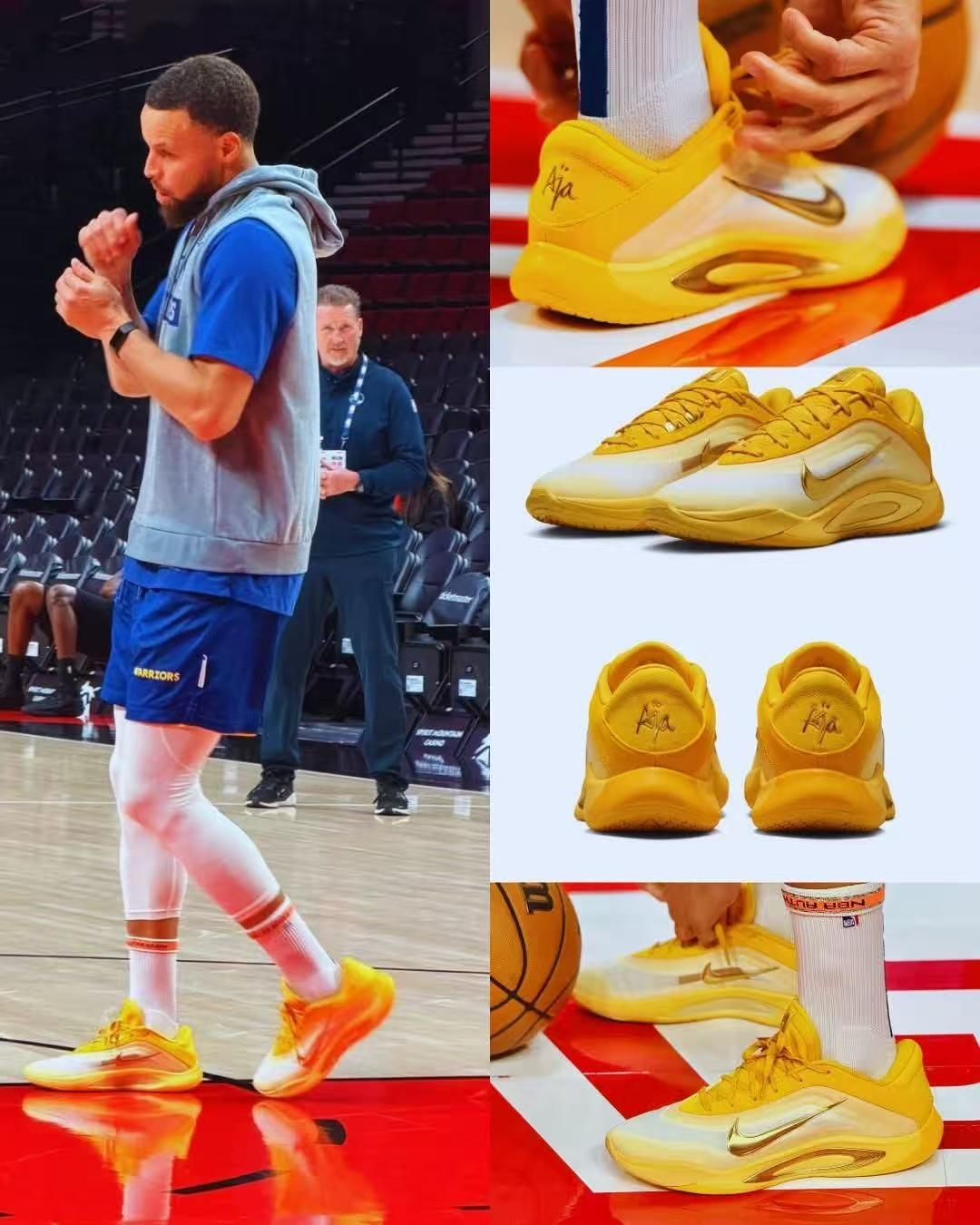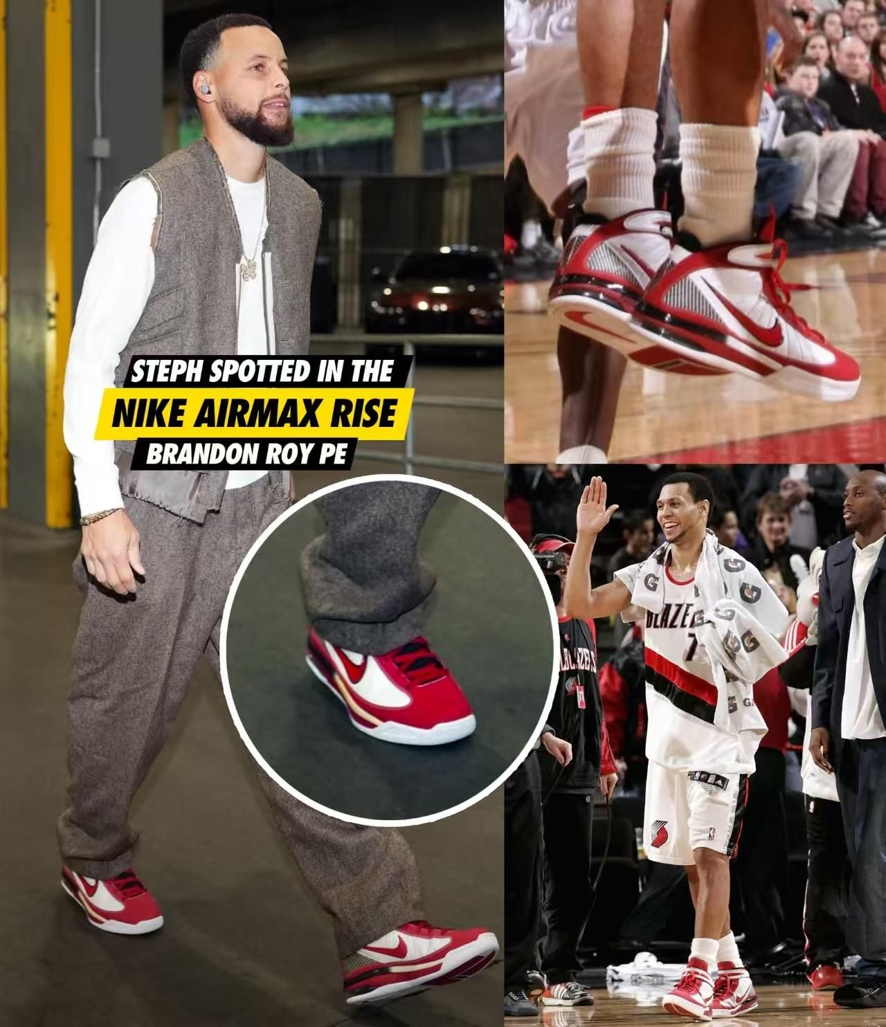 库里在波特兰的球鞋穿搭杀疯了!赛场款亮黄Nike战靴,高饱和度的勇士黄搭配简约黑勾,视觉冲击力拉满,轻量化中底加持,完全适配后卫的极速变向;热身款黄白渐变战靴,渐变质感让鞋身层次丰富,细节处的专属标识更是暗藏巧思。 入场时的红白复古战靴更是点睛之笔,复古鞋型搭配休闲西装,混搭风直接拿捏,红白撞色既呼应了波特兰元素,又复刻了经典赛场记忆。库里用三双球鞋,完美诠释了实战与潮流的双向奔赴。