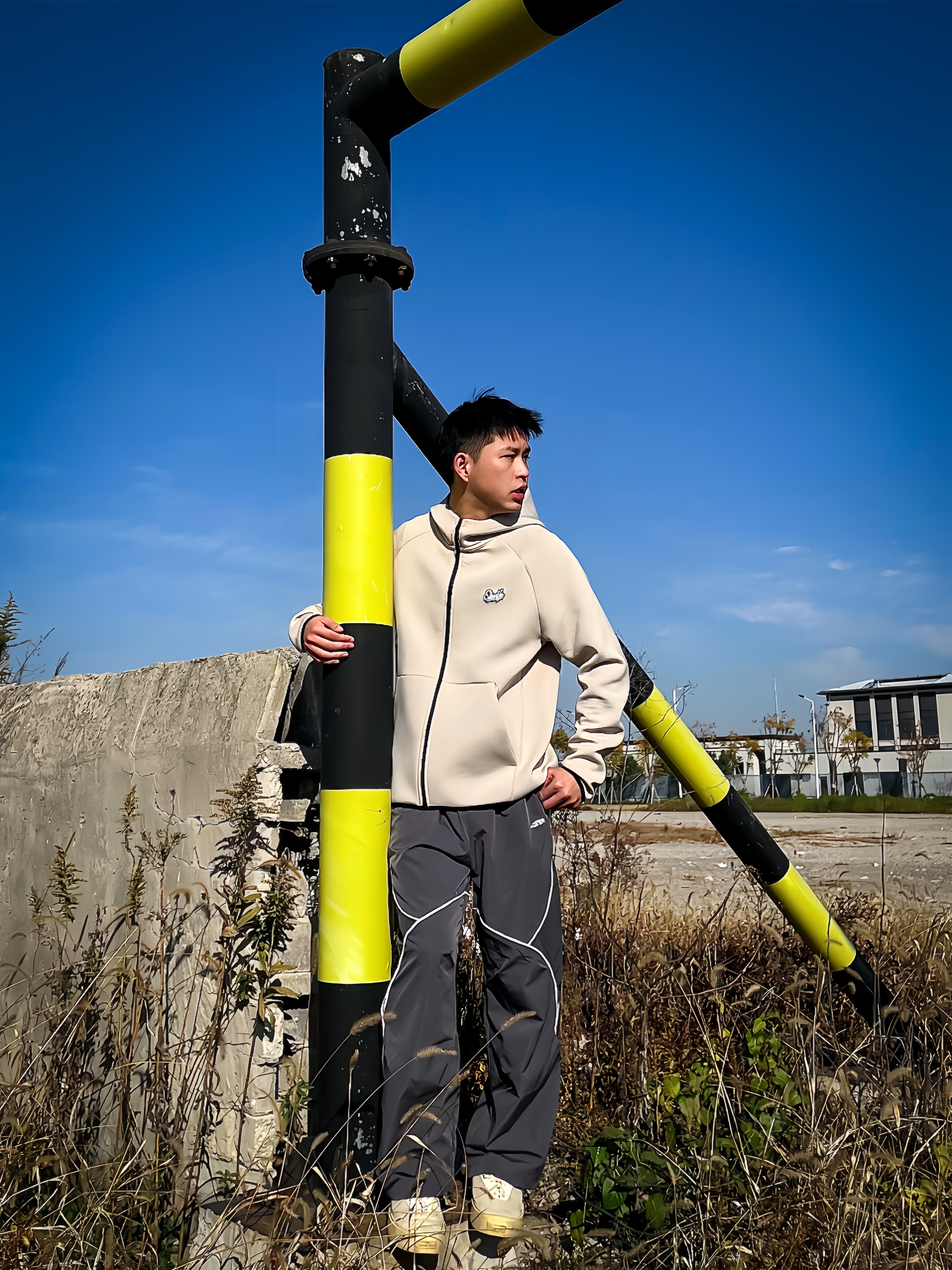 哈咯,这里是卢_SG 年度穿搭秋冬松弛感运动风穿搭! 上身选了件米白连帽拉链卫衣 干净低饱和色系自带温柔氛围 小标点缀简约不单调~宽松版型裹着超舒服 日常出街或打球穿都适配度拉满! 下身搭了条深灰线条运动裤 撞色线条+垂坠裤型直接把利落感拉满! 宽松剪裁既能中和卫衣的慵懒 运动感和松弛感直接焊在身上~