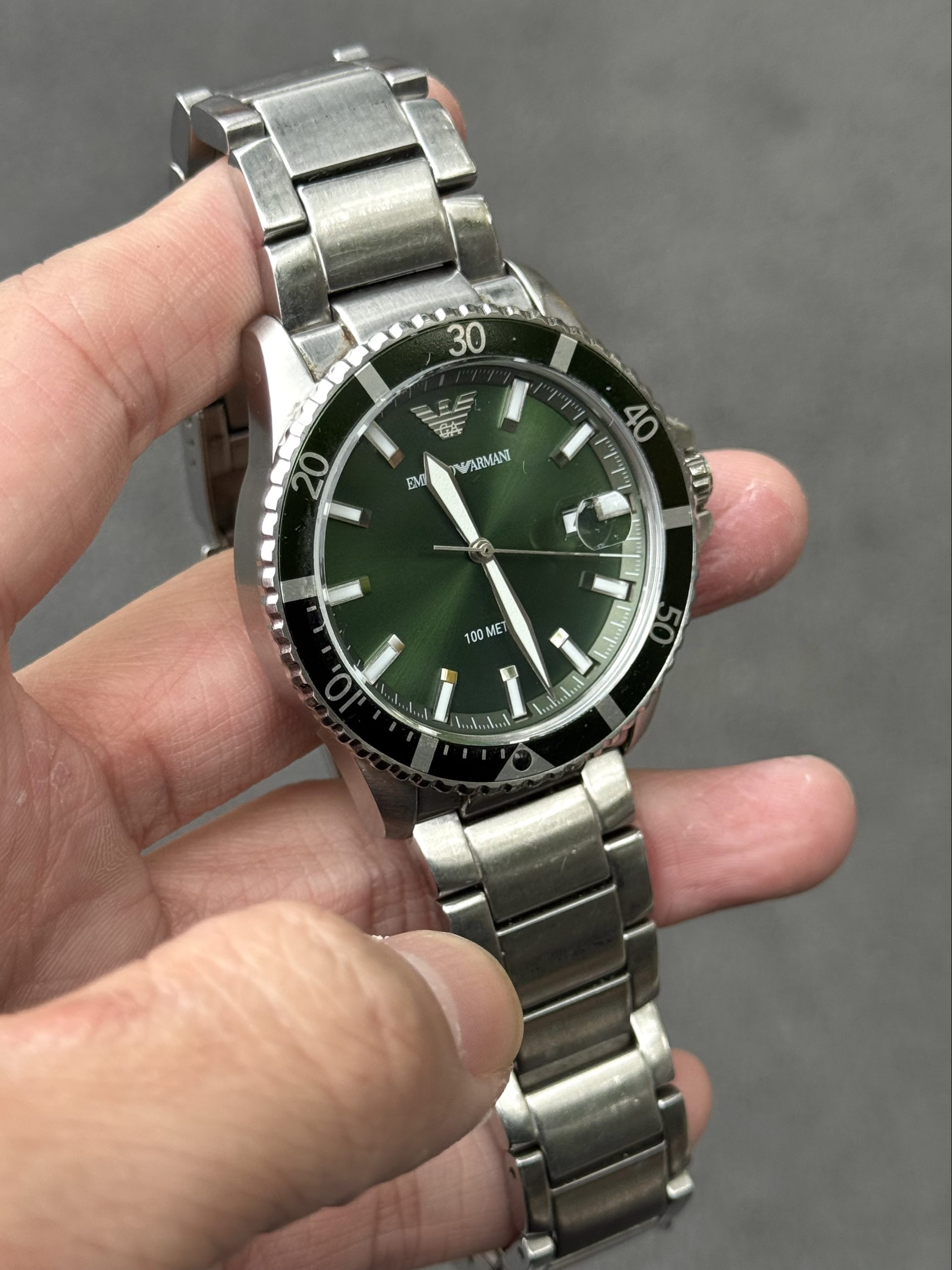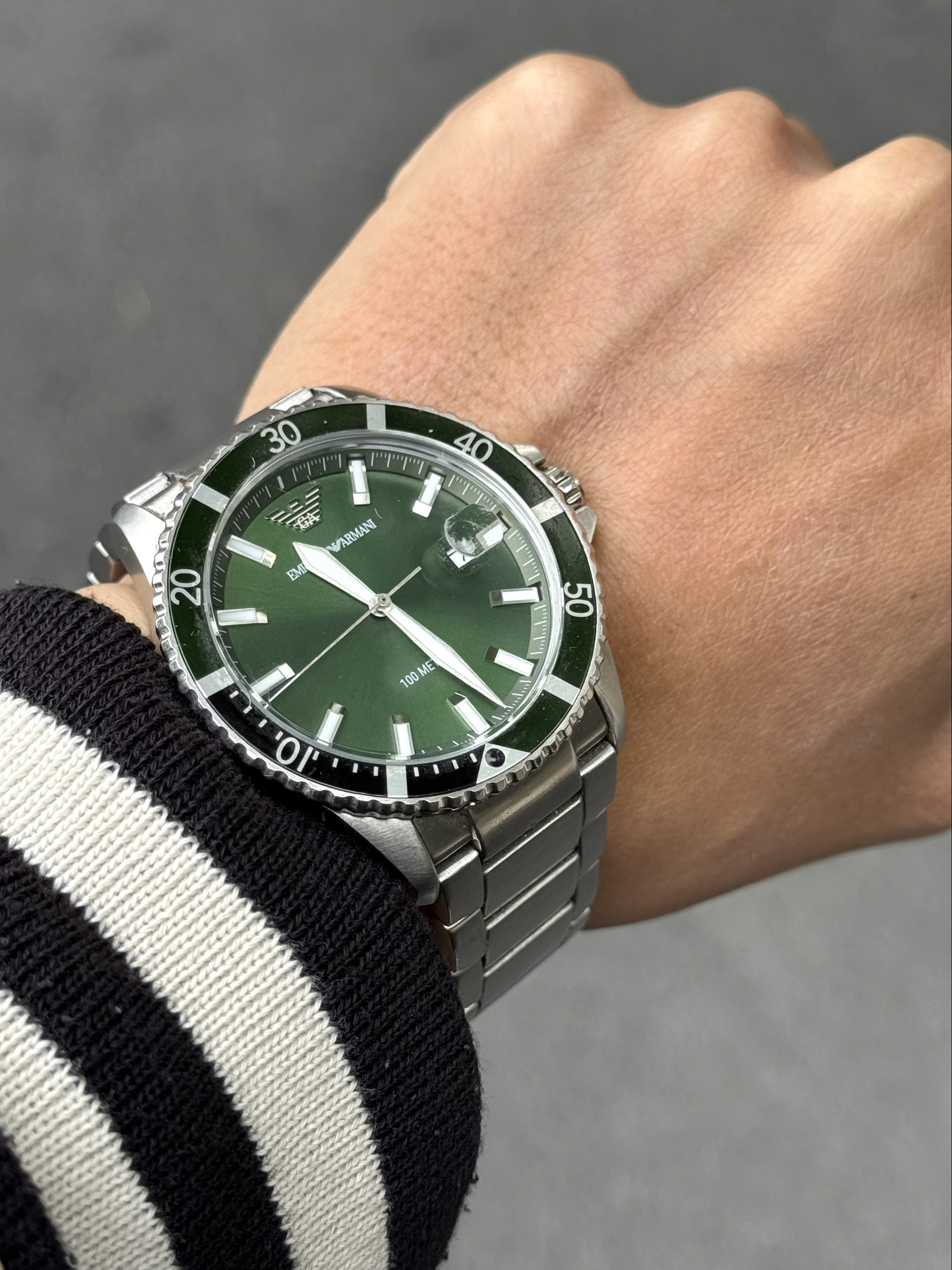 本篇笔记关联了Armani/阿玛尼 宋威龙同款 绿水鬼 钢制大表盘深海潜水三眼日历防水石英男士手表 绿色 AR11338等商品,为用户提供真实的使用体验和购买参考。