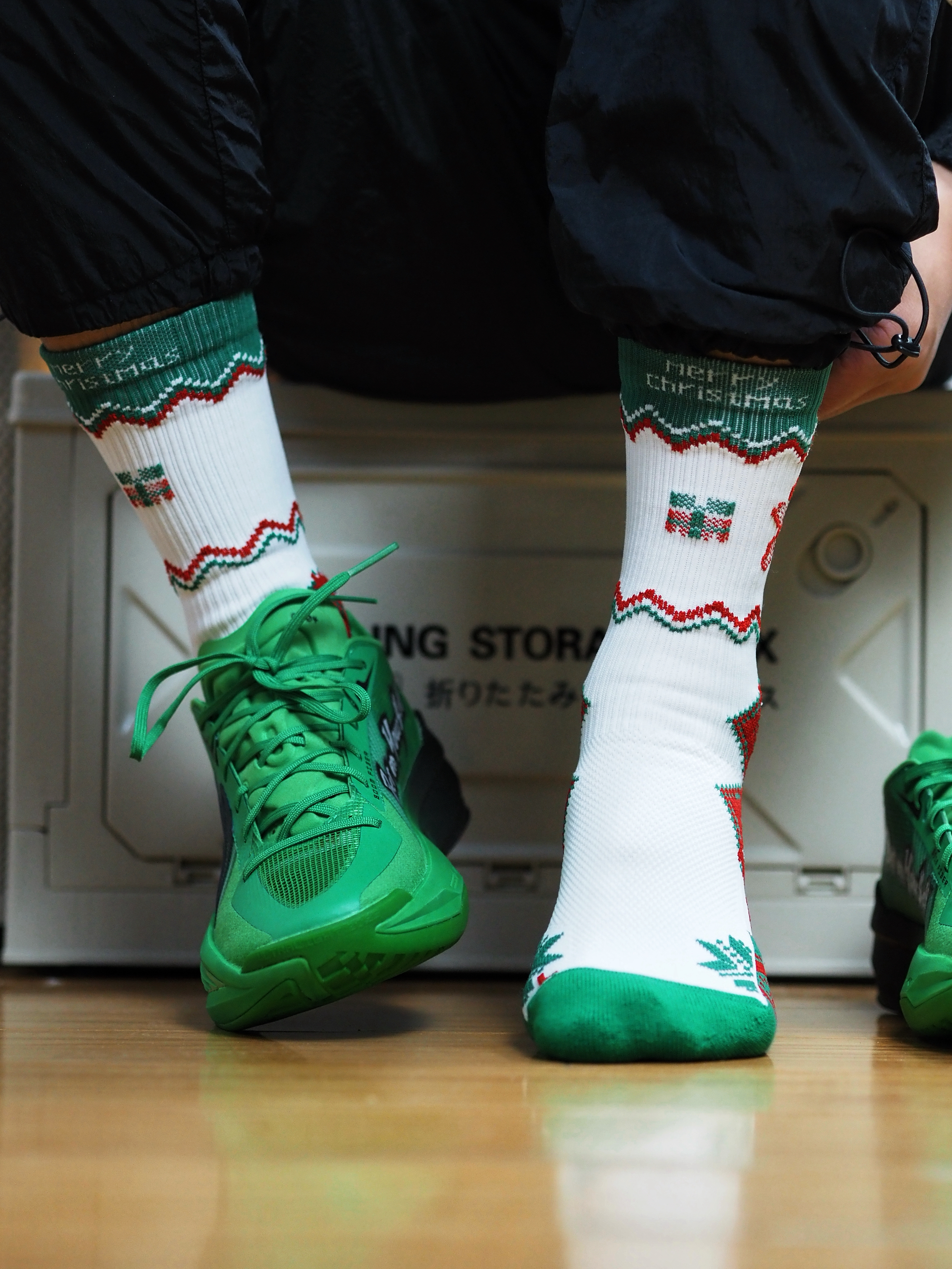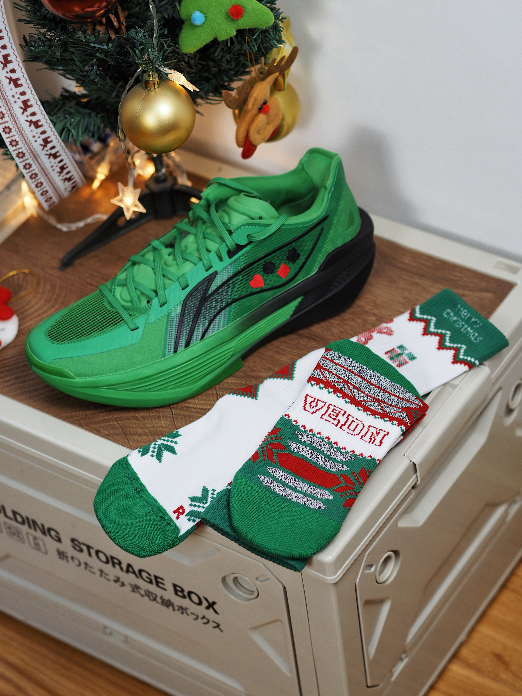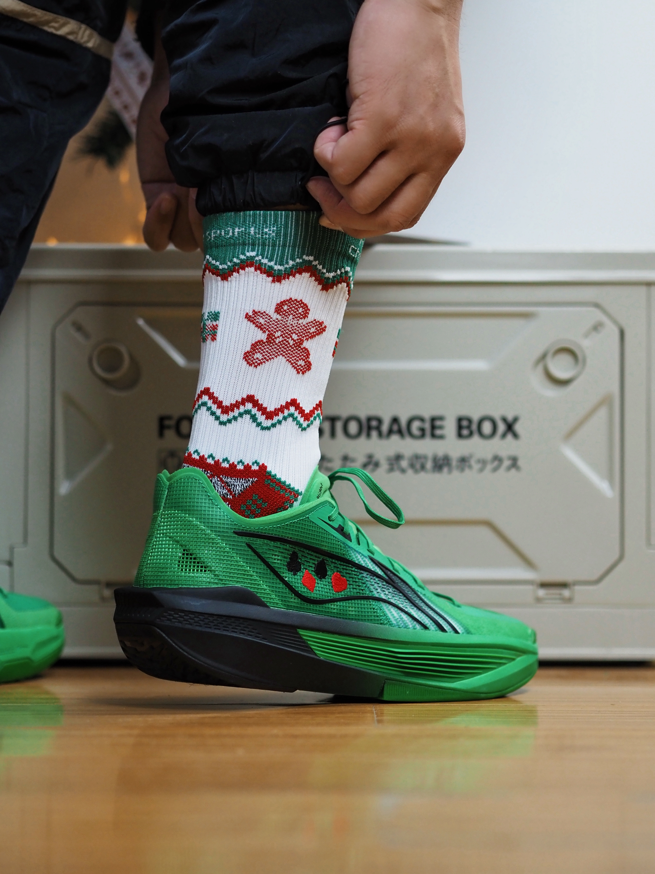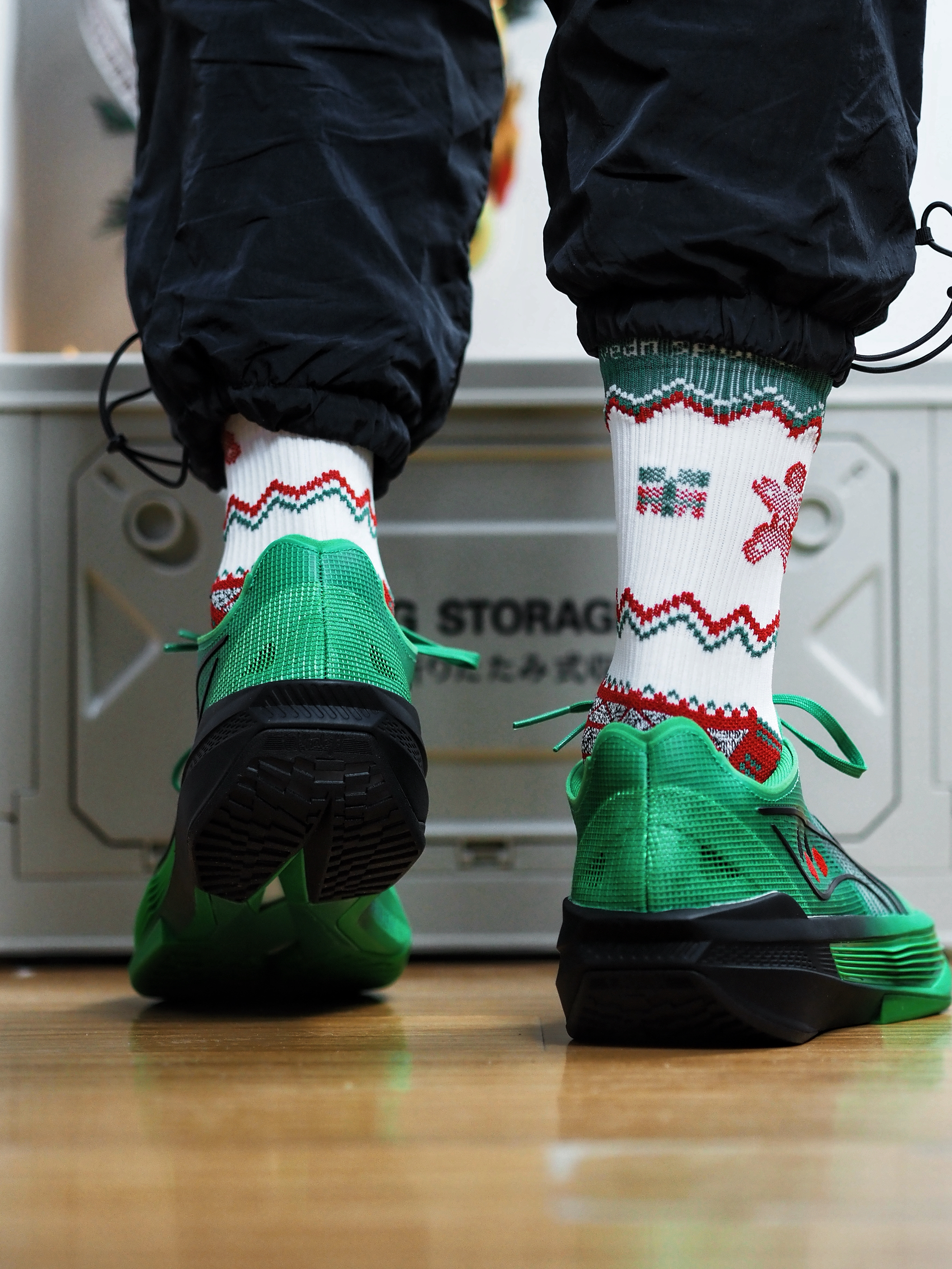 李宁超轻2025,NBA球员同款配色,搭配上一双红绿相间的篮球袜,这搭配一看氛围感就很足!球场奔跑也是比较吸睛的那个『装备党』,仪式感很足~