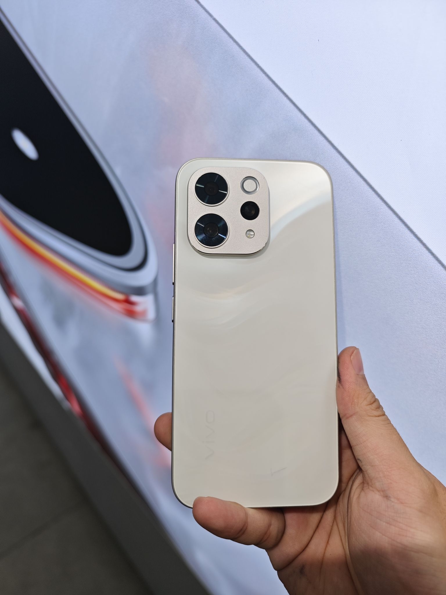 终于摸到vivo S50真机了!今晚就要正式发布的新机,先给大家来一波实拍剧透~ 机身是温柔的浅杏色调,背板的水波纹纹理在光线下特别有层次感,摸上去的质感也很细腻。镜头模组的设计很简洁,方形轮廓搭配金属边框,和机身的融合度很高,整体线条利落又柔和。 从上手的手感来看,机身厚度和重量把控得不错,单手握持很舒服。今晚发布会应该会揭晓更多配置细节,光是这个颜值就已经很让人期待了!小田真的是太可爱...