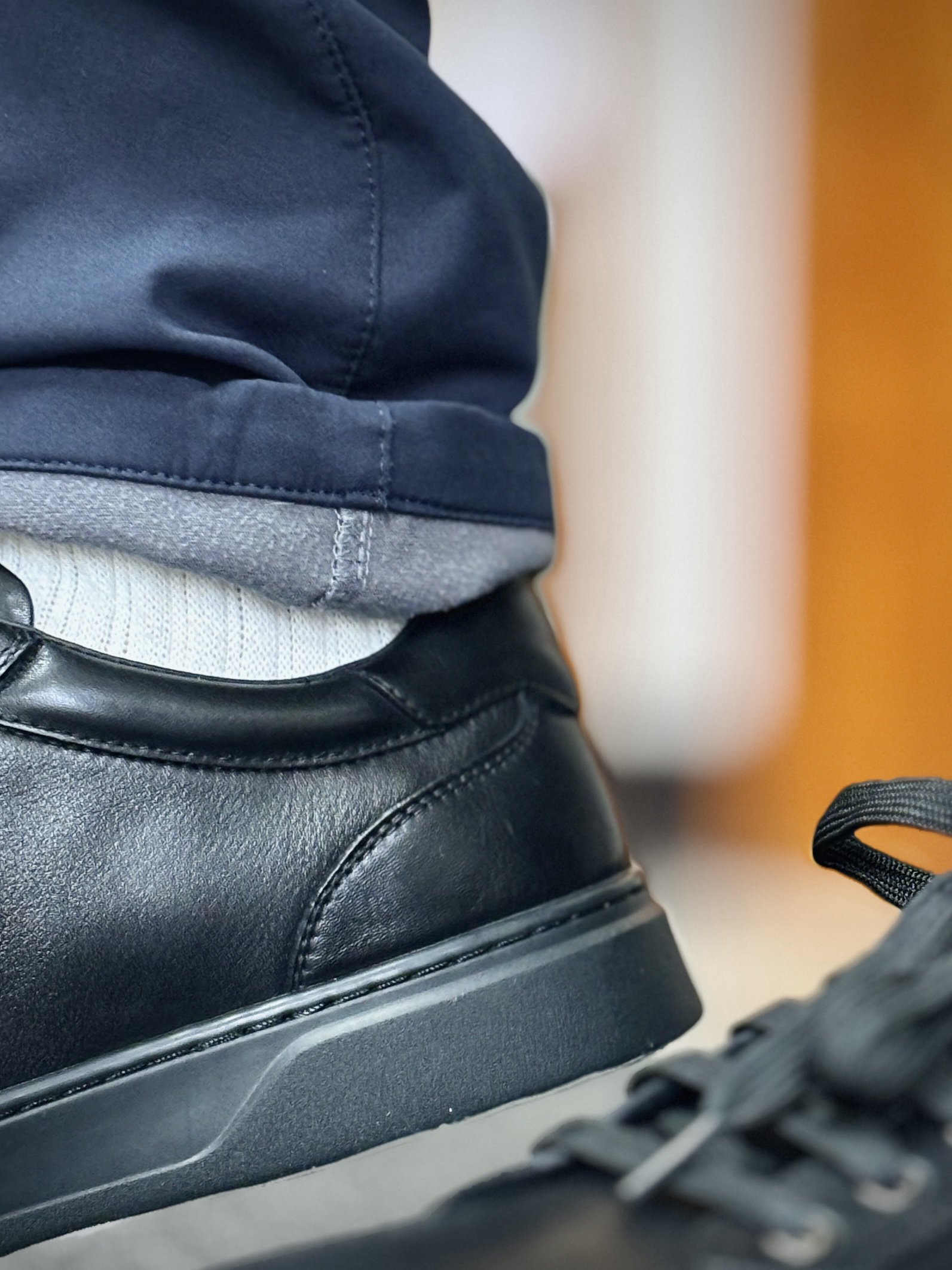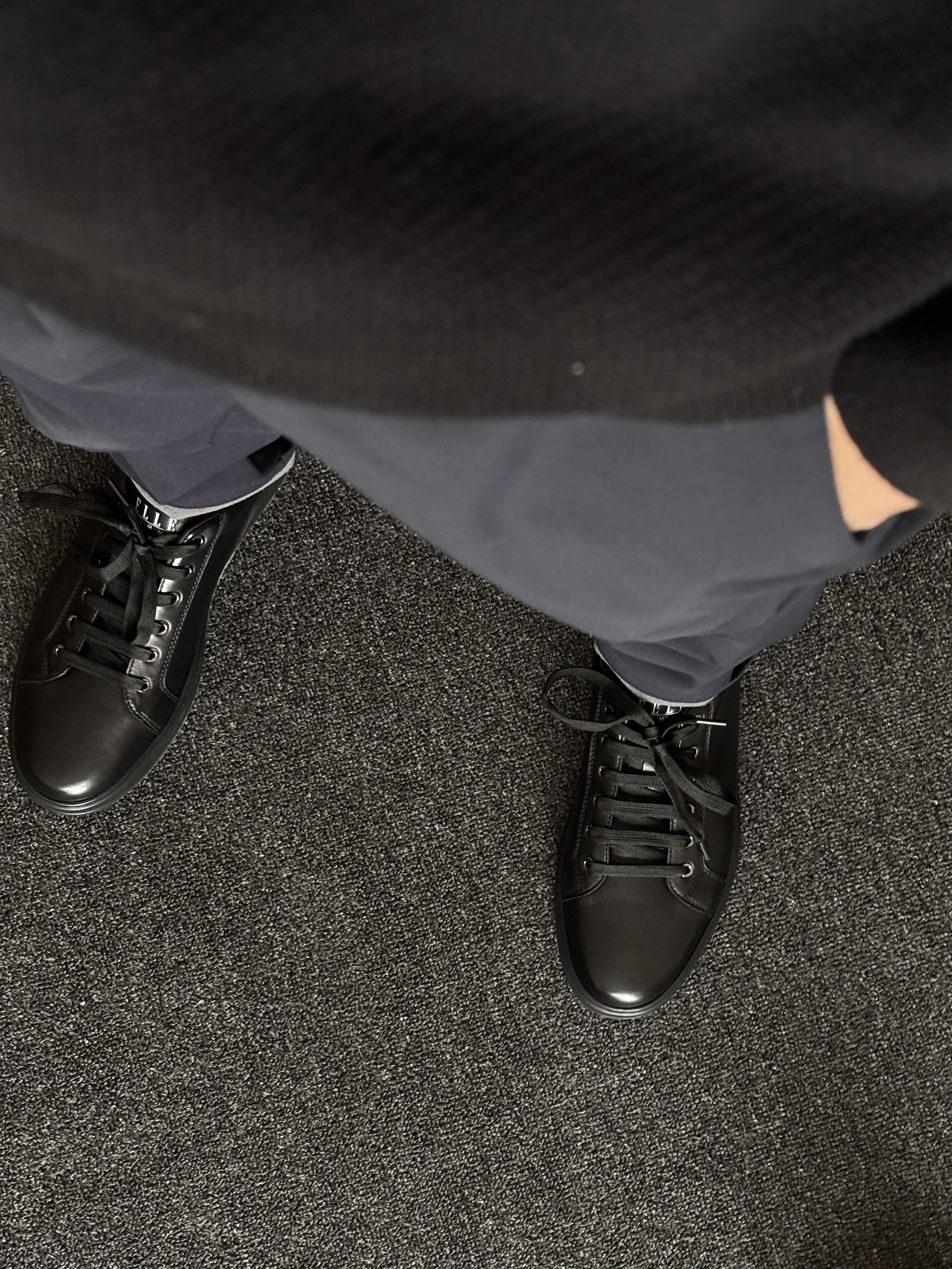 ELLE HOMME 这款全头层牛皮里外都是软牛皮的,摸着就软乎乎的,上脚感觉特别软和跟脚。鞋底软硬刚好,走路不累。可以日常通勤搭配正装,工服,日常通勤都能穿。 这双全黑色简约板鞋看上去就很有质感,颜值很帅,日常休闲搭配牛仔裤👖穿也很好看。 我脚码43,拍的也是43码。 #长期主义高颜值
