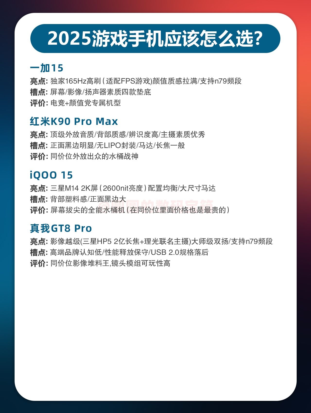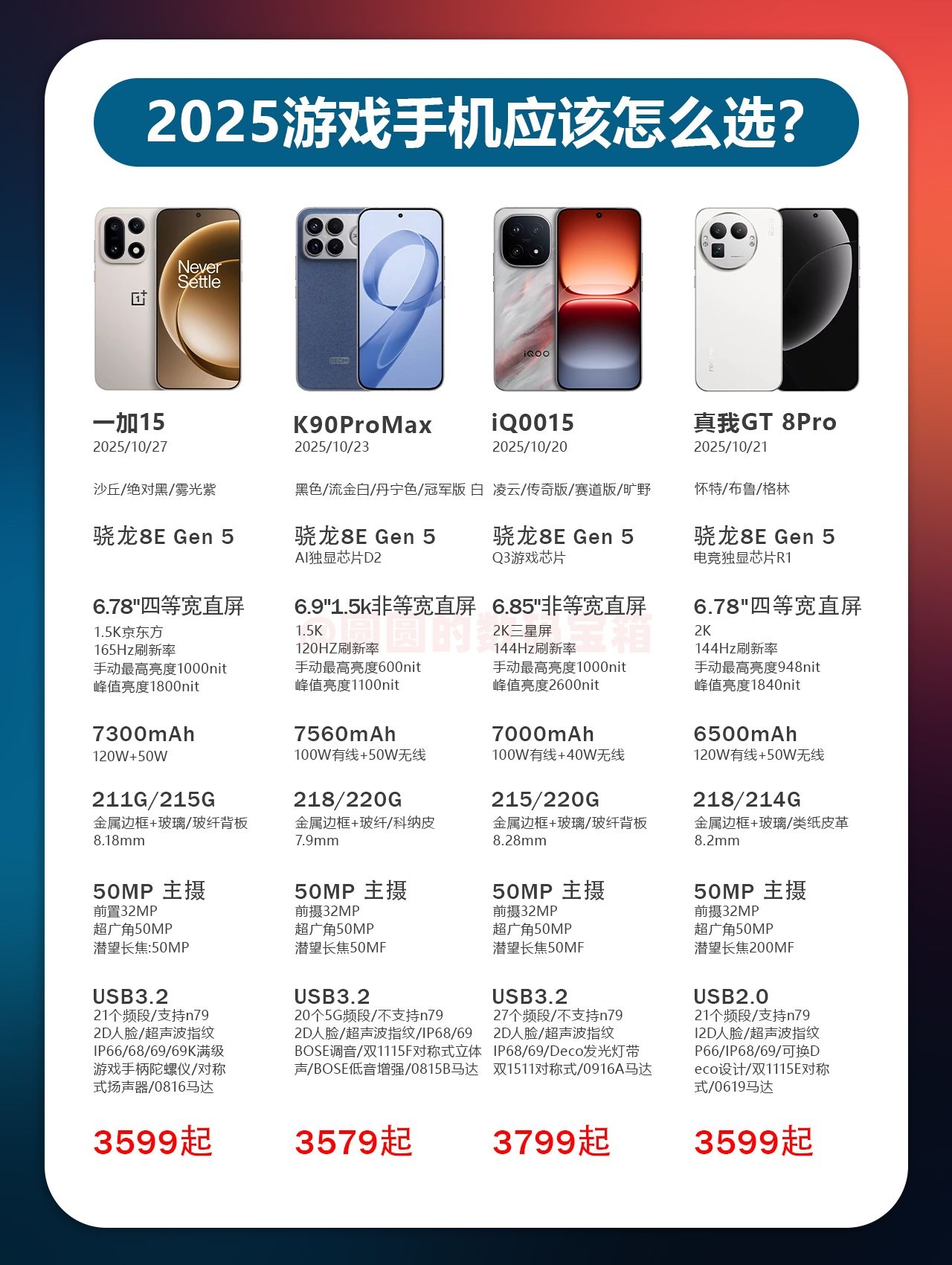 2025年,各大母品牌忙着卷影像,而子品牌们则是在性能赛道上“神仙打架”. 四大主力:一加15/红米K90 Pro Max/iQOO 15/真我GT8 Pro全部搭载骁龙旗舰芯,其它配置(屏幕/马达/扬声)甚至超越部分母系标准版. 针对这四款机型,圆圆给出以下理性选购建议: ✅一加15 质感与手感一流,综合性能虽然不如其他三者激进,但一加的工业设计和系统流畅度依然在线.适合追求手机握感,以及热...