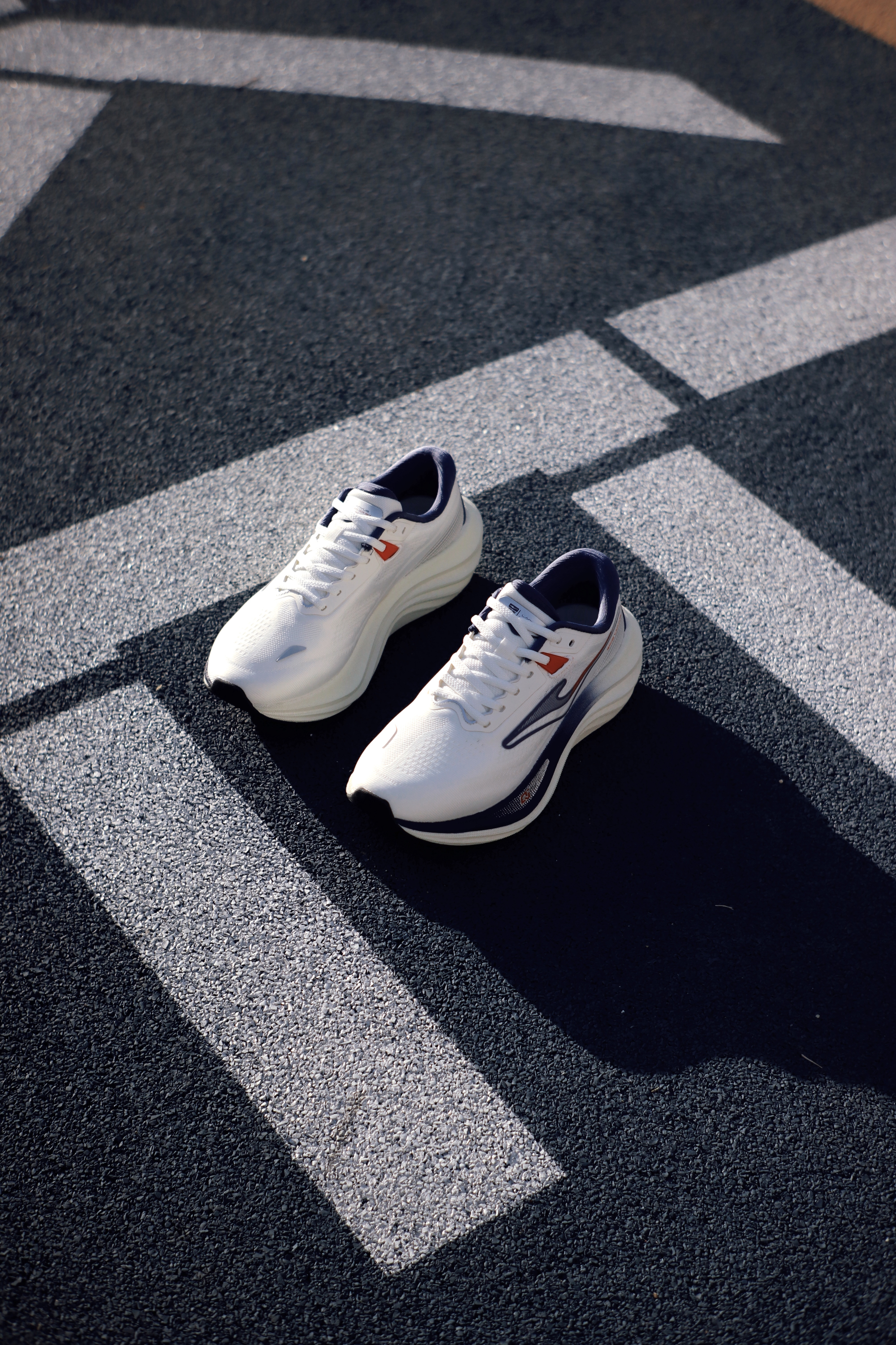 看着揽跃自己卷自己是真的很爽啊,鸿星尔克揽跃2春夏版可以算是加量不加价吧,鞋面和2.0正代相比变成了纯贾卡,简单的三公里跑下来能感受到透气性的升级,无论是明年开春或者是现在的室内跑,纯贾卡真是兼容做到保暖又不太闷脚; 而且作为一双入门定位的缓震跑鞋,加宽的大底就蛮适合大基数的跑者,这个阶段不需要强调对路面的感受,而应该更注重保护脚踝和稳定支撑,炁科技中底就很好的做到了