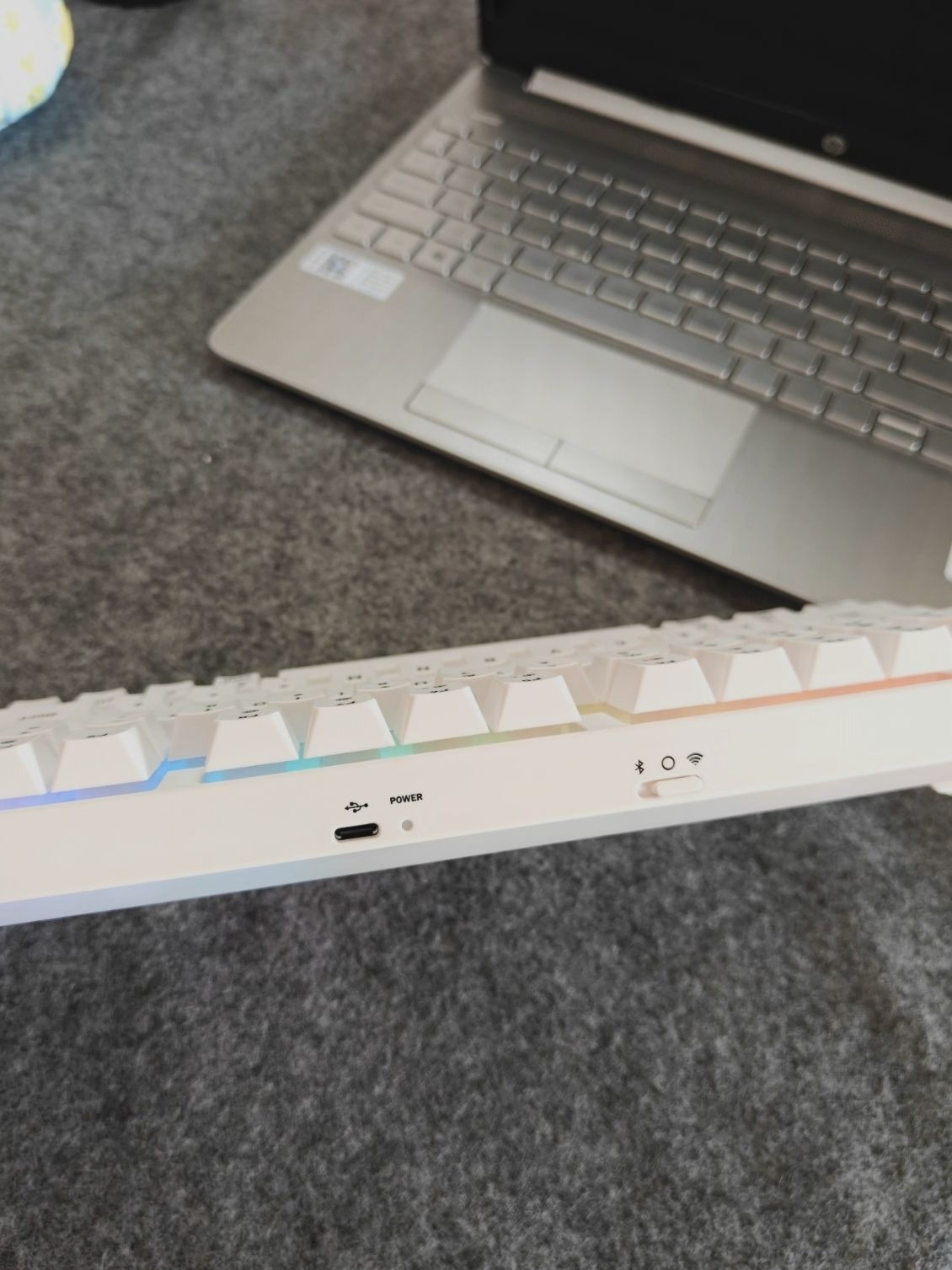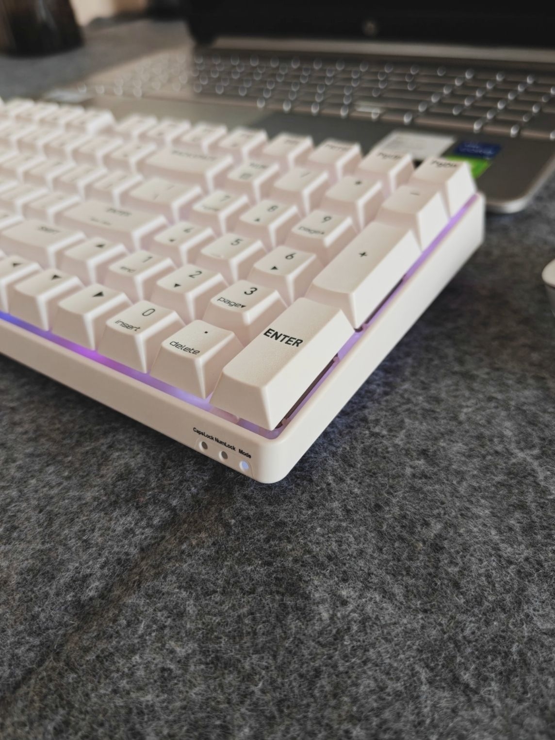 ⌨️感觉这个键盘能承包我的研究生生涯📖 ✅他最吸引我的一点是他竟然可以直接用水冲😨 ✅他的敲击感也挺清脆🌲,打游戏比较带感📱 ✅好的键盘灯效肯定得酷😎,他有很多种RGB灯效🎄,一直闪烁很好看😍 ✅他的连接方式也挺多种,可以无线有线🧵,看个人喜欢 ✅外观我确实挺喜欢,冲浪白比较清新🆕,用来桌搭很合适😃 💰价格的话适中,不高也不低,如果能再低点就更好了