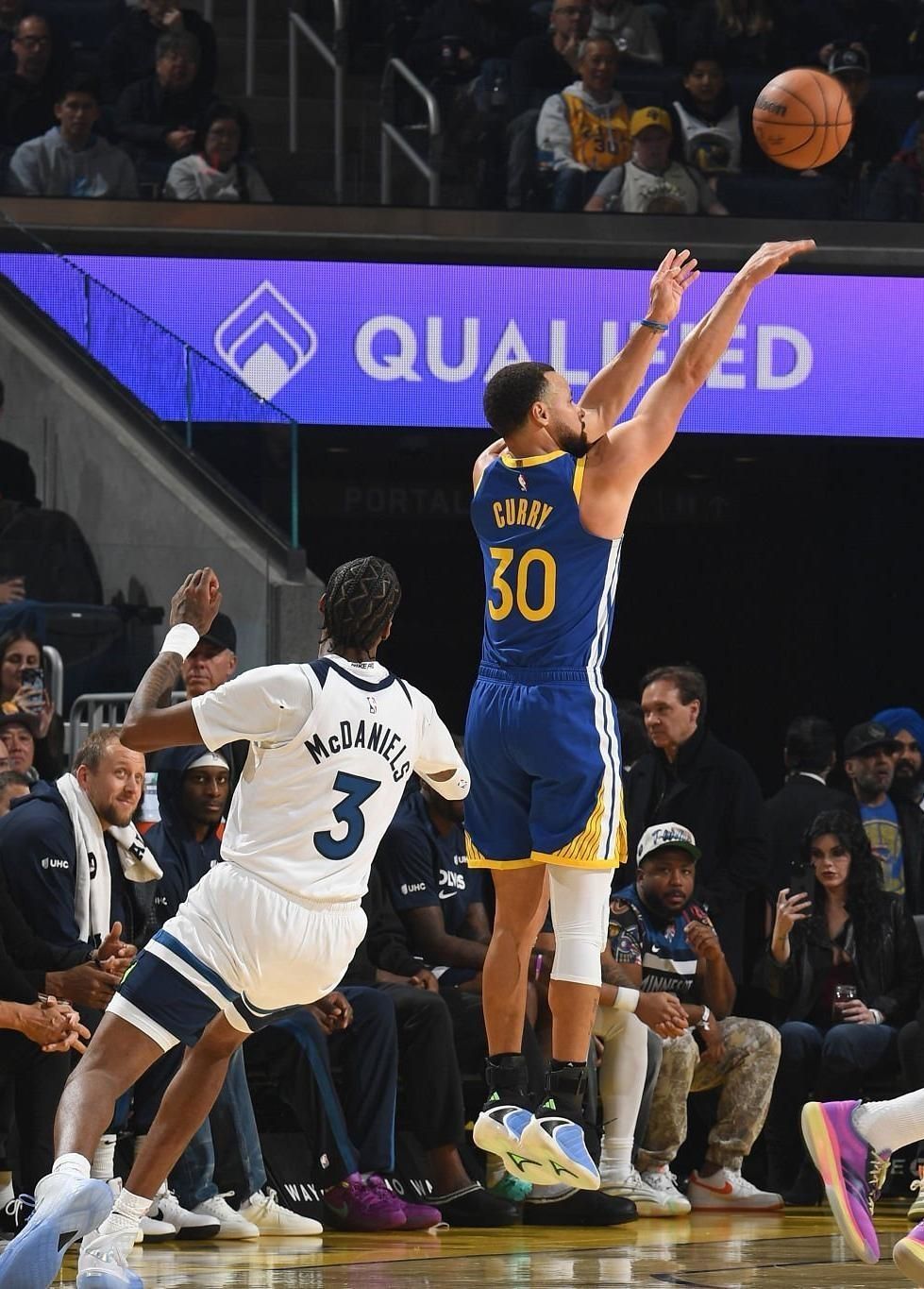 NBA常规赛,勇士120-127不敌森林狼。 本场比赛,勇士球员斯蒂芬-库里出战32分钟,28投14中,其中三分球15投6中,罚球7投5中,空砍39分5篮板5助攻。