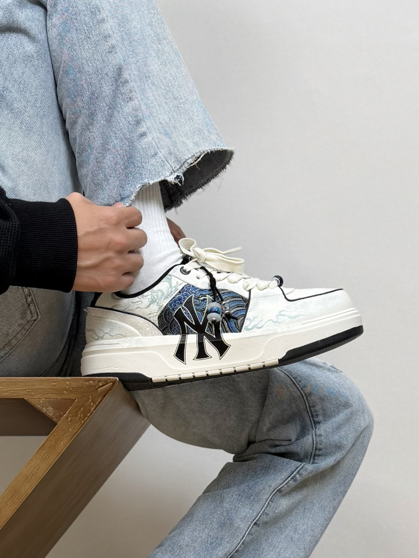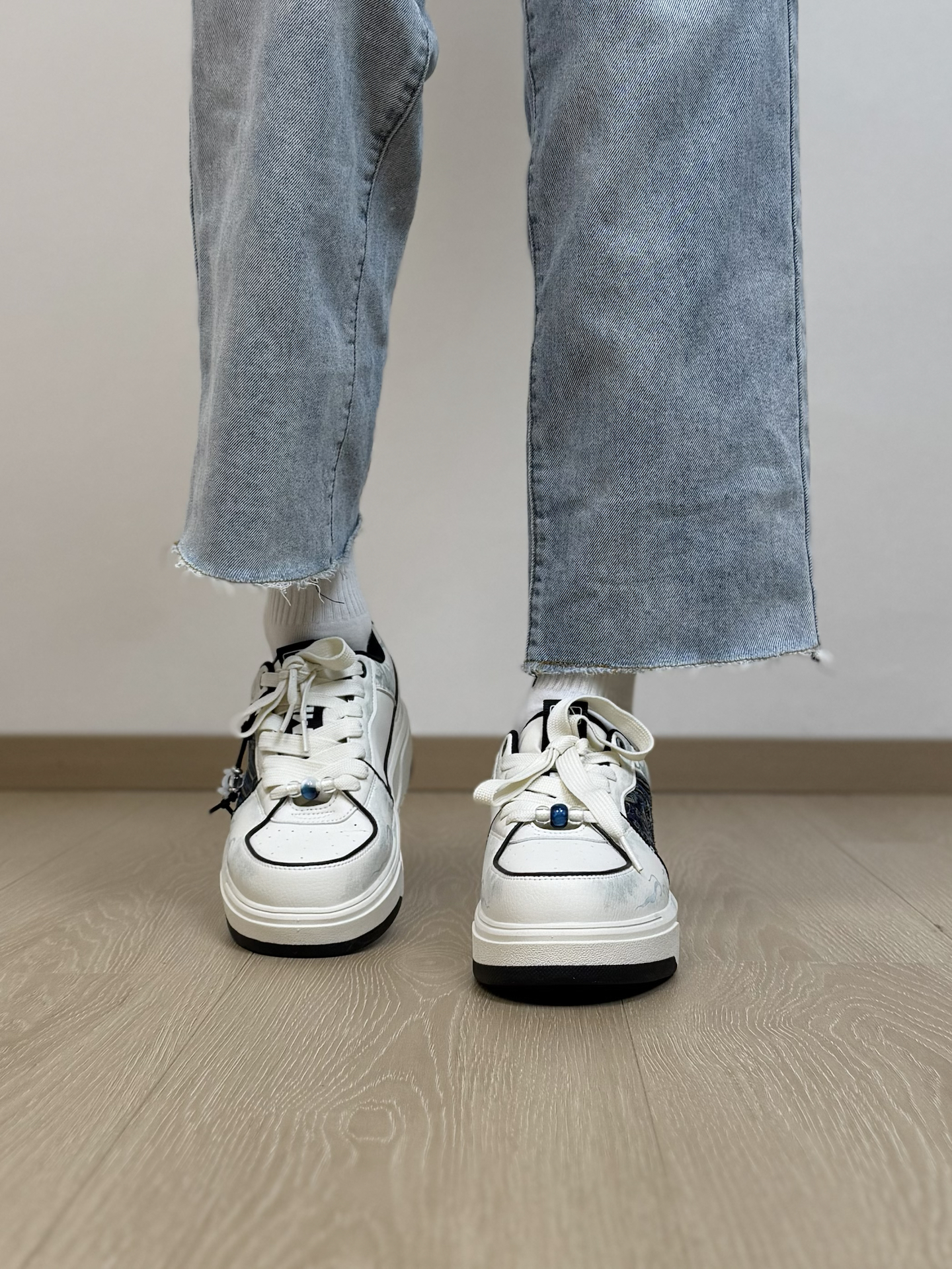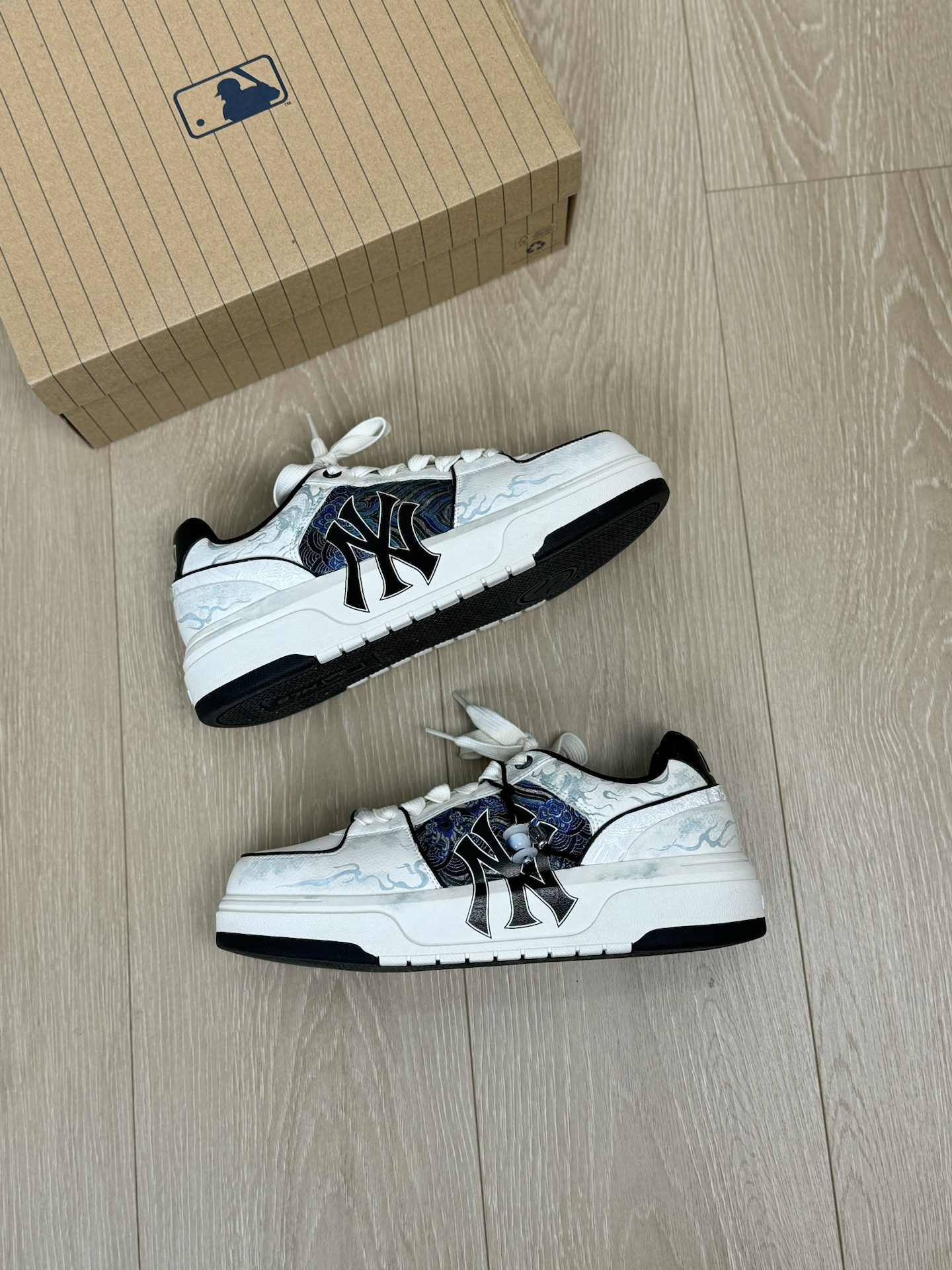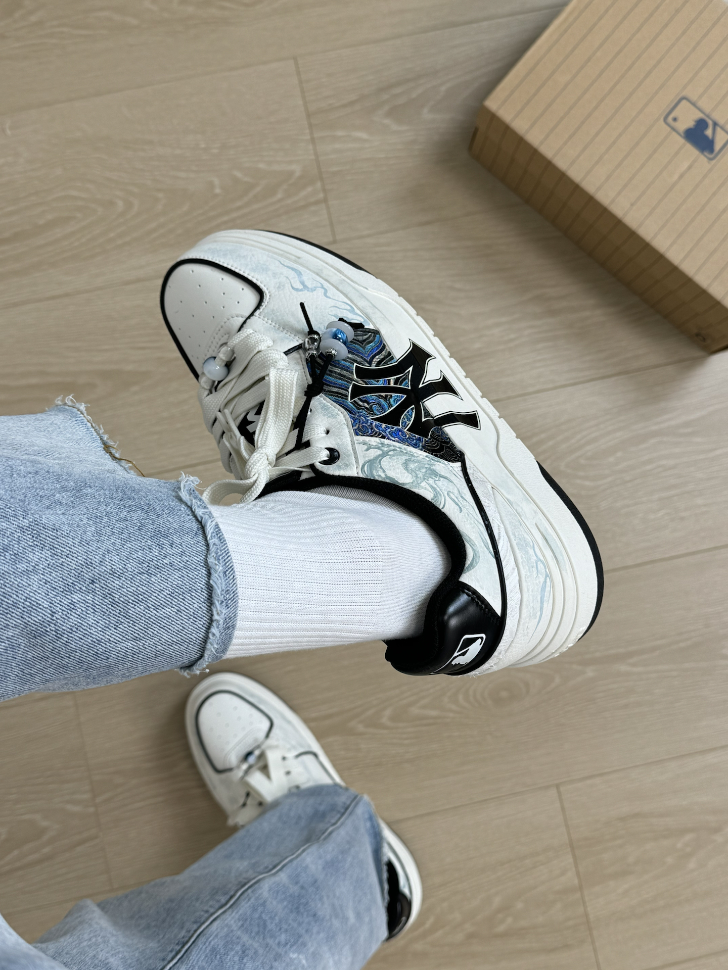 分享一双我觉得很适合通勤 而且特别有个性的一双MLB板鞋~ 虽然鞋身远看就是简约的黑白配色 其实细节做的很丰富 侧面像海流一样的抽象纹理 鞋带上还有一个小挂坠 设计上我觉得还是很用心的 重点是上脚真的好穿 蛮舒适的 而且还挺增高的 日常随便搭条牛仔裤就很好看 尺码我穿起来刚好合适 不偏码的 大家可以参考一下 #坡跟复古回潮 #韩系入冬穿这双 #鞋帽选对赢一半 #2025年年度鞋王 #万花弄