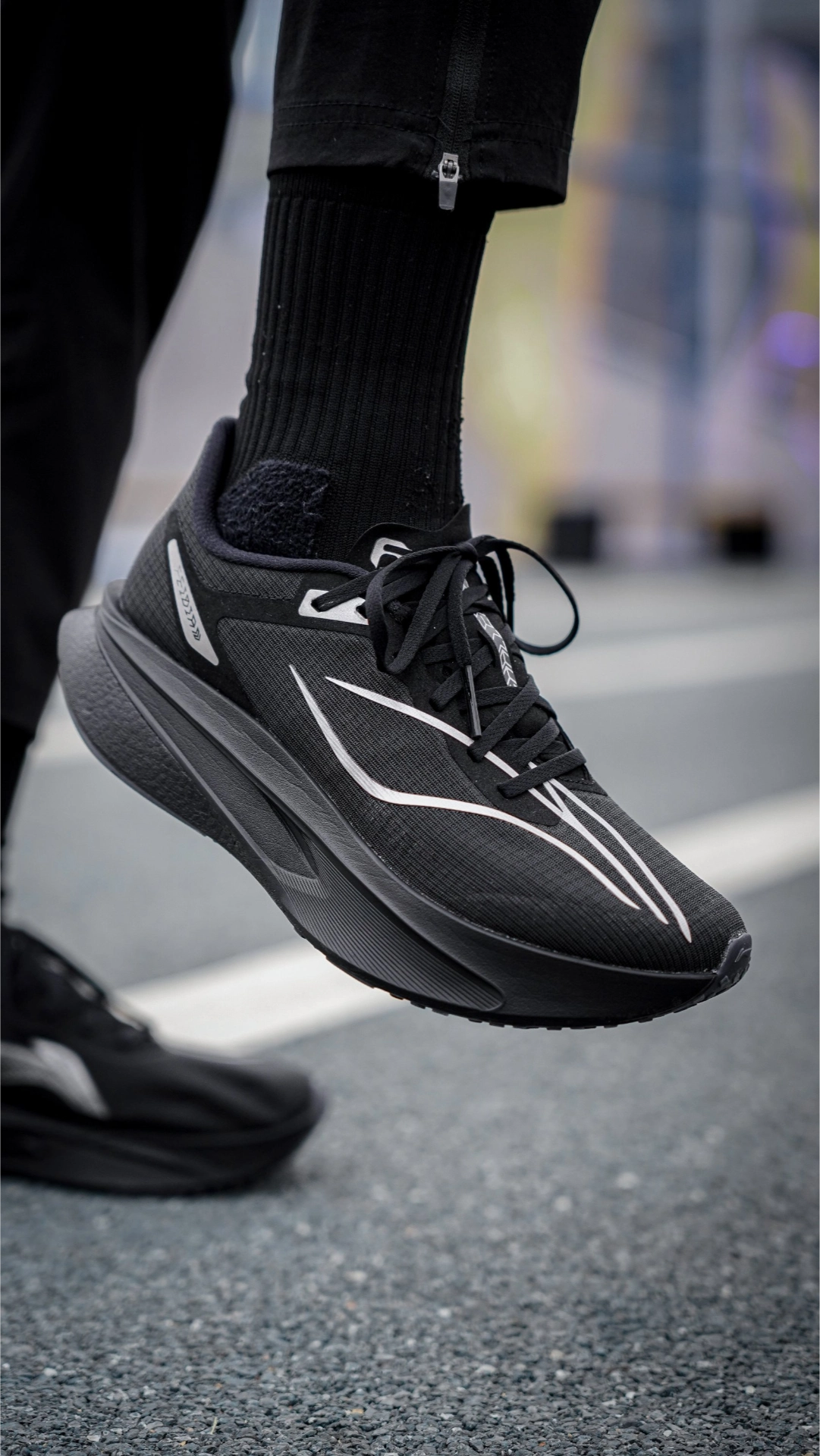 #李宁 飞电系列今年又给我带来惊喜了,这次拿到这双飞电6C的新配色黑武士,很纯粹的纯黑涂装,细节处用银色线条点缀,整体非常酷的感觉。 在配置上也是很豪华的:上层超䨻给的料更多了,搭配下层的䨻,上脚就能感觉到很澎湃的脚感,但是前后掌都做了一定的加宽设计,稳定性也有保障。 T700碳板在前掌做了分趾设计,优化了滚动感,可以说是兼顾了灵活性和推进感,跑动中给到的是平稳提速的感觉,很自然。䨻丝的鞋面强度表...