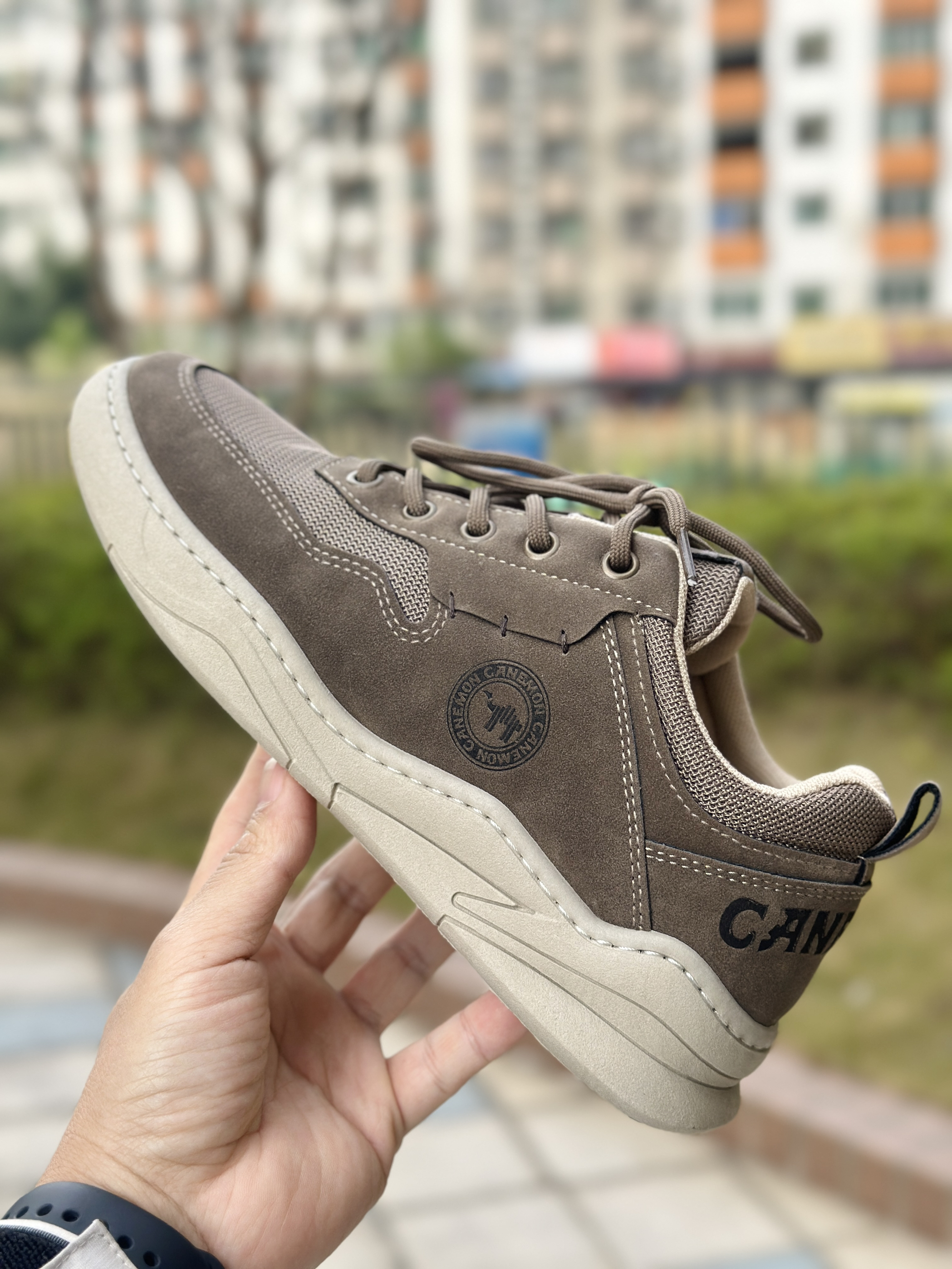 🍂今天入手一双男士秋冬轻便卡其色的板鞋 👟鞋身是透气的网面材料和革面材质拼接而成的,40码的鞋子单只重量311克的,码数略微偏大一点点,但是可以通过系紧一点鞋带解决。 ☁️上脚就感觉这个鞋身和鞋底是很轻便,包裹性也还算很足,就是鞋领口处位置,再加厚一点点给与脚后跟的包裹性就更强,行走的感觉更好 📏鞋底,厚度大约为3厘米左右,小个子穿上就是显高。虽然这双是板鞋,但是鞋底的还是偏软的,不是以往板...