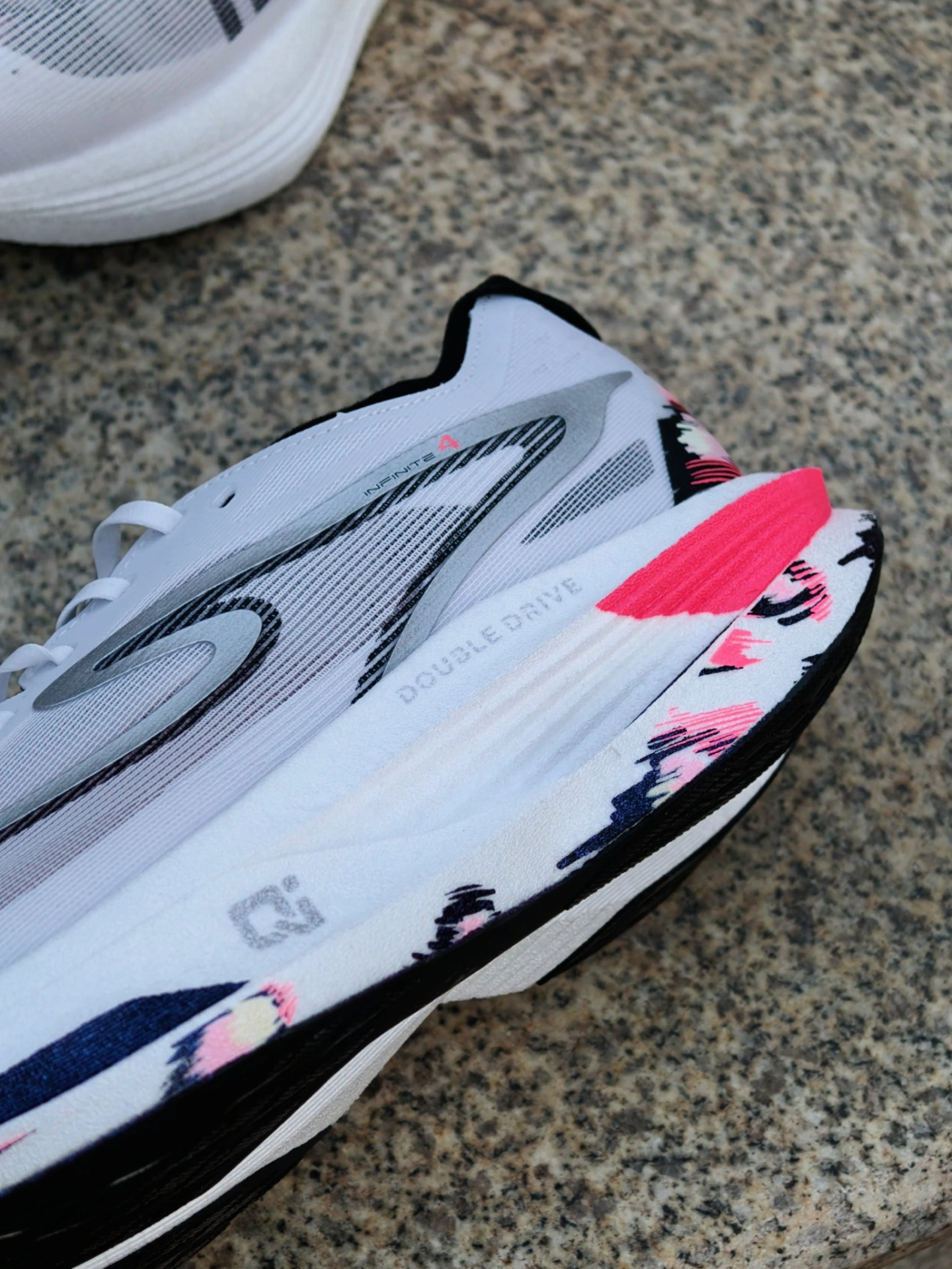 以颜值著称的芷境系列最近迎来了迭代,没想到这一代,除了帅,还这么稳? 家族式的设计外观识别度很高,粉色与豹纹点缀在白色为主的鞋面上非常清爽,鞋楦宽度适中,贴合度依旧很好。中底这次的立体碳板偏向于稳定性的设计,除了一如既往的推进感,稳定性的表现非常出色,横滚与过弯更加稳定,目前性价比很不错,喜欢的朋友不要错过! #我的PB战靴
