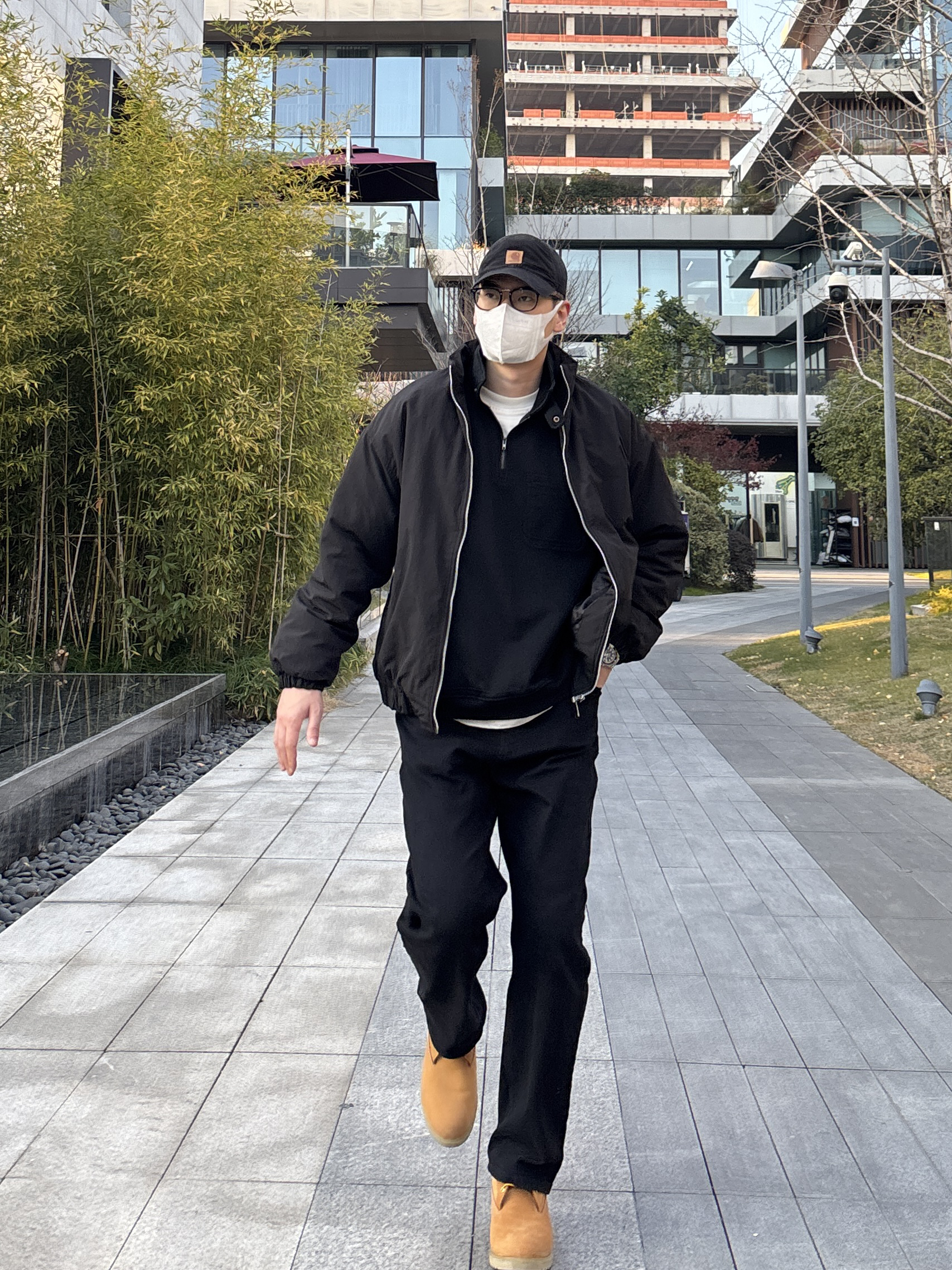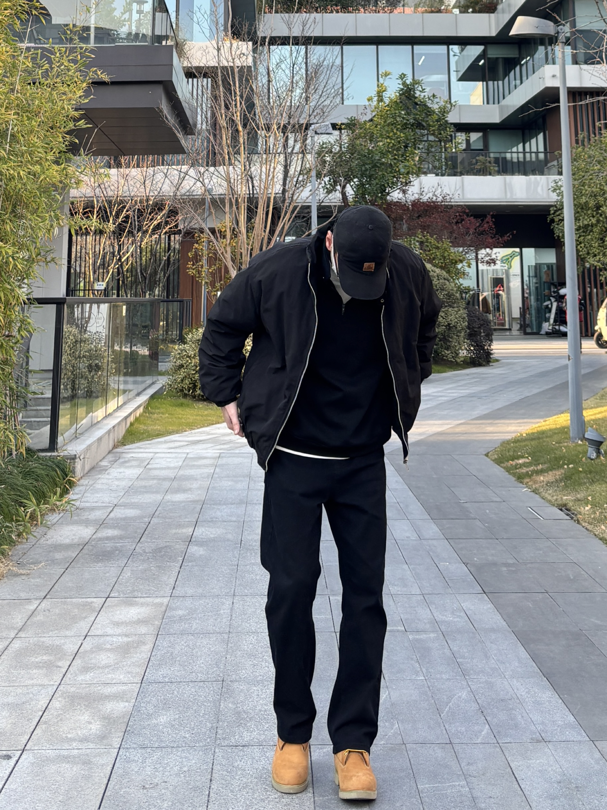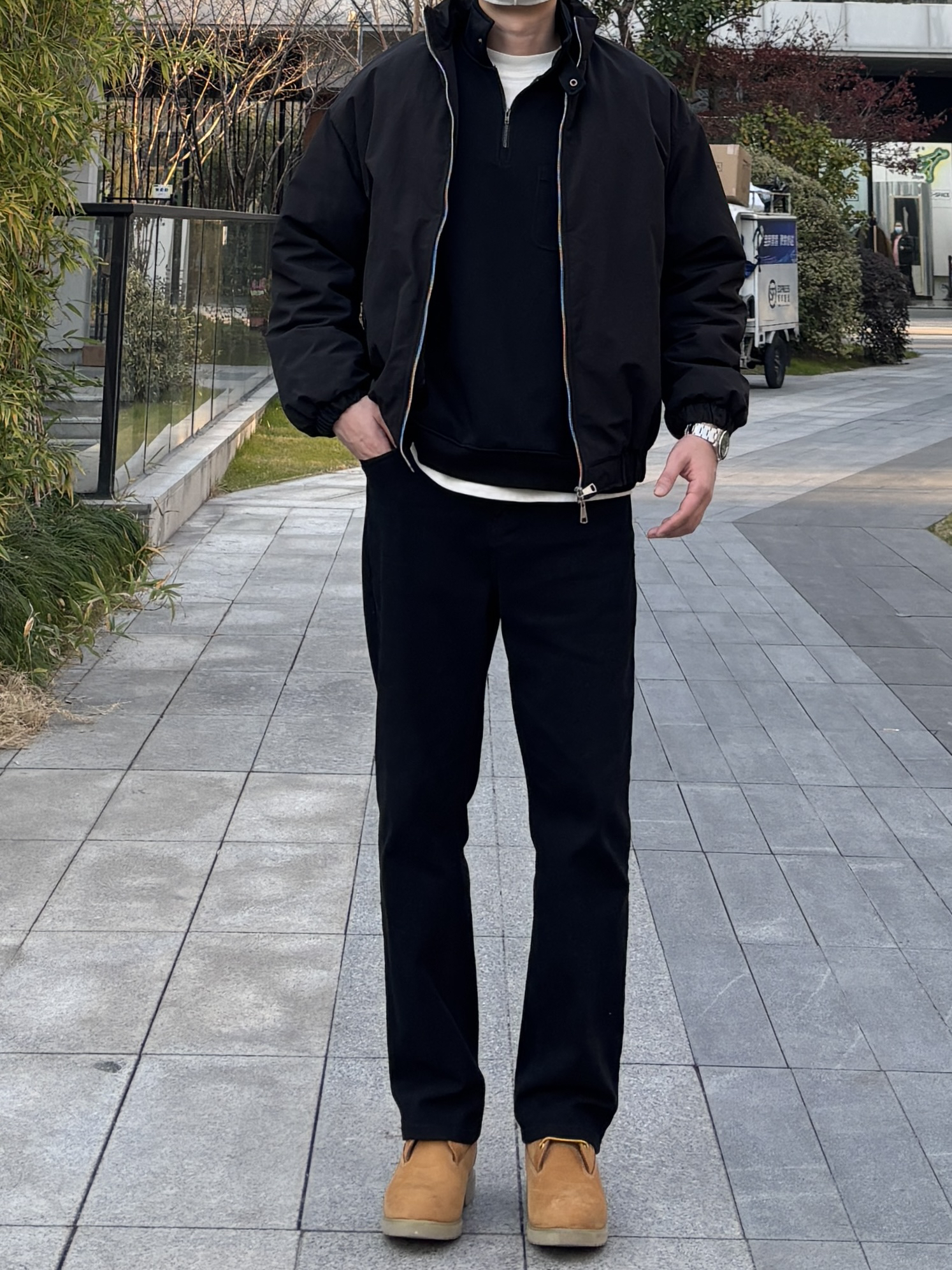 黑棕配色真的利落又有型!今天这套极简风穿搭,简直是懒人福音,随便穿穿都有松弛感。 整套穿搭以黑色为主。上身黑色短款立领棉服内搭黑色半拉链卫衣,叠穿白色T恤露出边边。下装搭配黑色直筒水洗牛仔裤,最后配上一双棕黄色工装靴,中和掉黑的沉闷,让这身look更亮眼🙋♂️ - 今日搭配 衣服裤子:NICE LILI 鞋子:timberland