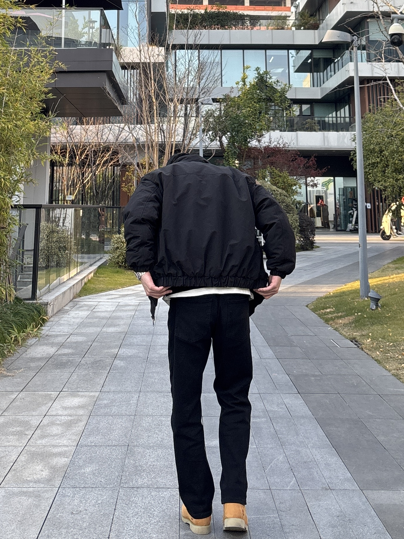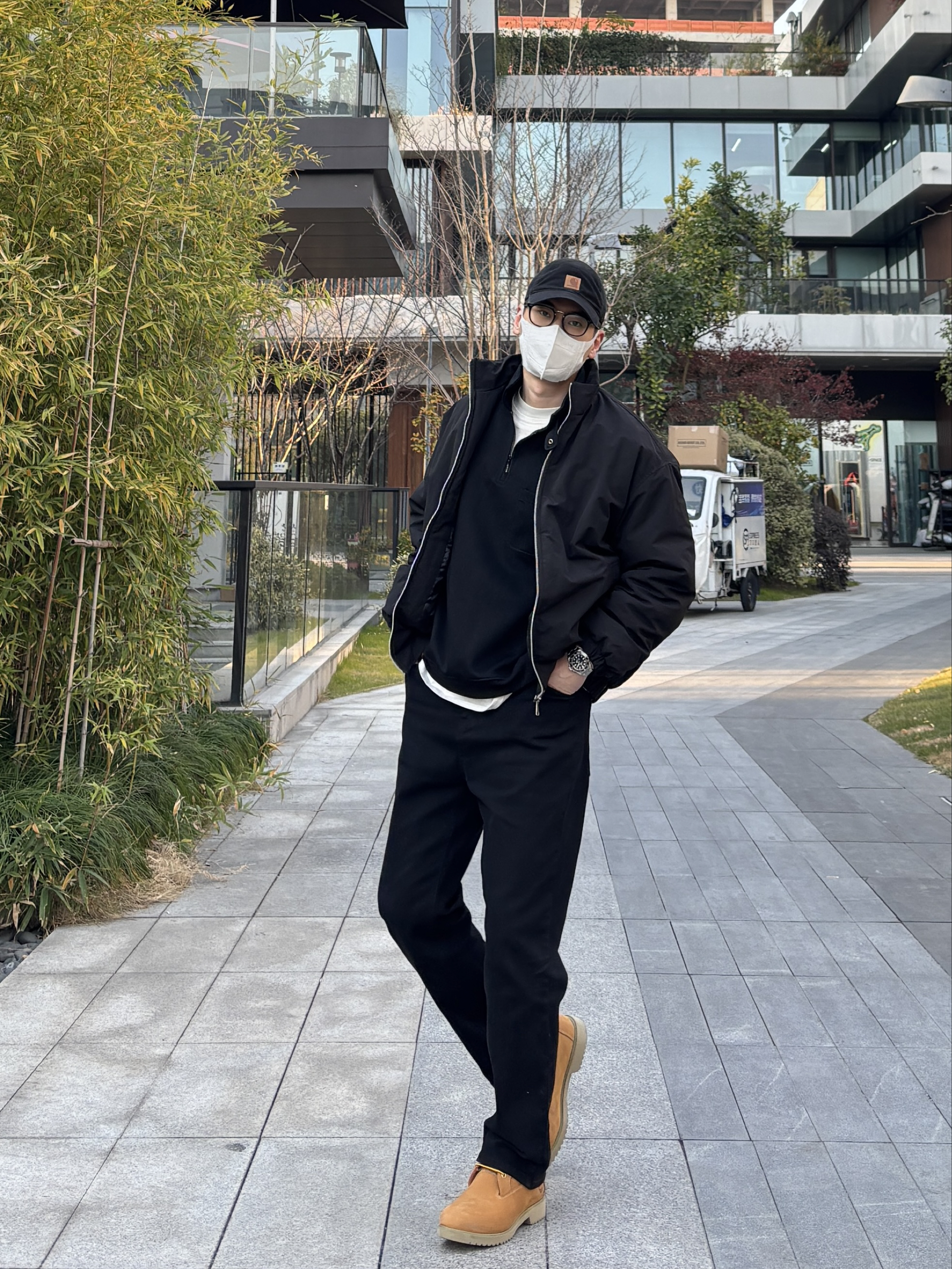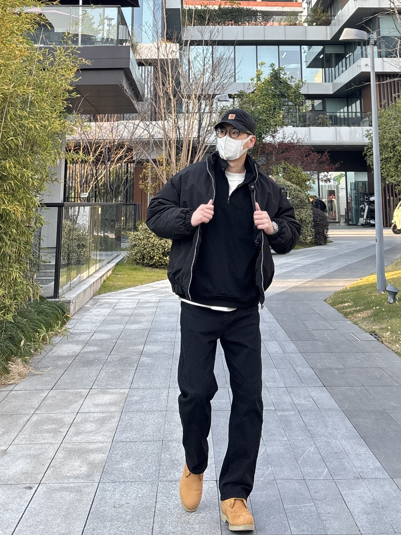 黑棕配色真的利落又有型!今天这套极简风穿搭,简直是懒人福音,随便穿穿都有松弛感。 整套穿搭以黑色为主。上身黑色短款立领棉服内搭黑色半拉链卫衣,叠穿白色T恤露出边边。下装搭配黑色直筒水洗牛仔裤,最后配上一双棕黄色工装靴,中和掉黑的沉闷,让这身look更亮眼🙋♂️ - 今日搭配 衣服裤子:NICE LILI 鞋子:timberland