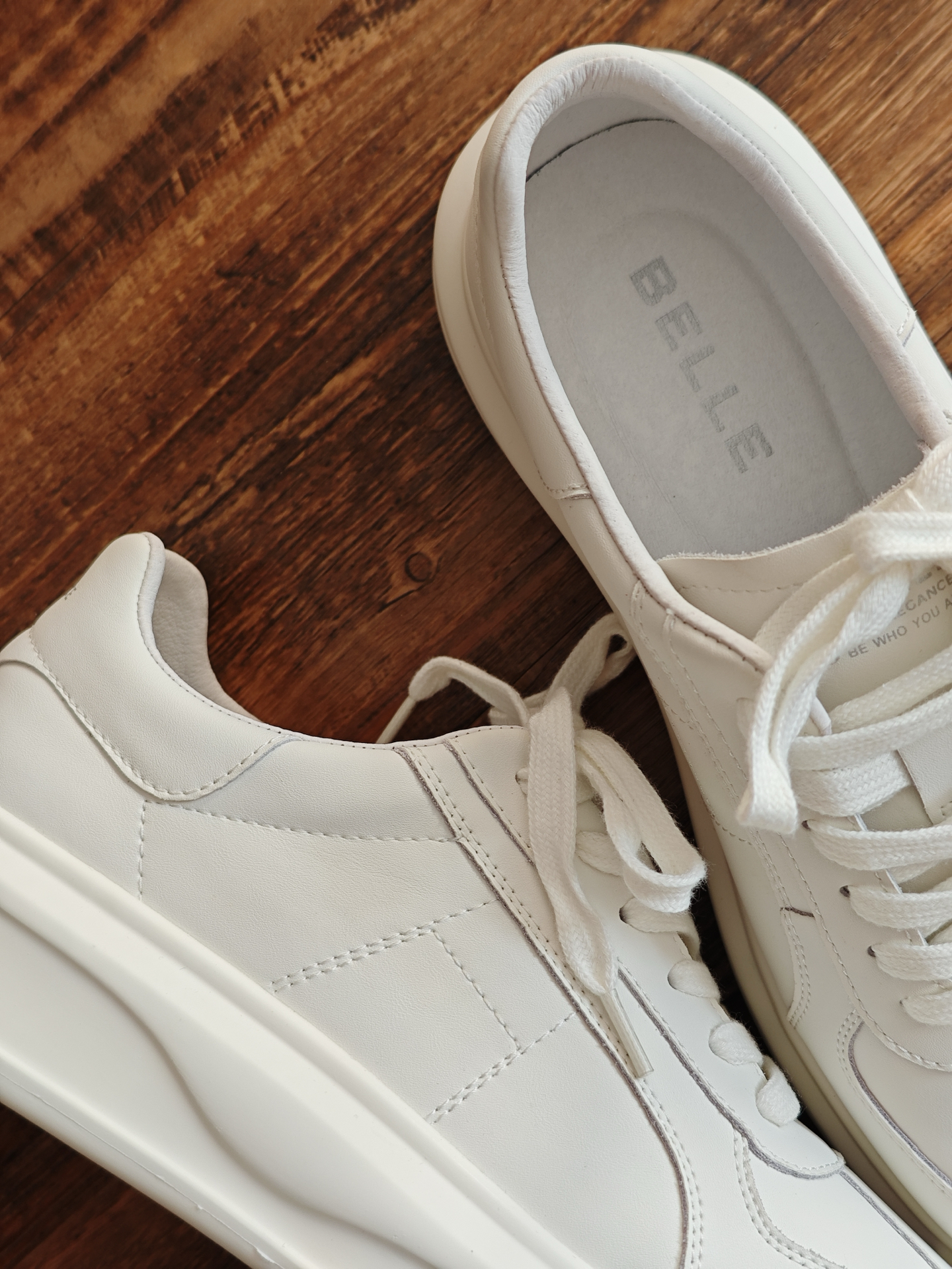 [惊恐_blue]沃趣,第一次被一双板鞋的质感给惊艳到,它就是 #百丽 BELLE 的这双云迹厚底小白鞋,这双鞋子摸上去就特别舒服,质感非常的细腻,日常穿噂嘟很百搭,脚感也很软弹,而且它还有一定的增高功能哦,怪不得这么多明星都在穿~😍 @得鞋狗 #明星冬日鞋靴指南 #冬季宝藏百搭休闲板鞋 #韩系入冬穿这双 #百丽男鞋 #薄底鞋穿四季
