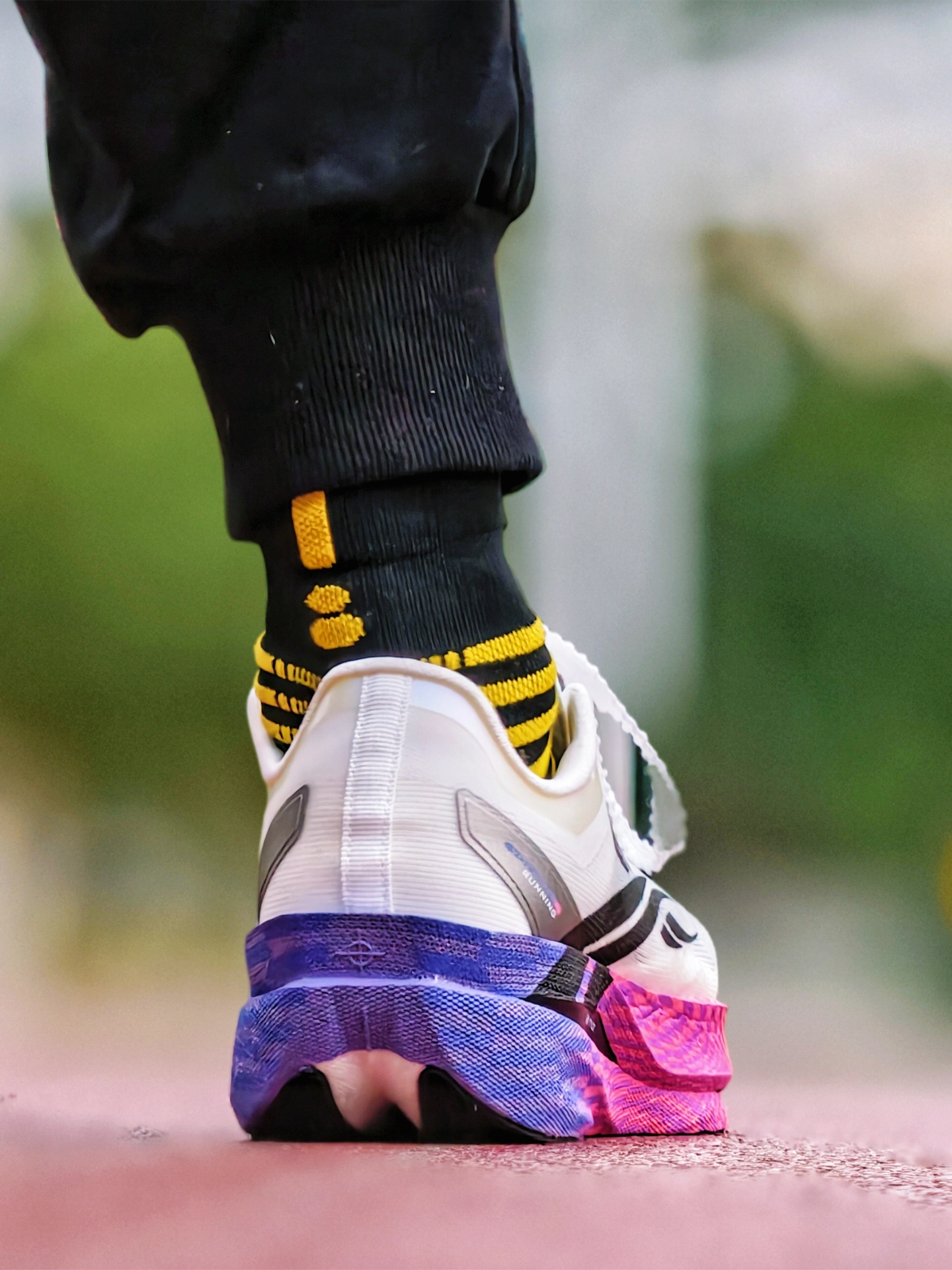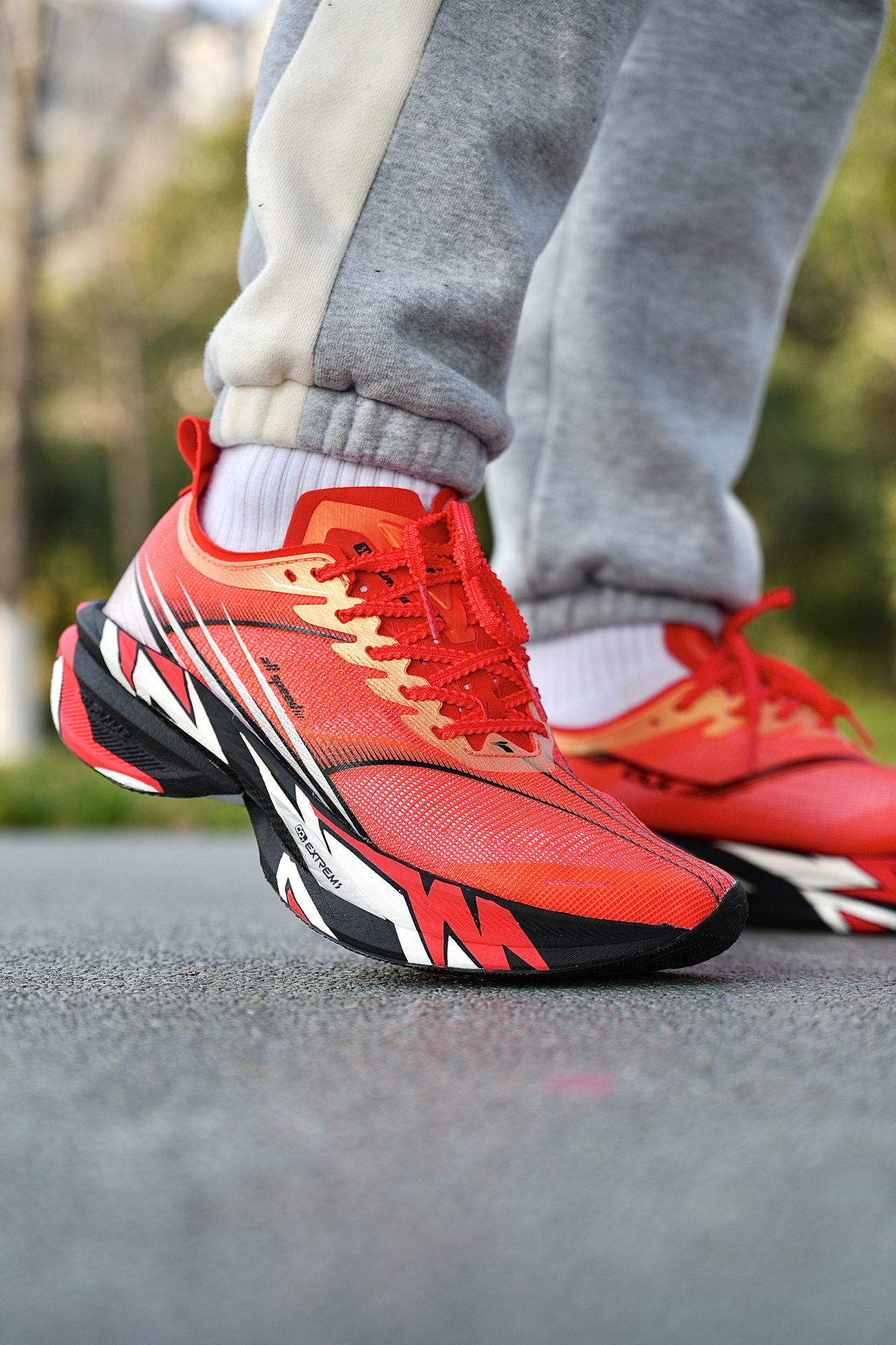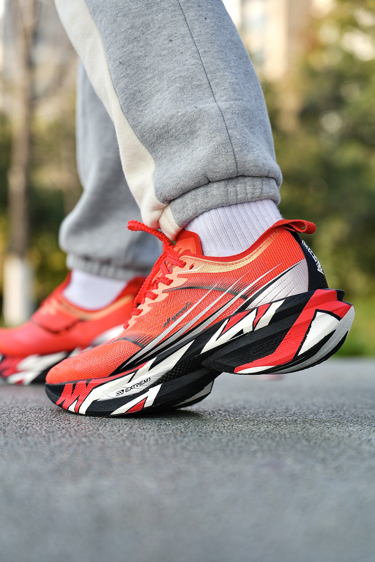 本期分享的跑步鞋为361度 飞飚2,我入手的配色为沈乌贼PE配色,采用红色为主色调,搭配上侧墙黑白色线条,鞋舌与后跟还有专属涂鸦与文字,辨识度这块拉满了❗️ 配置简单说:双层CQT科技中底(上层粗胚发泡+下层珠粒发泡)+全掌动态碳板,碳丝编织鞋面+RPU耐磨大底 我上脚穿下来,鞋子脚感韧弹,中底的回弹表现很不错,碳板的推进力迅猛,蹬伸像被弹出去,中前掌跑法能完全发挥性能 不过缺点得实话实说:...