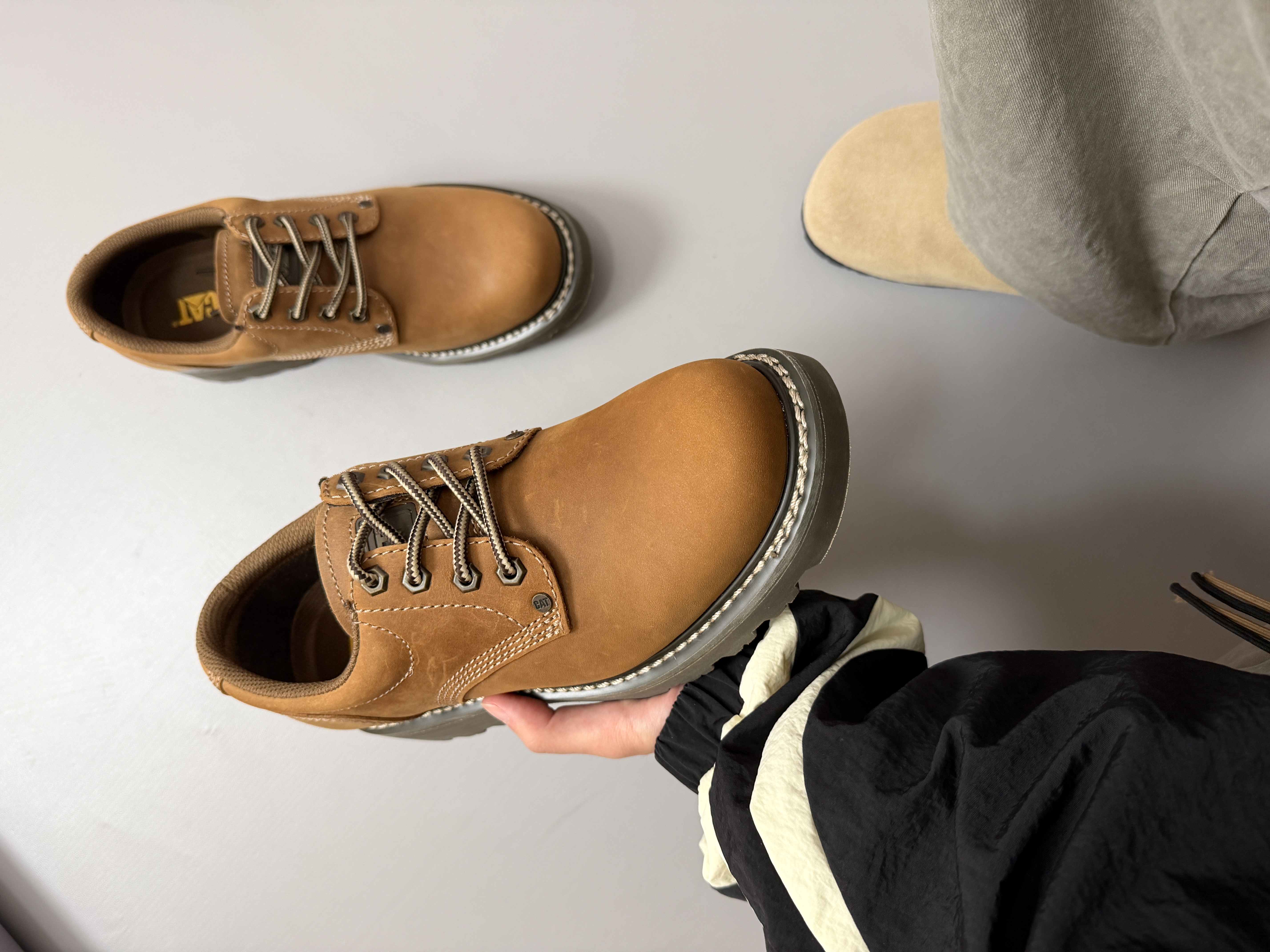 找到了我的梦中情靴 #CAT SS23 Expressway ✅浅棕工装靴,轻到能塞包里, 防水皮面+防滑齿纹安全感满满, 雨天踩水坑💦稳如老狗,穿久不带累的! ✅自带复古滤镜的它搭配牛仔裤或工装裤! 直接氛围感拉满,日常通勤轻轻松松~ ⚠️尺码参考:170/120 穿着 41刚刚好‼️ @CAT官方 #CAT卡特 #秋天宝藏户外休闲鞋 #新鞋零时差 #双旦礼物礼物节 #双旦礼物...