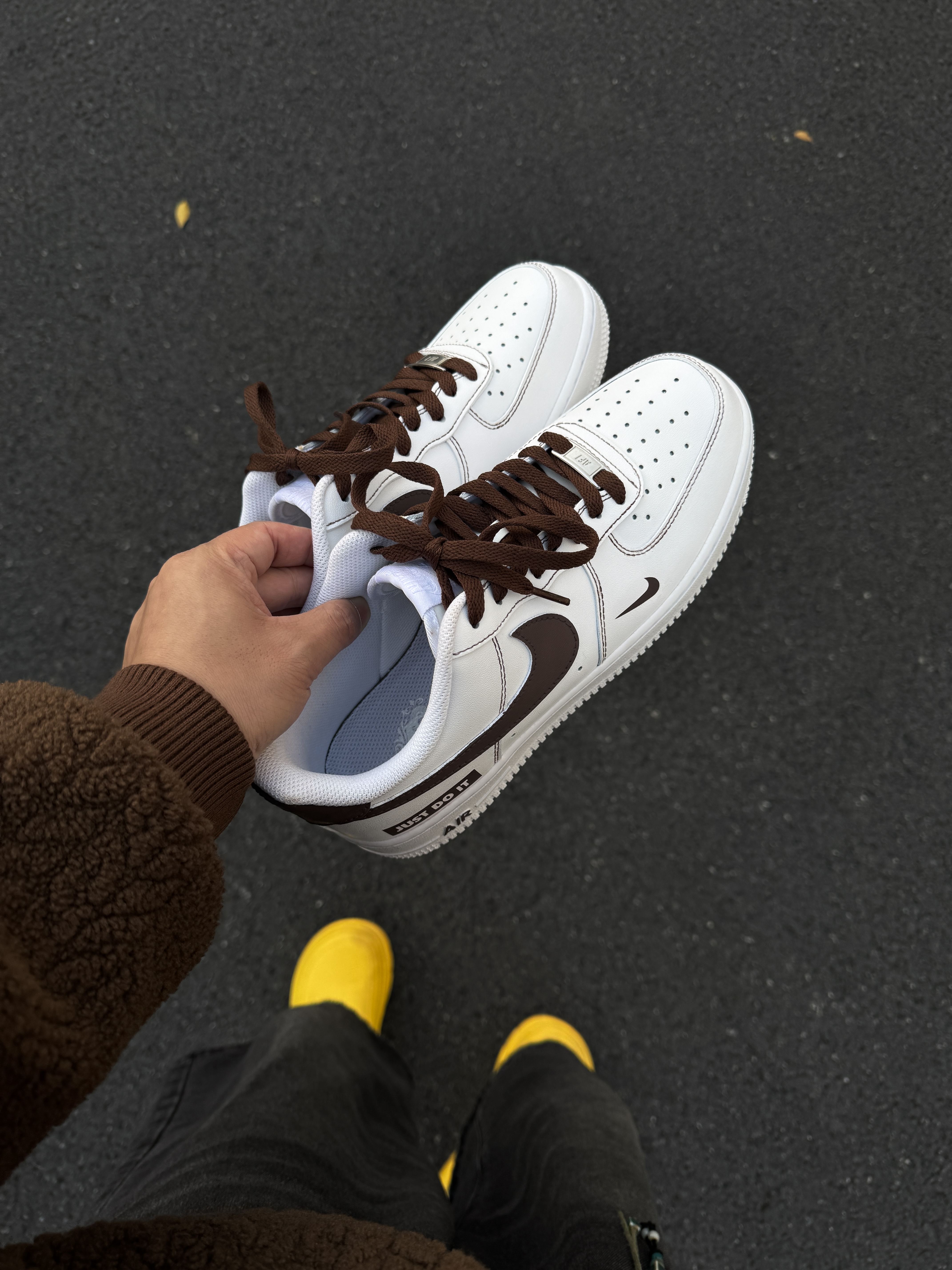 ~ 给大家分享两双 #Nike 的定制板鞋👟 一双是国风的竹叶系列一双是咖色的 两双的都是偏向于简约的风格 我会比较喜欢咖色的多一点 侧面的just do it印记还挺帅的 我选了一件同色的上衣做搭配 整体的感觉就是那种暖暖的感觉 上脚还是依旧的好评👏🏻 空军就是越旧越好看的鞋型😎 尺码小建议: 徐哥平常穿的40的这双40的刚好合适‼️ #时髦蜈蚣精 #2025年年度鞋王 #韩系入冬穿这双 ...
