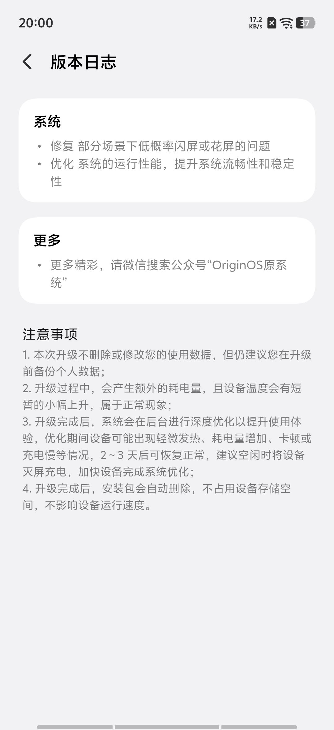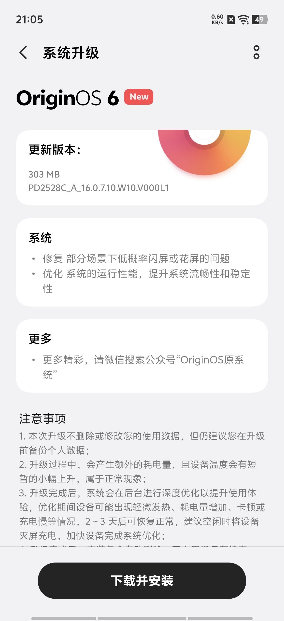 vivo S50到手后首次更新,尽管这个更新推送并不是很大,只有303MB大小,但重点是优化了使用体验。 更新过后,版本升级到16.0.7.10版本,而更新日志只带来了2行的内容,主要是优化与修复已的问题,为了能带来更好的体验。 与此同时,vivo S50搭载的OriginOS 6,全功能体验都能体验得到。尤其是趣味光栅更是全功能支持图片与视频的自定义,这个更是玩法充满了创意。 #OriginOS...