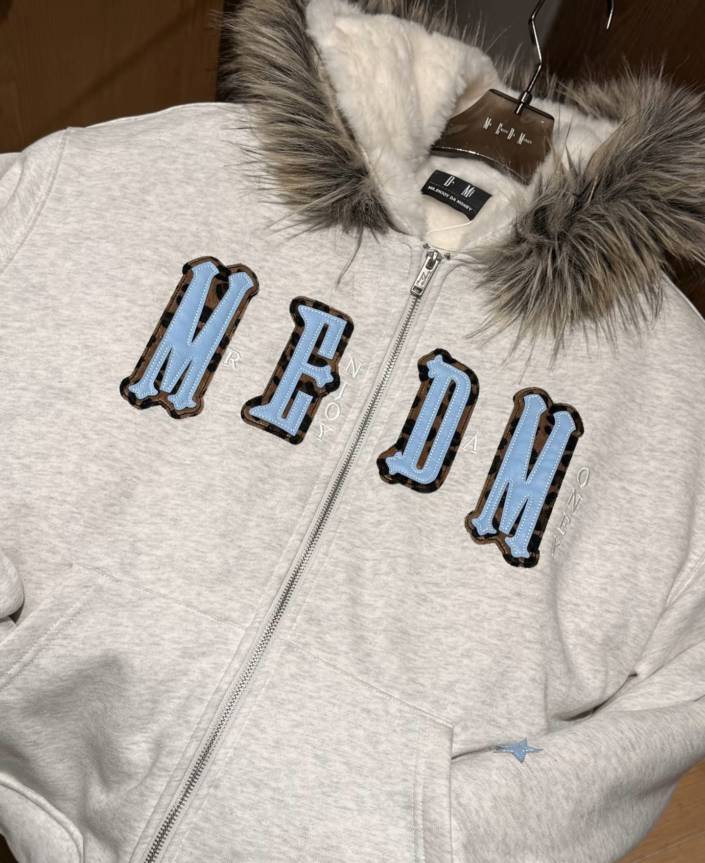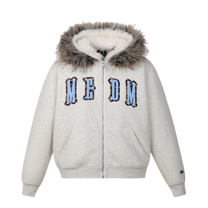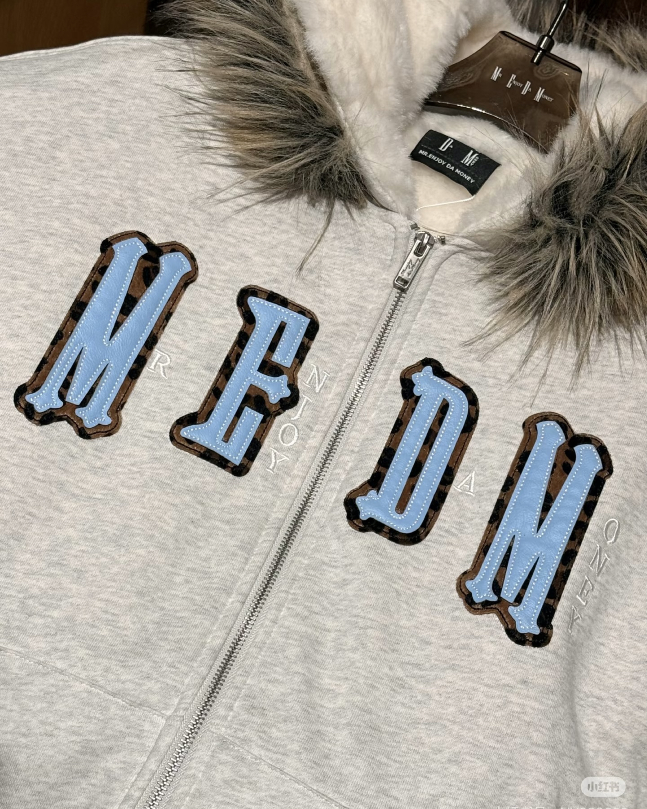 终于蹲到MEDM这款毛领连帽衫的现货,试穿完直接宣布是我秋冬的本命外套😎 浅灰色调简约又高级,不会像亮色那么挑搭配,胸前的大字母用了浅蓝拼豹纹的贴布工艺,摸起来凹凸有致,视觉上超吸睛👀 毛领部分是真的惊喜,手感软糯还不飞毛,围在脖子上暖乎乎的,北方的初冬穿也完全扛得住,而且拆卸设计超贴心,洗的时候也方便。内里的加绒是那种细腻的婴儿绒,穿在身上像裹了小被子,保暖性拉满!版型是我超爱的街头宽松款,我1...