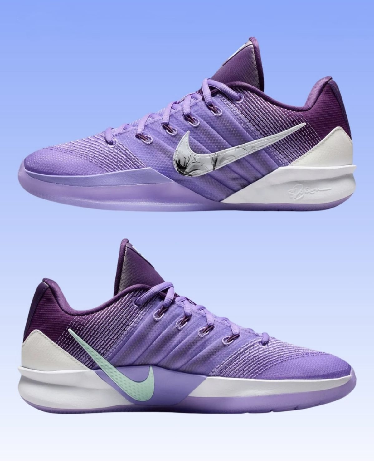 夜紫调的赛场浪漫!Nike Sabrina 3男女同款篮球鞋把质感拉满,夜紫色编织鞋面自带暗纹层次,贴合脚型的针织材质上脚超舒适,包裹感直接拉满。专业篮球鞋的缓震科技加持,日常穿搭炸街、赛场实战都能打,这双夜紫战靴闭眼入不亏!