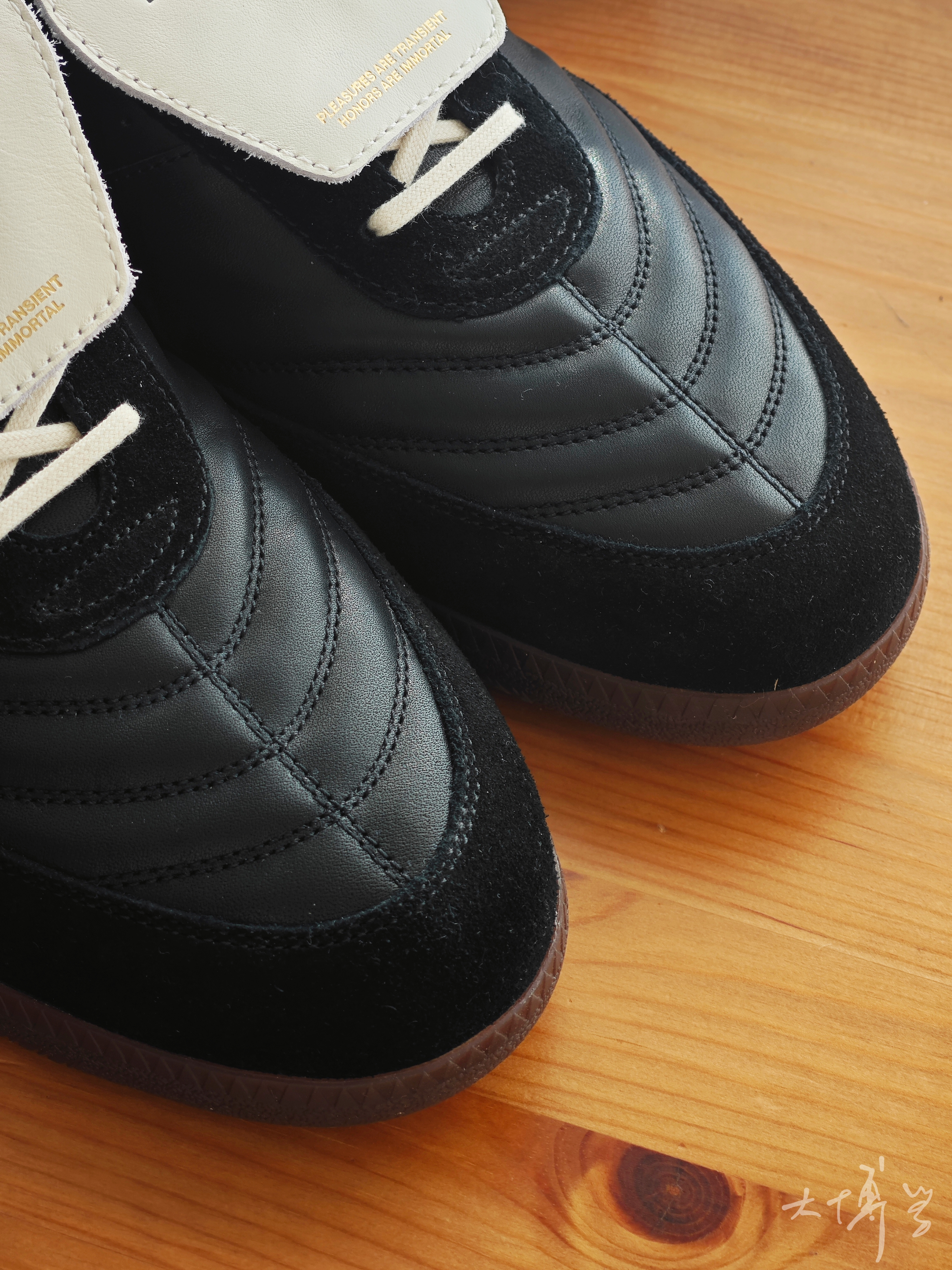 一双复古足球鞋外观的休闲鞋 不论鞋头鞋型还是外翻的鞋舌 都很像我小时候的“皮足” 鞋舌上面有品牌刺绣 通过子母扣可替换不同颜色 当然也可以完全拆掉 鞋底很薄 和老爹鞋篮球鞋脚感不同 做工精细,用料扎实 使我对这个小众品牌刮目相看