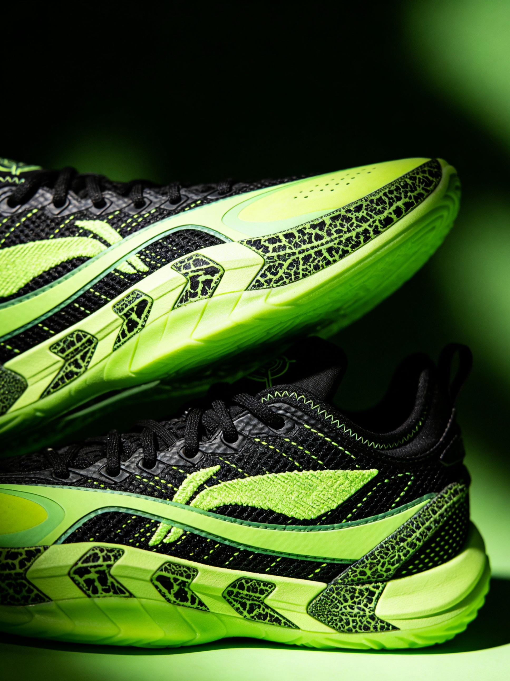 👟球鞋名称:反伍BADFIVE游击2 🔍分享理由:高性能高颜值 🤔整体感受:作为反伍系列的外场实战鞋,轻量化的鞋身减轻了运动负担,适合追求灵活走位的球员;荧光绿+黑色的撞色极具视觉冲击力,鞋身的裂纹纹理和渐变荧光绿中底,街头感与实战风格兼具,日常穿搭也足够吸睛。