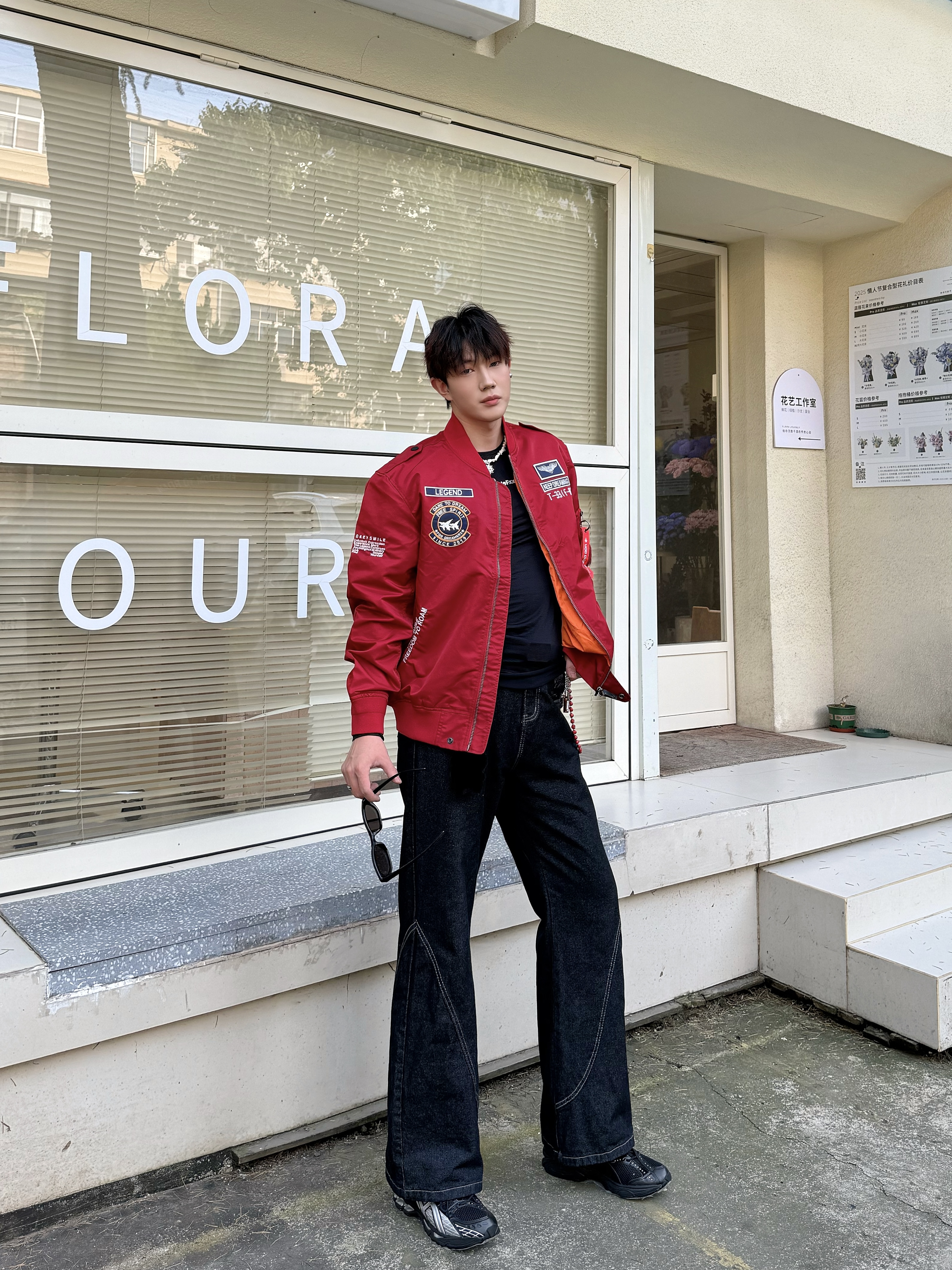谁懂黑红配的潮酷?好有城市机能vibe~ 今天主打一个实穿主义 红色飞行夹克好有机车风格 都市通勤或者户外休闲牛仔跟工装裤都比较合适 脚踩的一双ASICS休闲鞋,脚感度足足滴 黑银配色和未来感的设计风格尊滴让俺心动啊💗