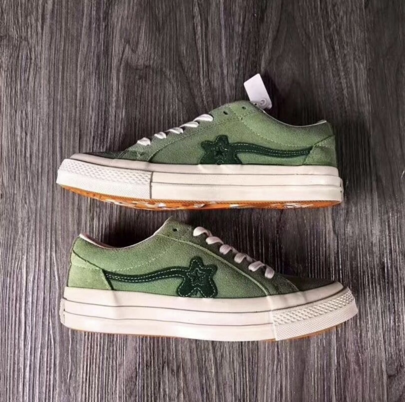 👕推荐单品 Converse x Golf le Fleur* One Star 抹茶绿麂皮低帮板鞋 🛒推荐理由 Converse与Golf le Fleur*联名设计,抹茶绿麂皮鞋面质感高级,鞋侧小花刺绣标志极具辨识度;橡胶包边与生胶大底搭配,还原复古板鞋风格,脚感柔软且耐磨性优异;低帮鞋型简约百搭,适配街头、休闲、日系等多种穿搭风格,是联名款中的经典潮流单品。 🧍🏻尺码对照(身高|体重) 女生...