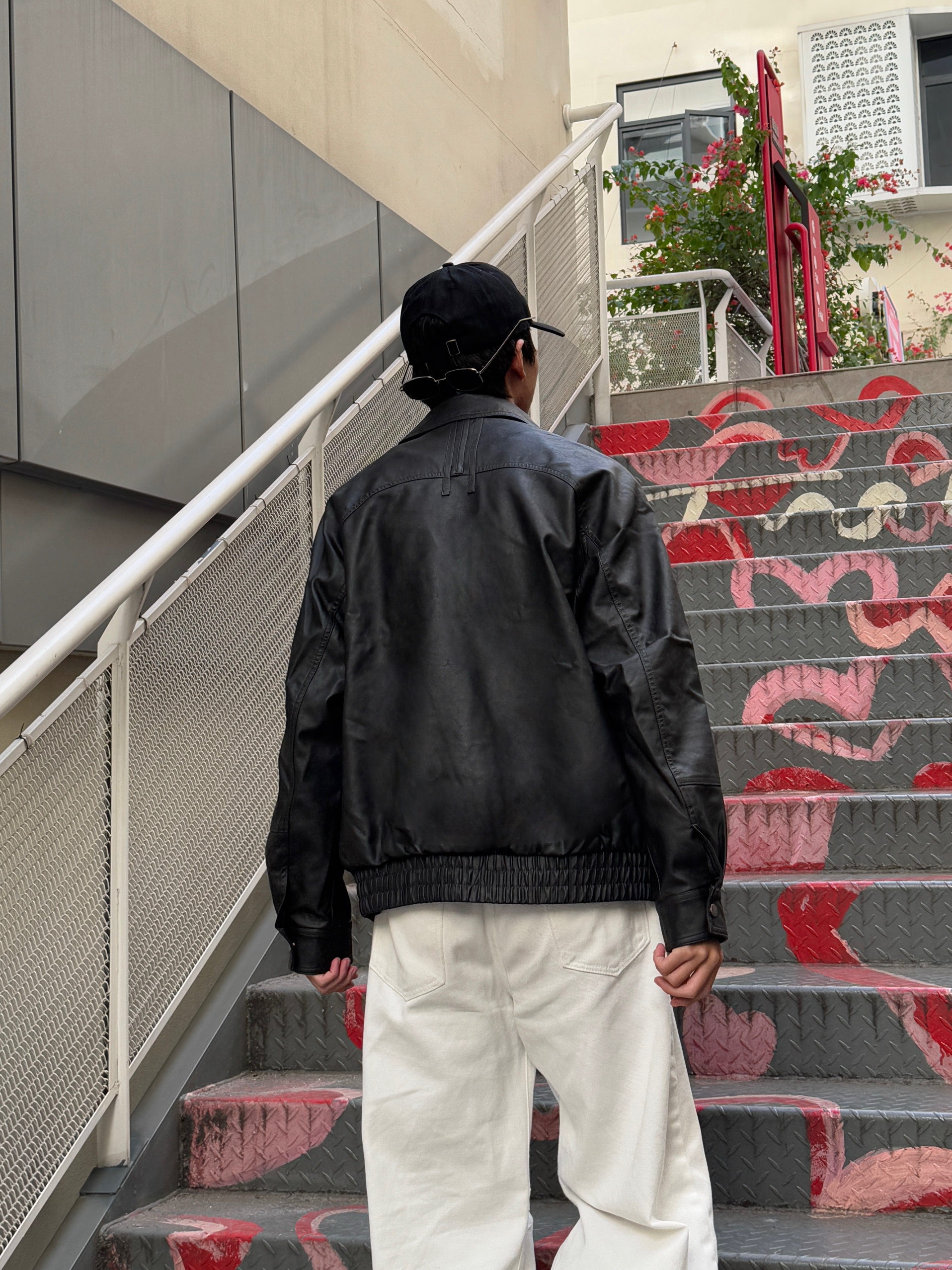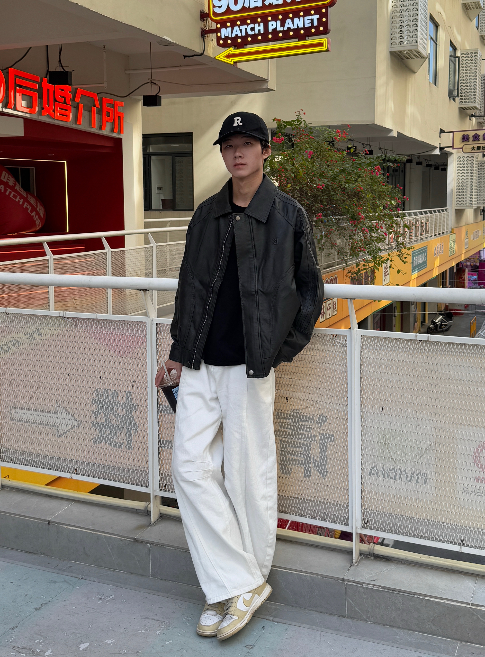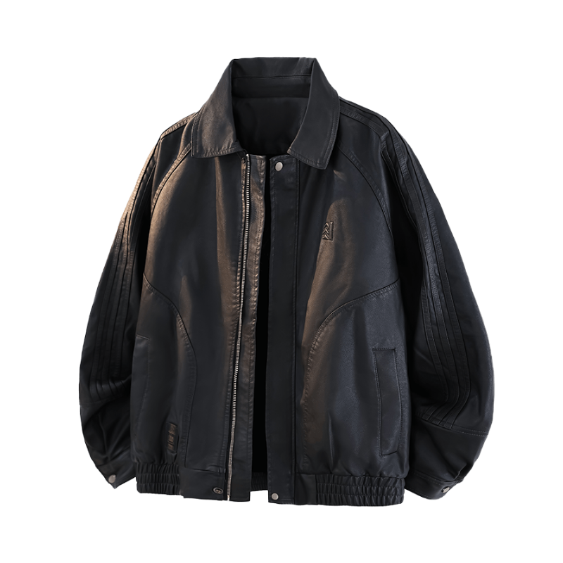 这身黑白色调穿搭太有型了 黑色美式复古飞行员PU皮夹克质感满分 光泽感皮质自带帅气buff~ 内搭黑色长袖T恤简约显瘦 下身搭配白色弯刀阔腿裤 流畅的剪裁完美平衡了上身的硬朗 走路带风气场全开 整套look复古又时髦 出街回头率稳了🕶️