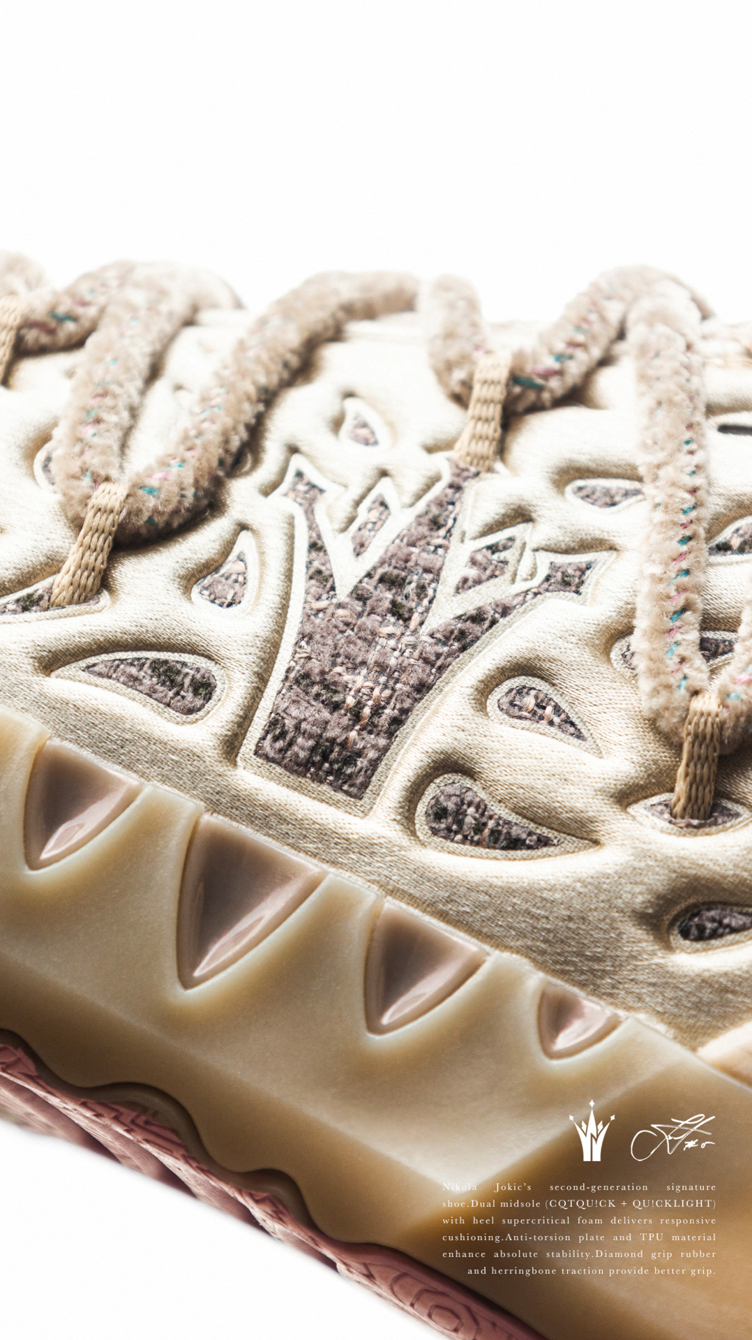🥂举杯共饮🥂 👟:361° Joker 2 “Champagne” 约老师的第二代签名鞋在年末正式发售,以Jokić的家庭为主题进行设计,融合了Jokić女儿的花卉头饰以及妻子的塞尔维亚传统服饰等元素,依旧使用了皮革、绸缎等特殊材质进行打造,整体的绑缚系统贯穿鞋身,中段的内外两侧都有约老师的个人logo作为视觉中心。灵感来自NBA总冠军的“香槟”配色附赠了毛绒绒的鞋带,中底则是搭载了CQT Q...
