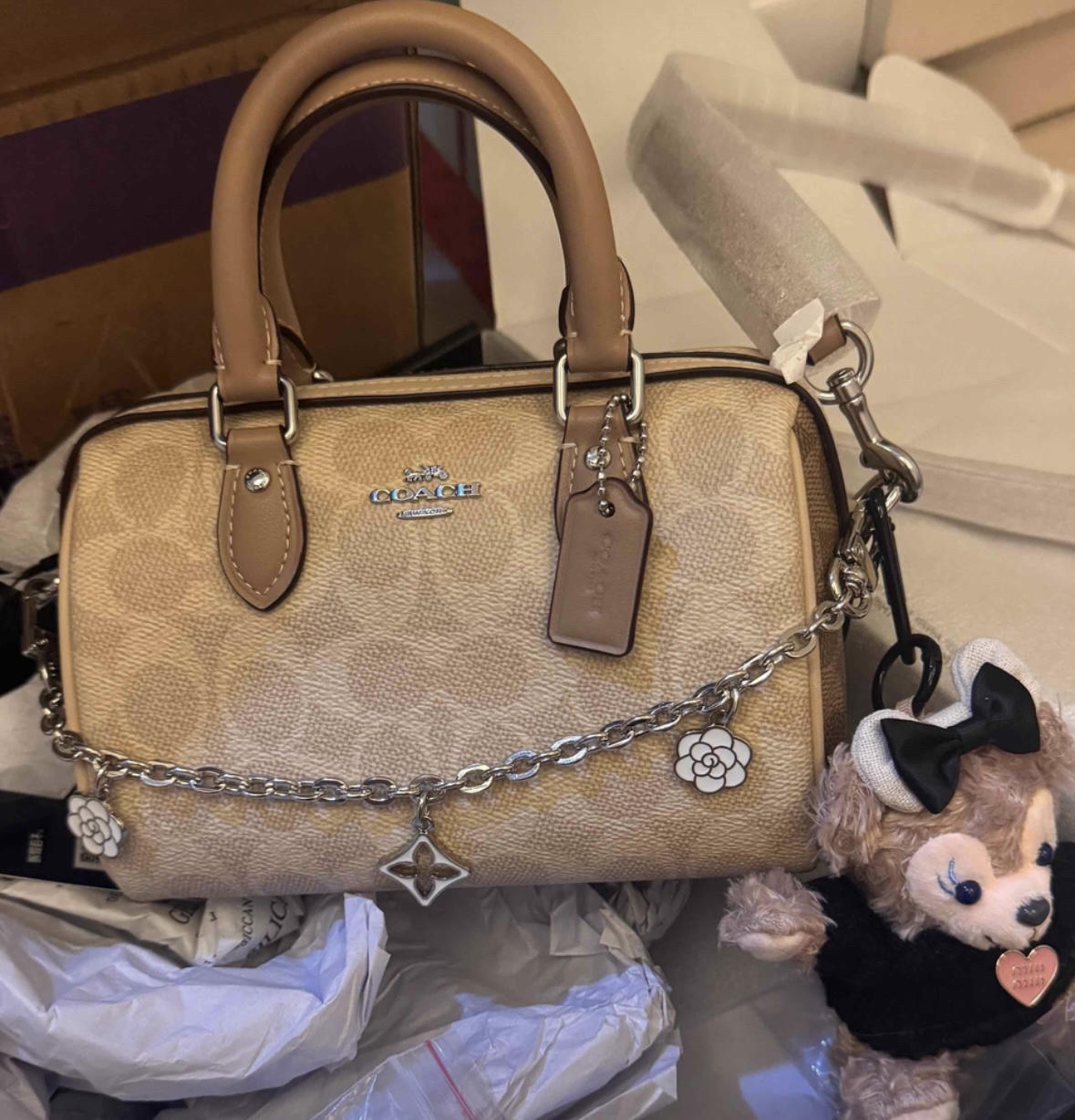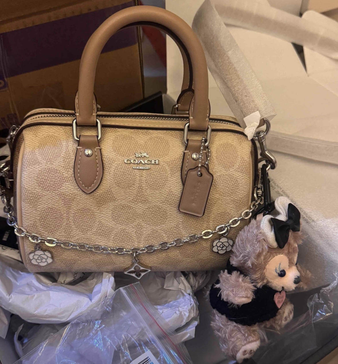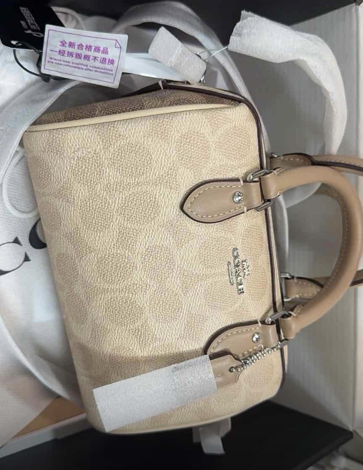 本篇笔记关联了Coach Rowan 大号 品牌徽标拉链开合皮革单肩斜挎波士顿包手提包 豆沙色等商品,为用户提供真实的使用体验和购买参考。