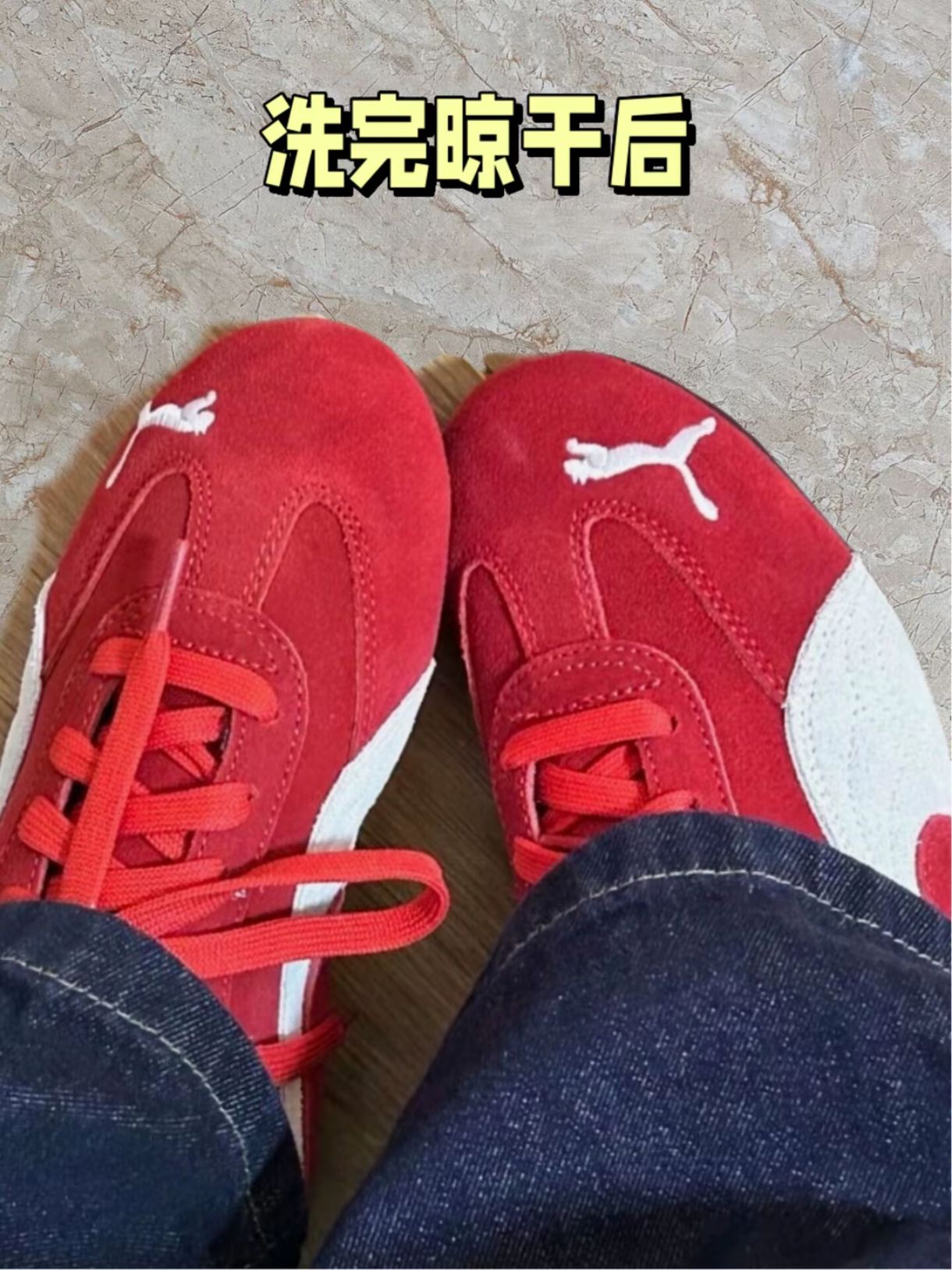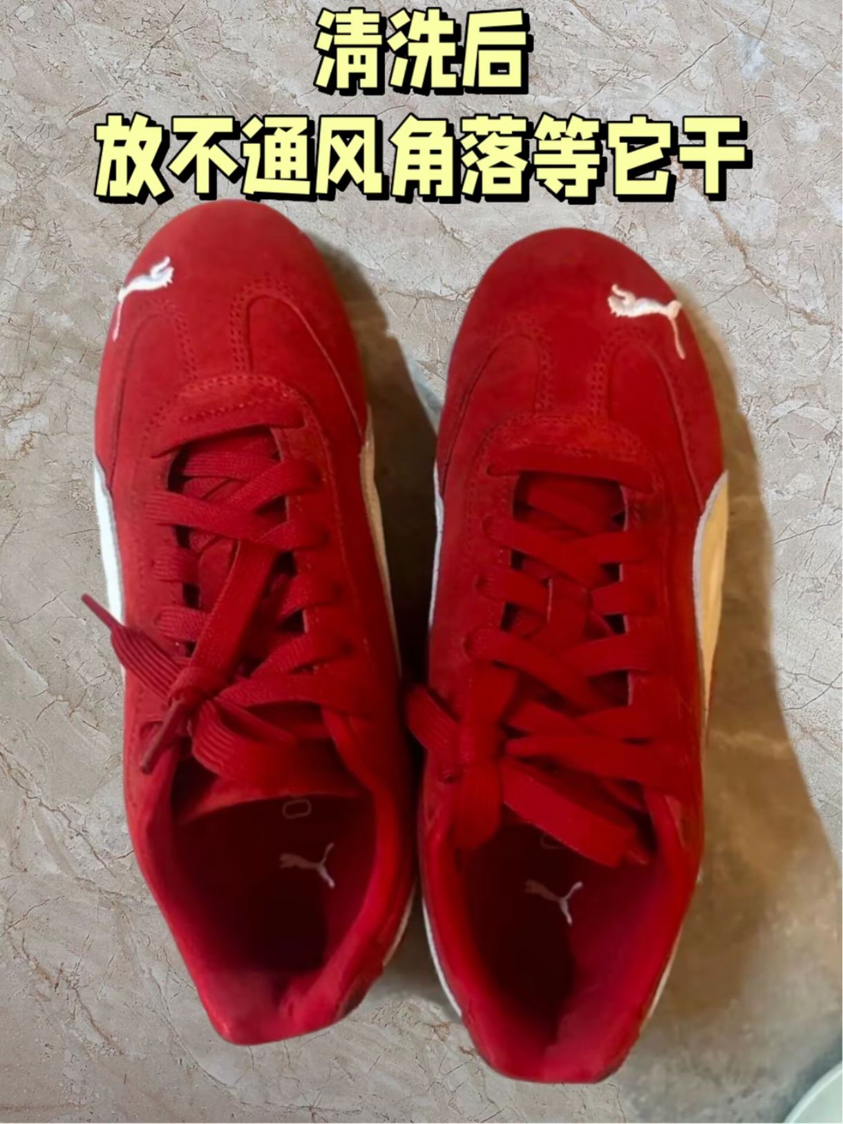真的很喜欢这双红色puma鞋,不过这种鞋面好容易脏,穿了好久脏了,不知道怎么清洗,我上网查了一下这种鞋子麂皮,洗不好很容易坏,甚至让鞋面变硬,找了好几方法总结起来,洗完我挺满意的,今天来分享给大家! 第一步:准备一瓶麂皮清洁剂和刷子(我买的配套的)保持鞋面干燥 第二步:喷上清洁剂,少量多次,用刷子轻轻在鞋面打圈,不要太重,不然会起毛球。 第三步:把刚才刷出来的污渍用干毛巾擦拭干净,放在通风阴凉处...