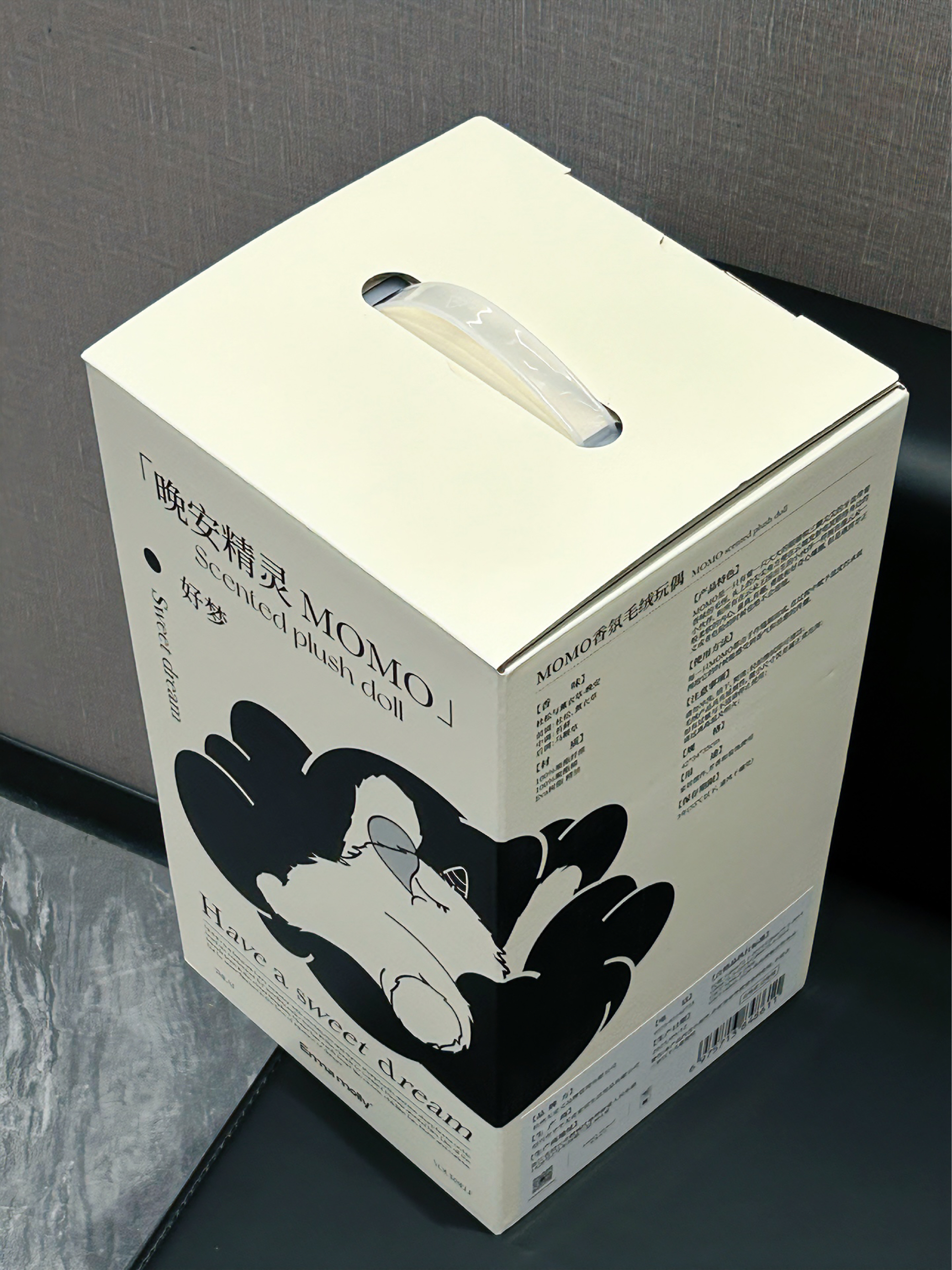 是介个艾玛莫莉的晚安精灵 打开就闻到一阵香味 淡淡的闻着挺治愈 大眼睛👀看着好灵动 毛绒绒的rua起来也好舒服 抱着睡觉好有安全感 放在床头也是又香又治愈呢~ 礼盒包装 送女孩子敲甜蜜的