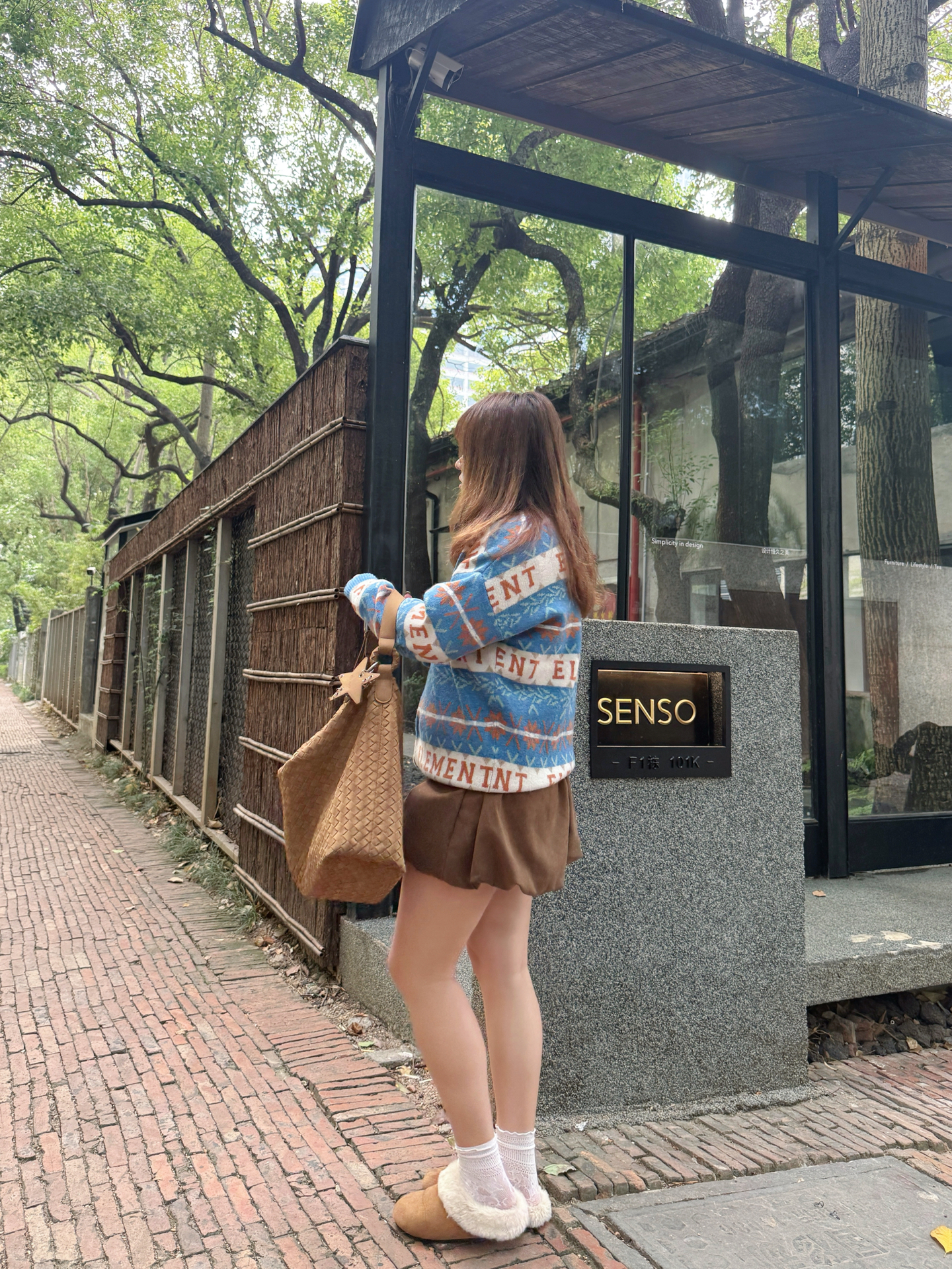 ▪️ 撞色游戏,拿捏秋冬呼吸感 宝蓝条纹开衫自带复古滤镜 像把英伦海岛穿在身上🏝️ 我习惯内搭一件纯白T恤 让领口和袖口不经意露出 打破深色的沉静 呼吸感就来了👌 棕调短裙选皮质面料 阳光一照有细碎光泽 和毛绒雪地靴一软一硬质感碰撞得刚好✨ ▪️ 「不臃肿」的秘诀藏在细节里 短裙提高腰线 中间一截肤色 视觉上全是腿长📏 毛衣的绞花肌理是立体浮雕 厚重但蓬松 站在玻璃幕墙前 光影勾勒出轮廓 身后的...
