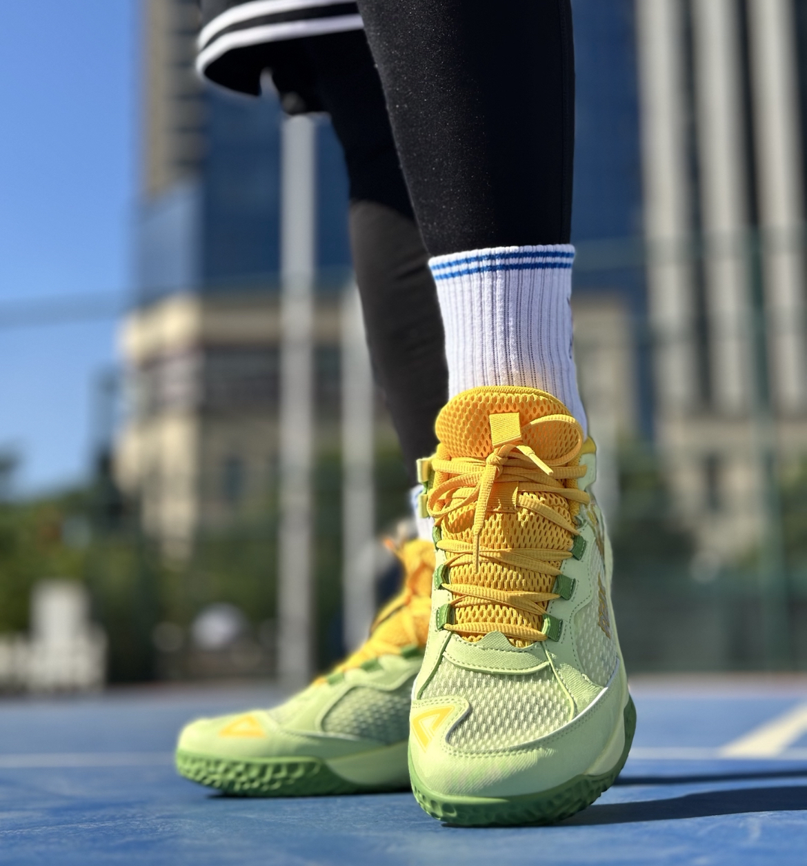 双牛油果🥑的配色非常的清新好看🤩上脚特别吸睛👀。 上脚舒适包裹感也很好,鞋面的强度不错👍也很透气💨匹克态极的中底软弹,缓震也是很出色😎打球🏀起跳落地不震脑。鞋底的防滑性能也不错,变相突破也是稳稳的,而且只要一开很有性价比,尺码建议不偏码,按正码选择❗️