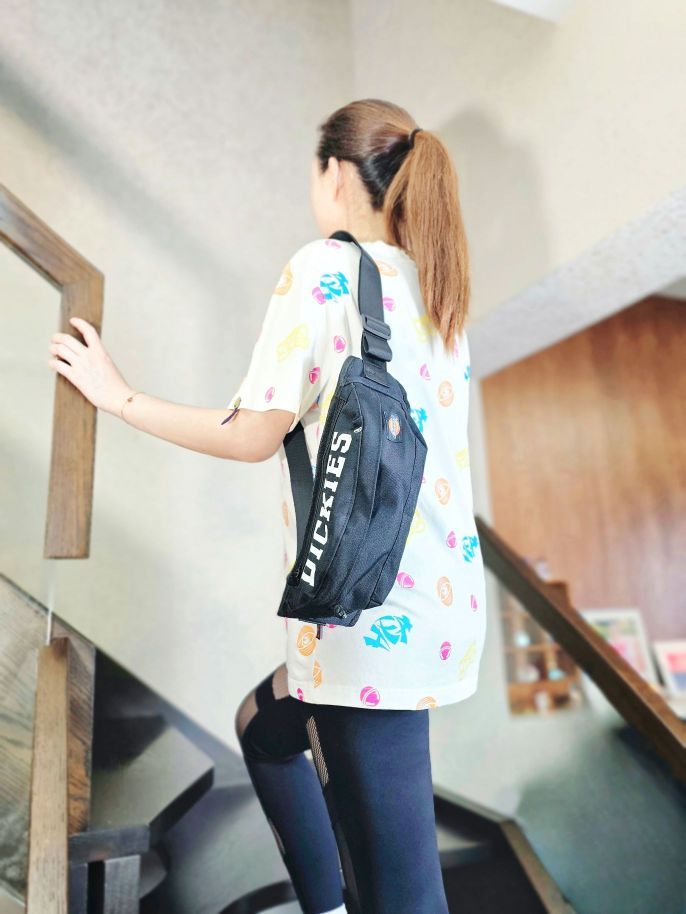 这只Dickies胸包有点小酷酷哎!美式工装风蛮潮的,也很好搭配!别看轻轻巧巧一只,容量还狠能装,完全不输一只托特包,小平板,折叠伞水杯啥的日常出门用品都可以放得下。隔层也挺多小东西也比较好单独收纳,多种背法可以随意切换。早八通勤、游玩逛街、运动骑行啥的都蛮不错哎!