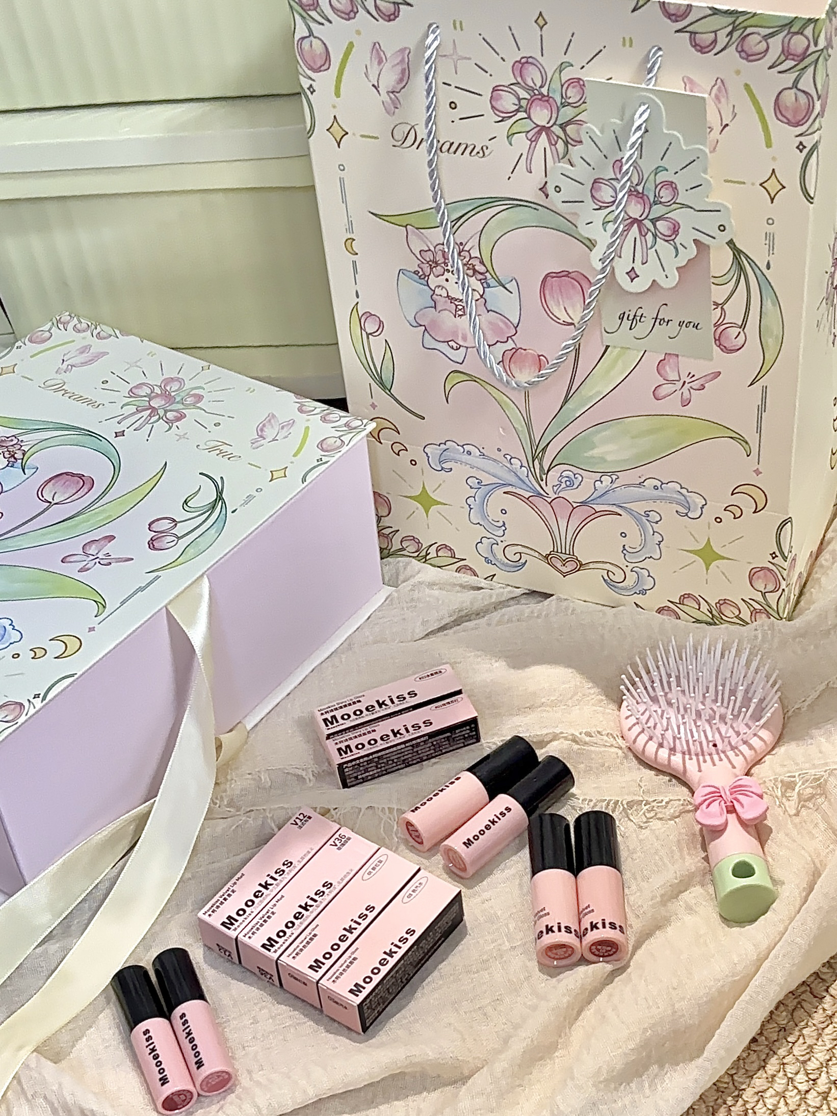 敲击开心拿到了介套郁金香小兔子彩妆礼盒 一直都很爱他家的唇釉 颜色漂亮质地又细腻不干巴 这套居然有6支不同色号的 每一支都好好看 眼影+修容+腮红+眉笔都给配齐啦 还赠了气垫梳和剪眉刀和可爱的钥匙扣 尊嘟要被这套给征服了~ 介绍送这套真的是要被夸的程度!