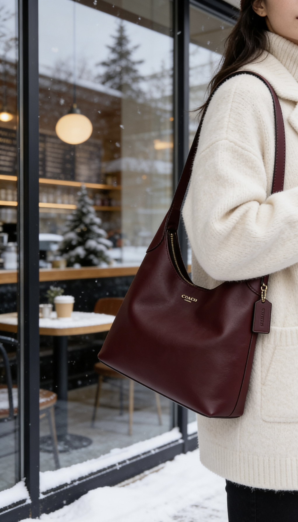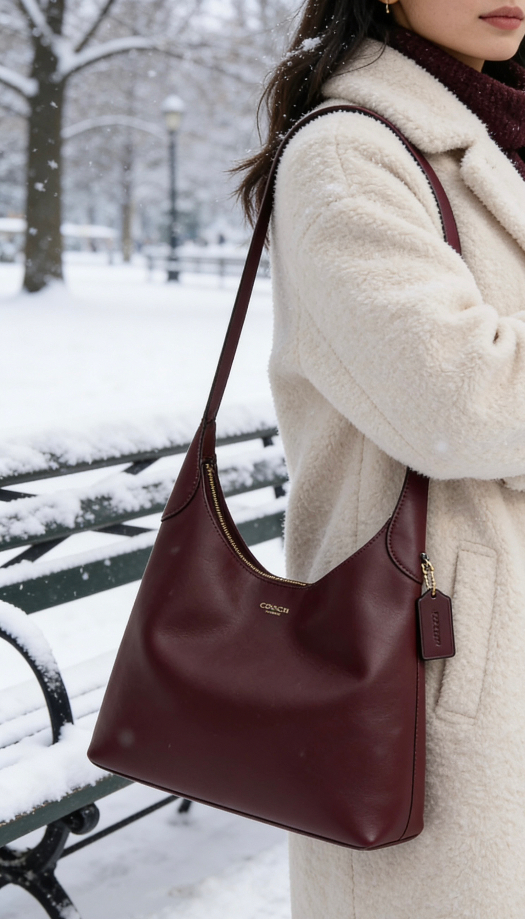 COACH Brooklyn 34酒红色太绝了!牛皮质感高级又耐造,金色字母烫印超吸睛,大号容量超能装,单肩背气场全开。姐妹们心动了吗?评论区分享你的复古穿搭,记得点赞收藏~