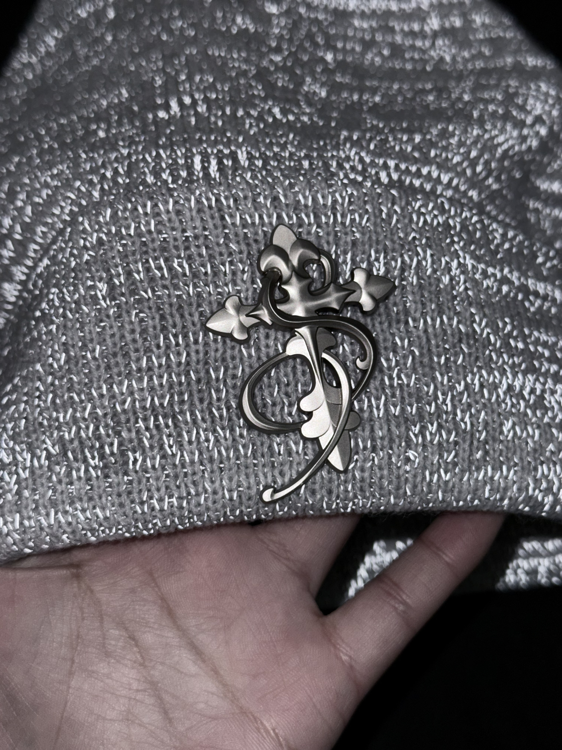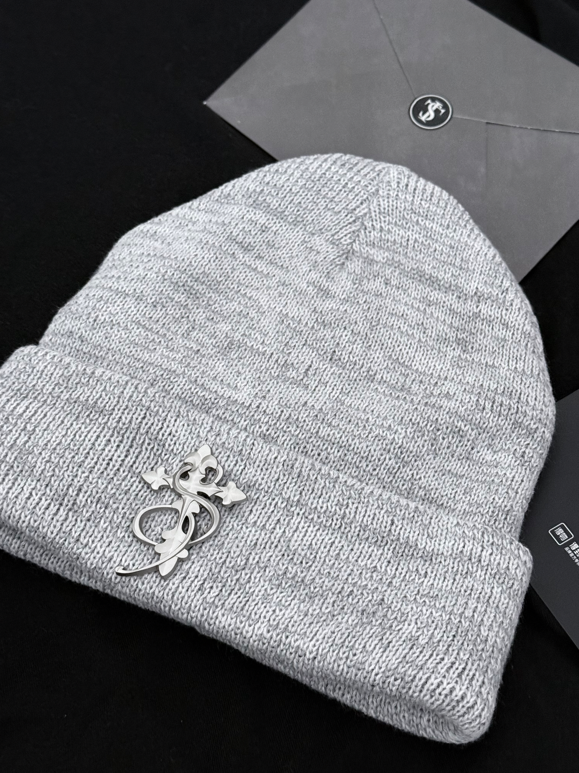 STK SMALL TOWN KID 满天星冷帽 灰色针织材质,柔软厚实,秋冬保暖力满分 正面金属徽章超有美式复古街头感 卷边设计显脸小,圆脸方脸都友好 适合头围55-58cm 晚上戴上它走在街上回头率超高 日常通勤、户外、休闲都能轻松搭配 实用又时髦,是秋冬百搭神器!