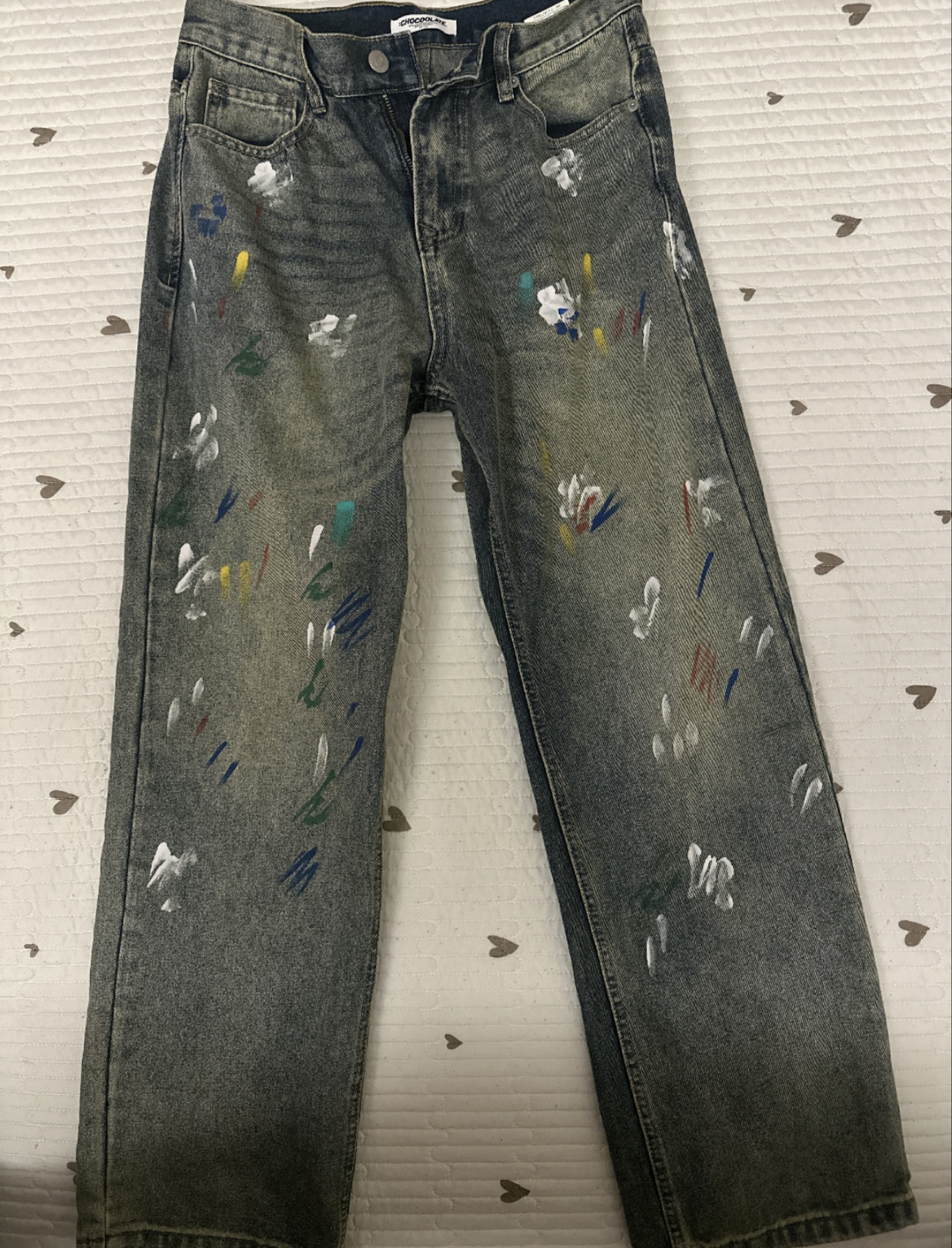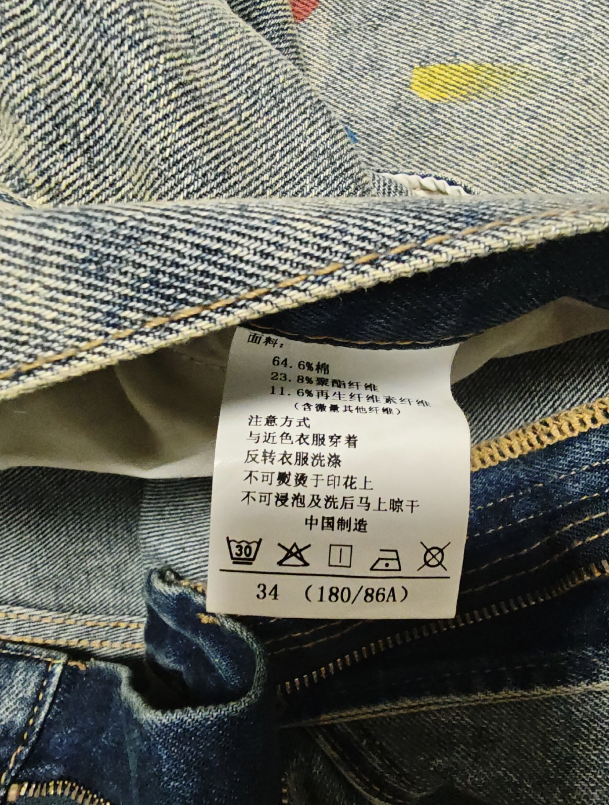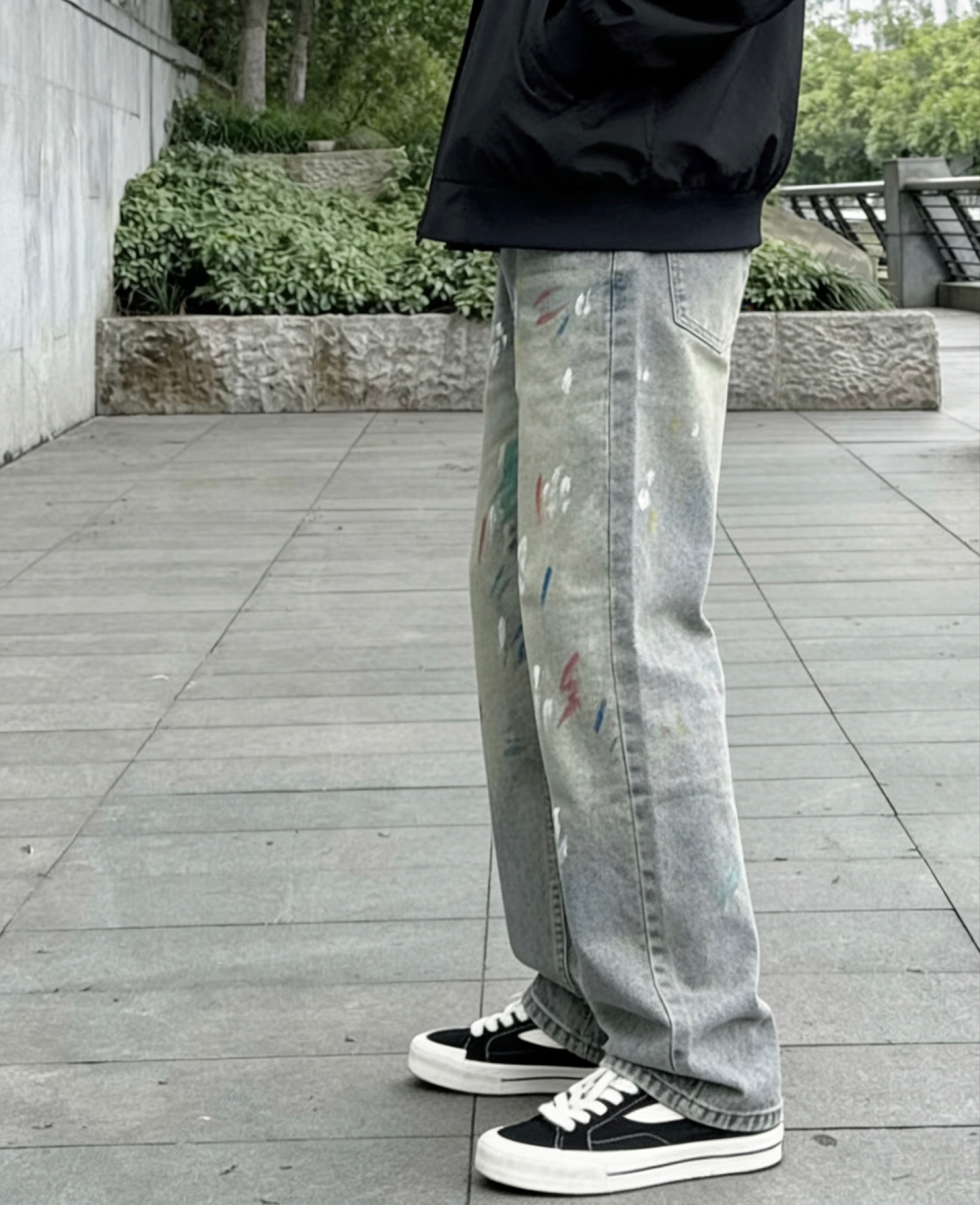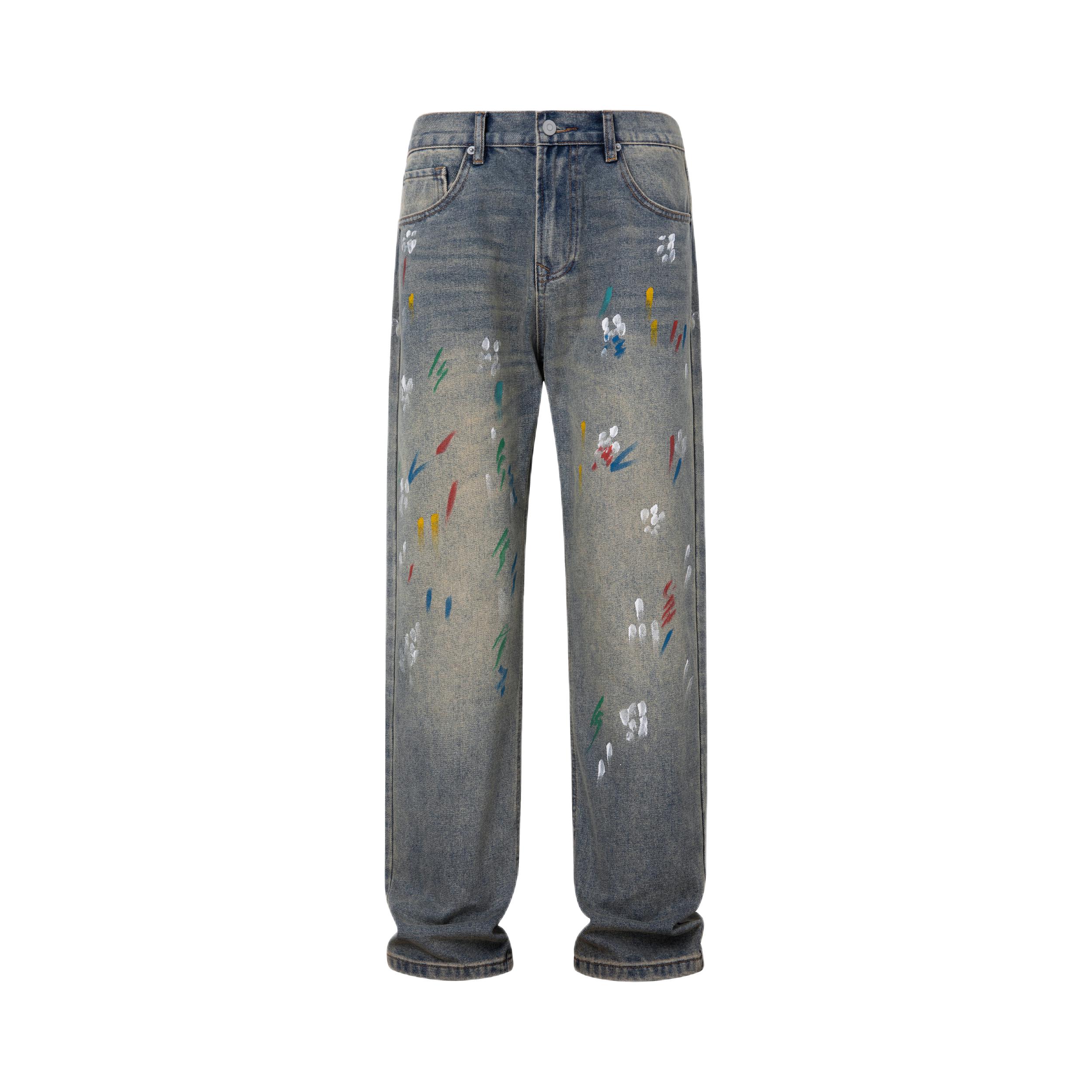 冲着涂鸦设计入手的这条牛仔裤,到手真的没失望!做旧牛仔底色配上彩色漆点,复古又潮酷,日常搭白T恤、黑色卫衣都巨出片。版型是不挑身材的直筒款,腰围和裤长都很合身,不会拖沓也不会紧绷。面料耐穿不易皱,洗后没有起球掉色的情况,涂鸦的胶印也很牢固,出门穿回头率超高,已经推荐给身边的潮搭朋友了!