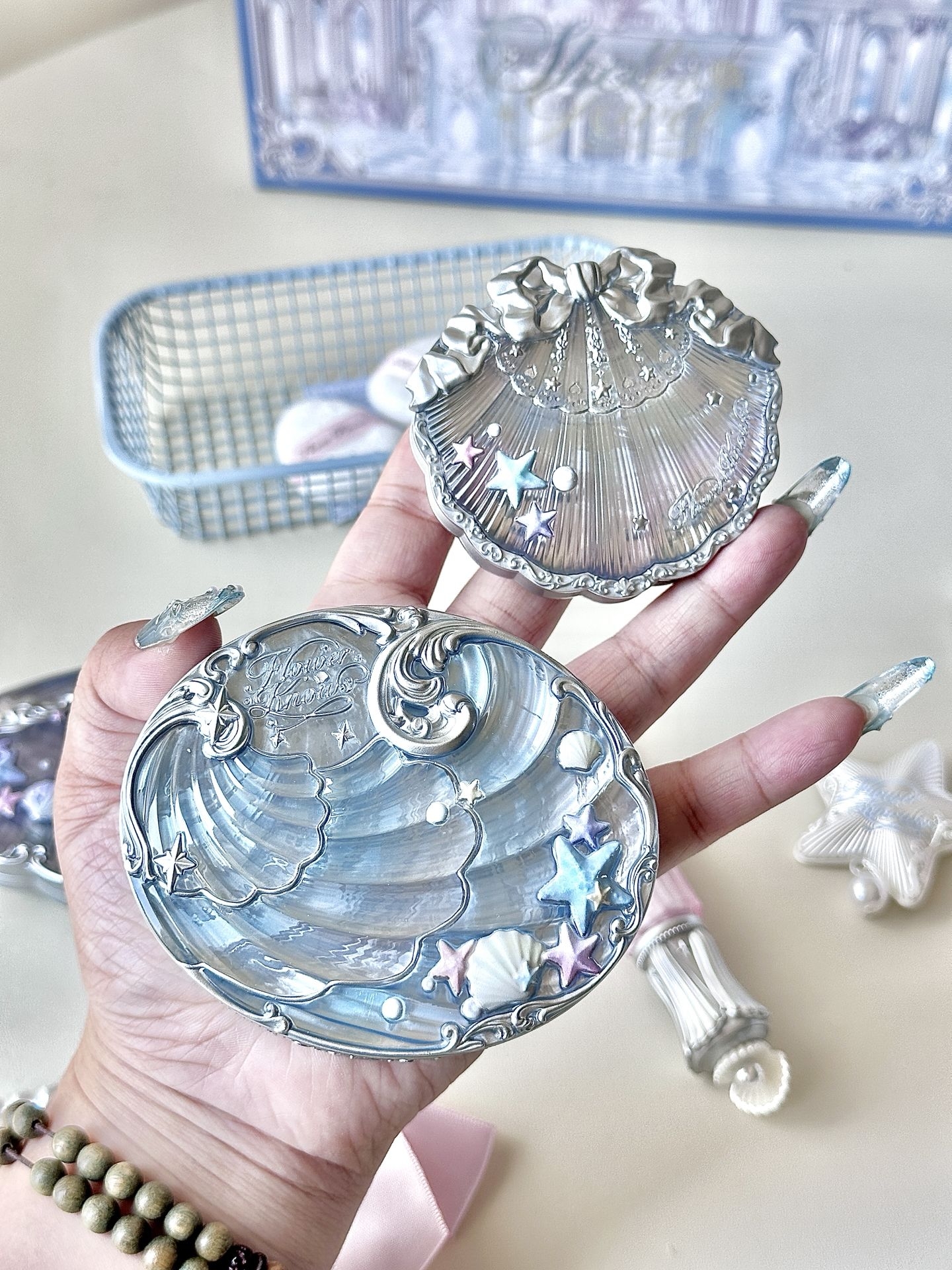 #520送礼新灵感 #用520打开夏天 #小预算送礼指南 #美妆种草 #花知晓贝壳珍珠系列 花知晓新出的贝壳系列真的好好看呀 打开盒子就是满满的惊喜感 从包装礼盒就开始很精致🦋 我需要的,都在这一盒里了 六色眼影,唇部精华蜜,妆前乳 高光,腮红,手持镜子🪞… 还赠了可爱的小粉扑 海星发夹🦋和高光挂件蝴蝶结 我拿到手上都觉得很惊喜💗 贝壳设计好漂亮,色号也很百搭 我用的时候,感觉自己像仙女🧚♀ 满...