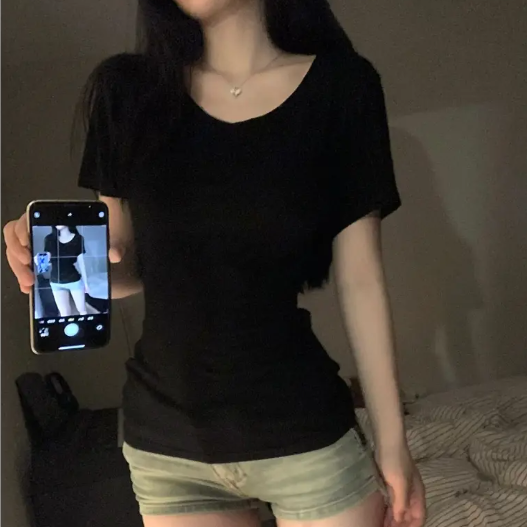 承包我整个夏天的基础款短袖 越是简单的款式越是考验剪裁 正肩收腰版型基础款短袖 无痛拥有小蛮腰 上身有种随意又辣妹的感觉 面料柔软亲肤 而且弹力很大完全不挑身材哦