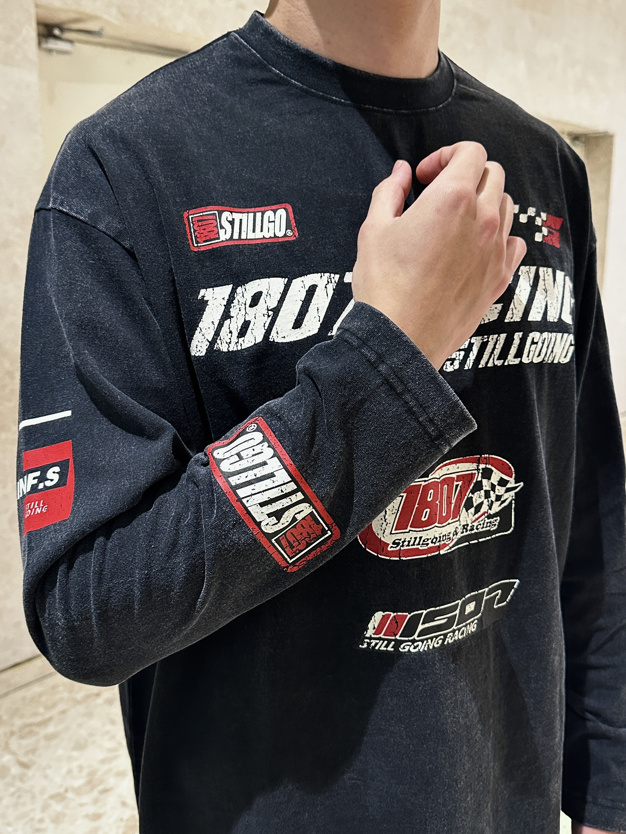 还在一身黑的搭配吗,推荐你尝试一下美式复古风~ 最近入手了1807这件长袖T恤,秋冬内搭想穿点不一样的,所以选择了这件美式风格的印花T,版型是比较宽松的(182cm,75kg上身XL码),纯棉➕做旧美式风格,穿起来的质感也很舒服!