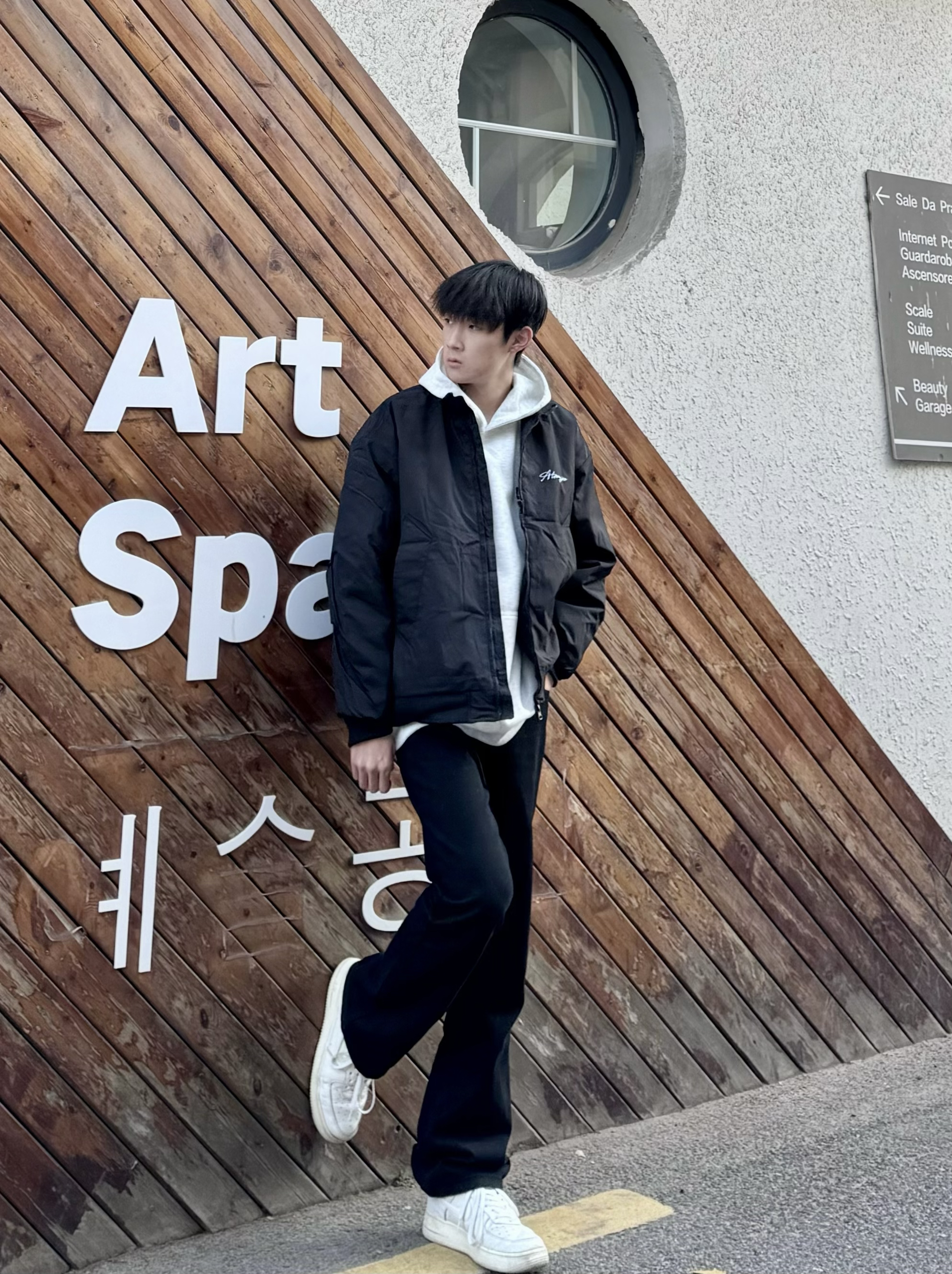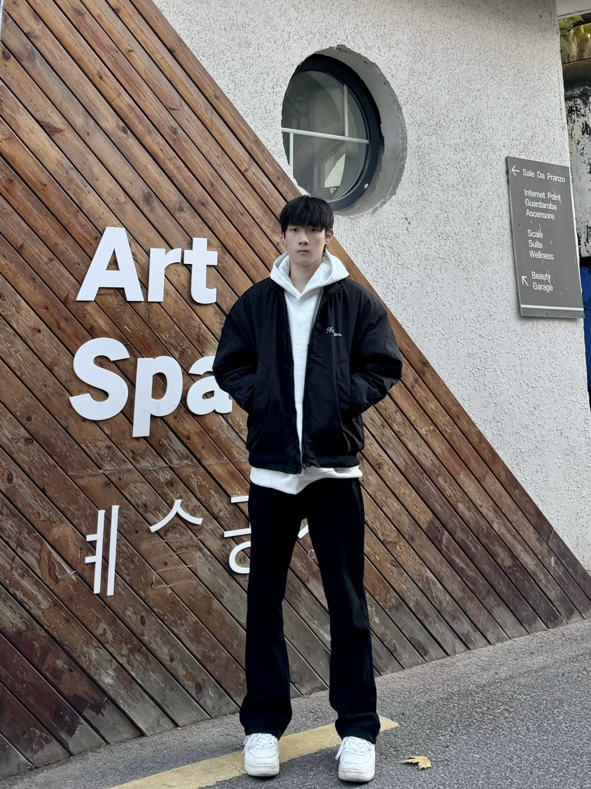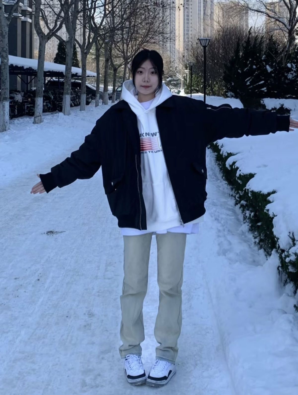 夹克配卫衣 万年不变的穿搭定律 我们真应该都要大胆尝试一下 找到自己的穿搭风格就会像“开挂”一样 虽然都管他加npc穿搭 但他这套搭法真的挺不错的 不要在意别人的眼光 自己觉得好就可以了 整体穿着不束缚 层次感一下就跳出来了