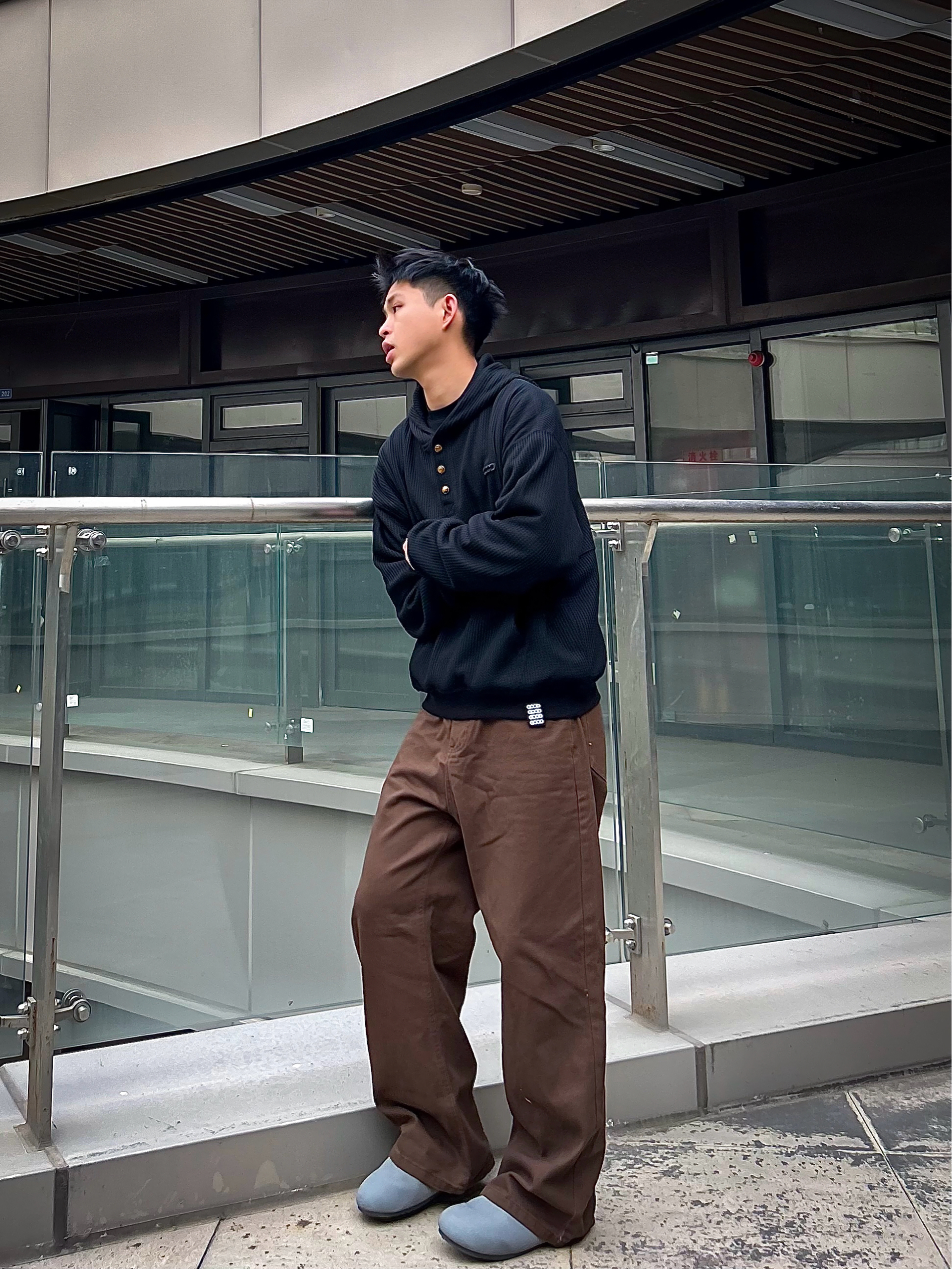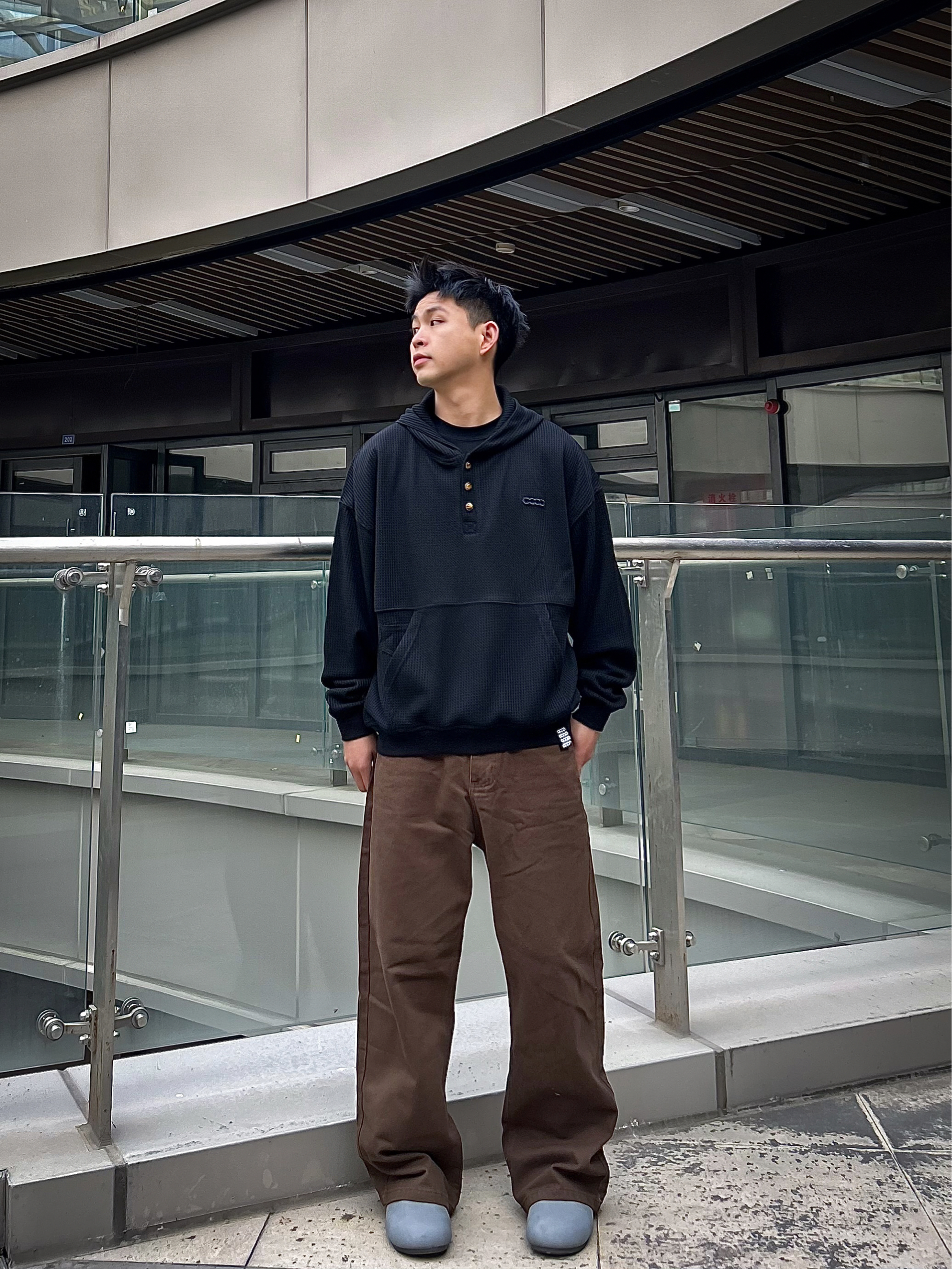 哈咯,这里是爱打球爱穿搭的卢_SG 年度穿搭秋冬刚需的“质感型”连帽卫衣,这一件直接焊在身上! 上身这件 GOOD 黑华夫格连帽卫衣,实用度真的戳中日常党: • 华夫格面料是肉眼可见的细腻,摸起来软但不塌,高克重刚好扛住早晚温差,单穿暖、叠穿不臃肿 • 半开襟纽扣+小标设计,没有花里胡哨的装饰,低调里透着轻奢感,打球前套上或者通勤穿都不违和 • 兜帽是偏宽松的版型,不会勒脖子,平时戴帽...