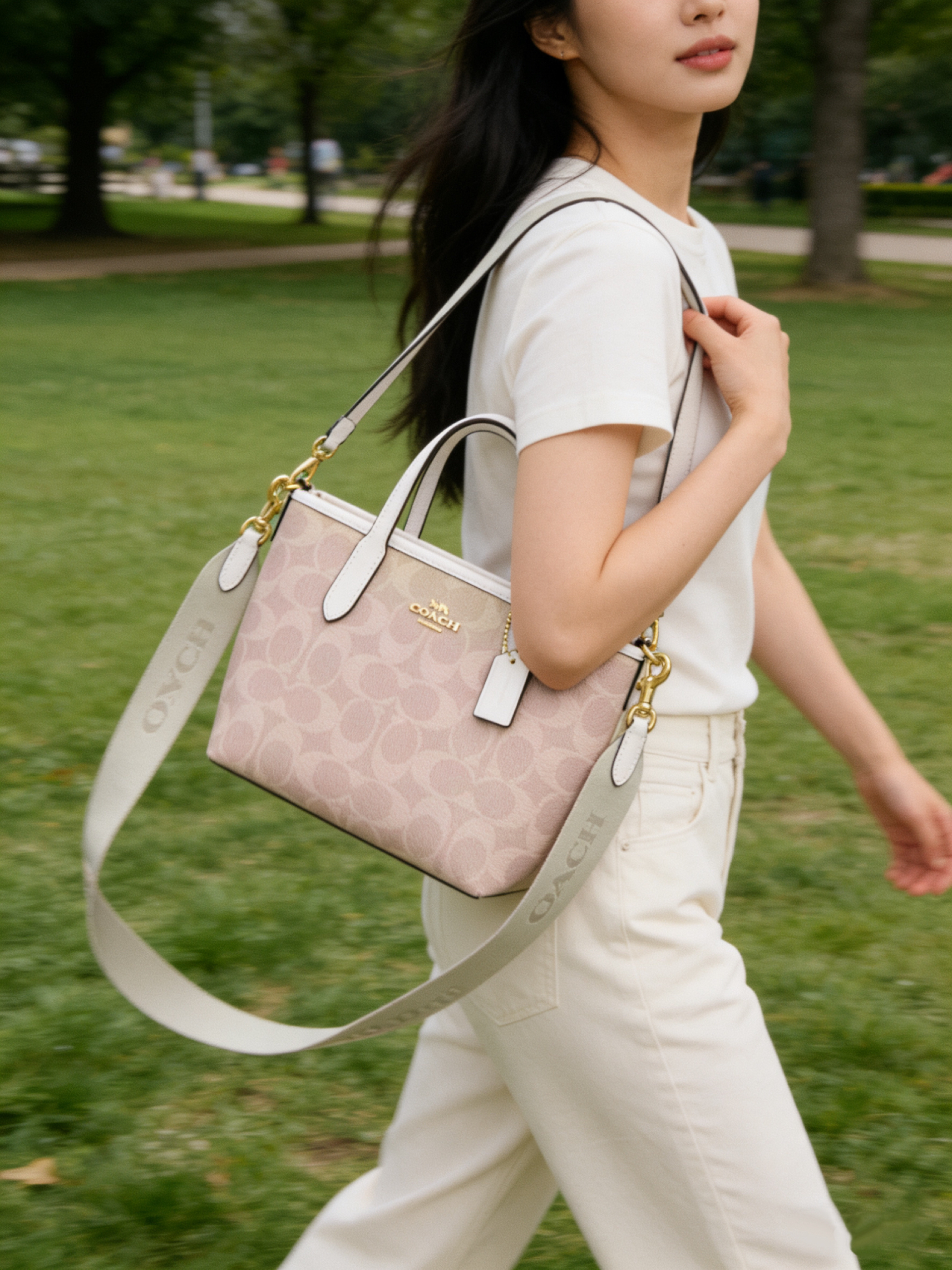本篇笔记关联了Coach City 迷你 马车图案印花品牌徽标可拆卸肩带涂层帆布人造革购物袋单肩包托特包斜挎包手提包 粉笔色等商品,为用户提供真实的使用体验和购买参考。