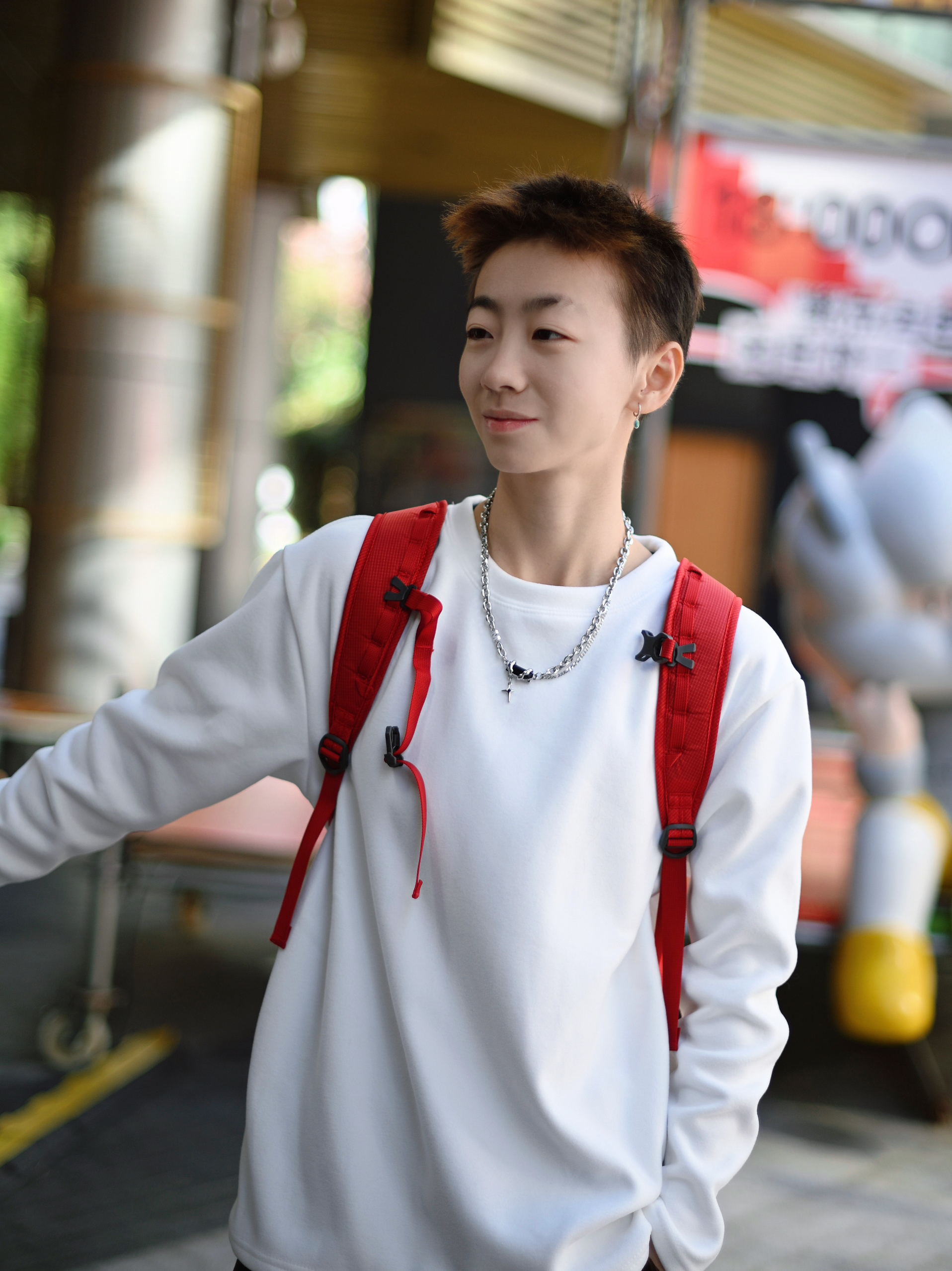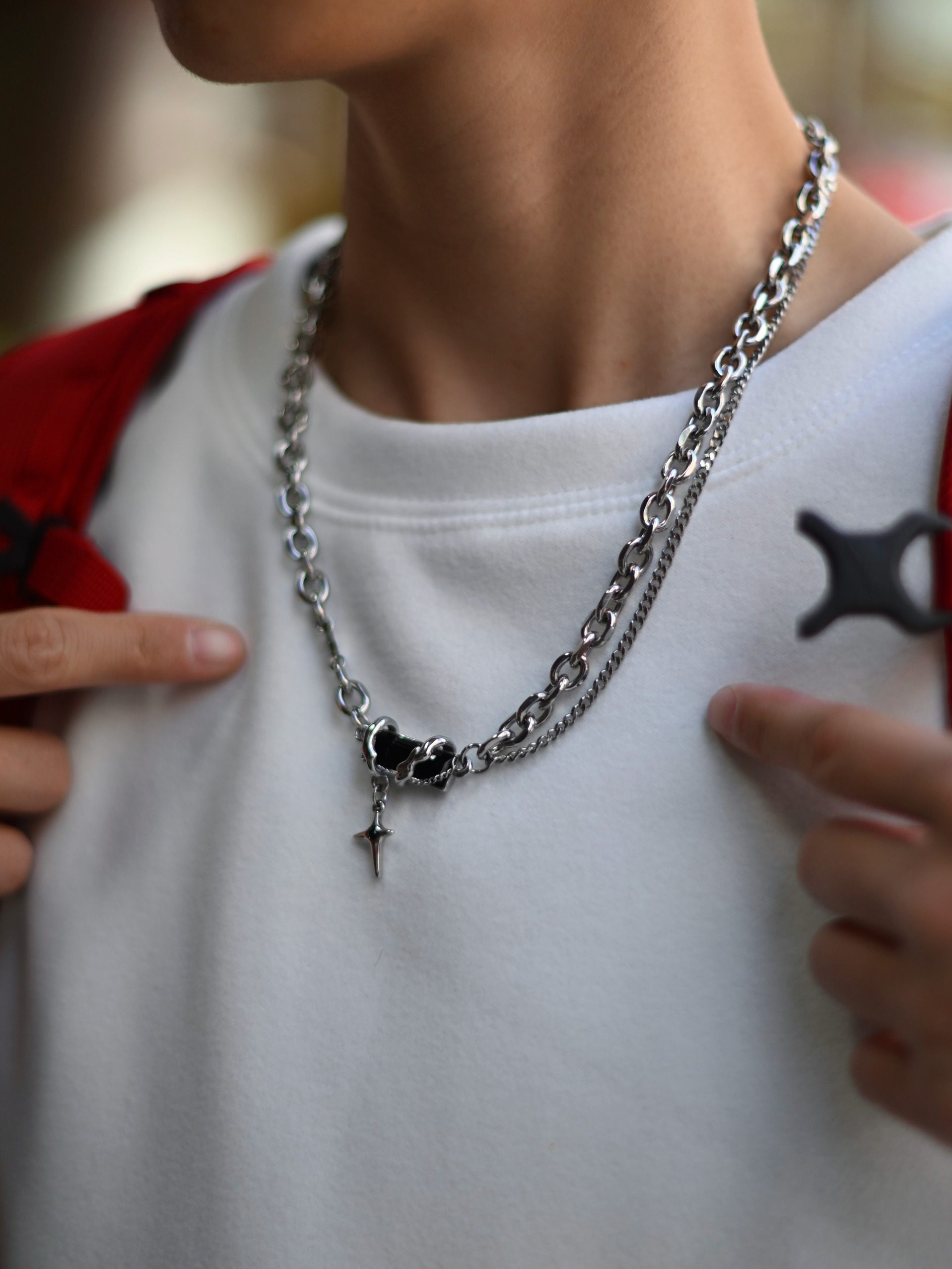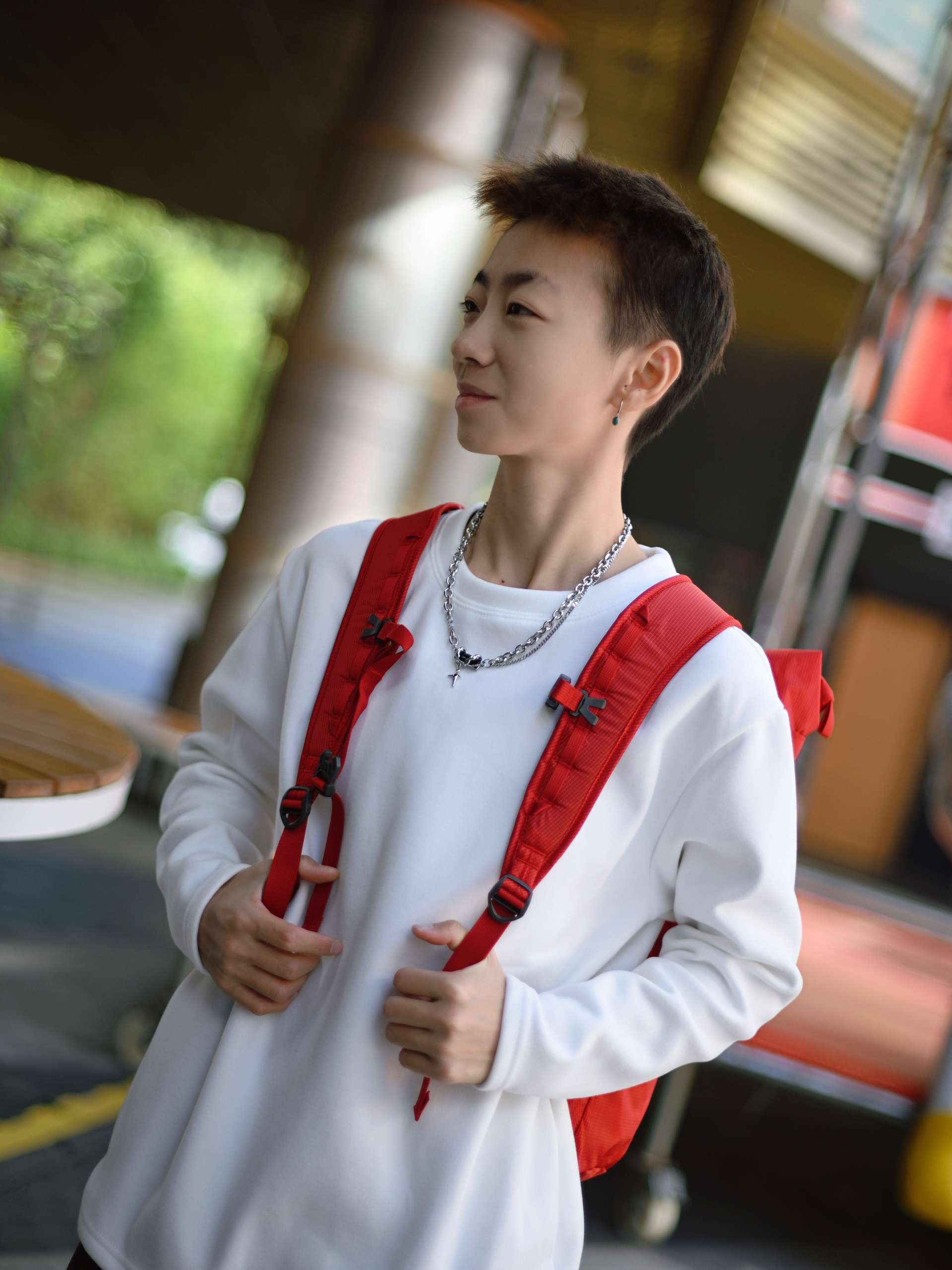172CM|55KG 👔:m👖:m|👟:39码 今日份出门也要戴配饰哇 上身白色系长袖 叠带项链 氛围感拉满 下班搭配牛仔裤👖 背上俺的背包 出街咯~
