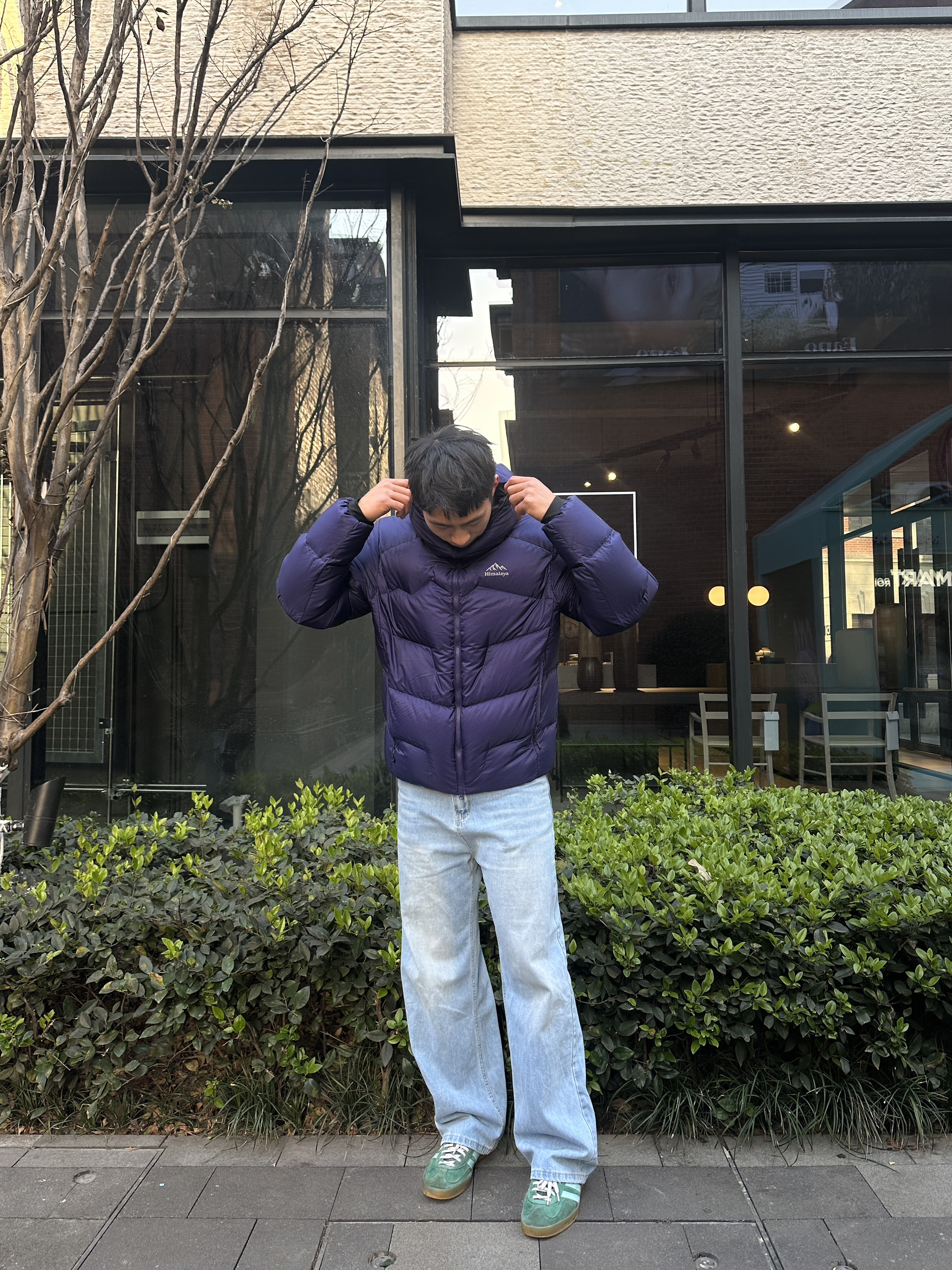 今日份冬日穿搭 简约好看的搭配 上身搭配了喜马拉雅羽绒服 下身直筒牛仔裤配德训鞋好看百搭的同时也兼顾通勤性 这个穿搭轻松融入周末🆒 你们觉得这件羽绒服怎么样!